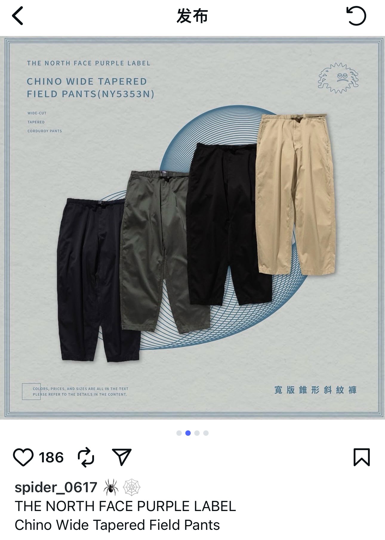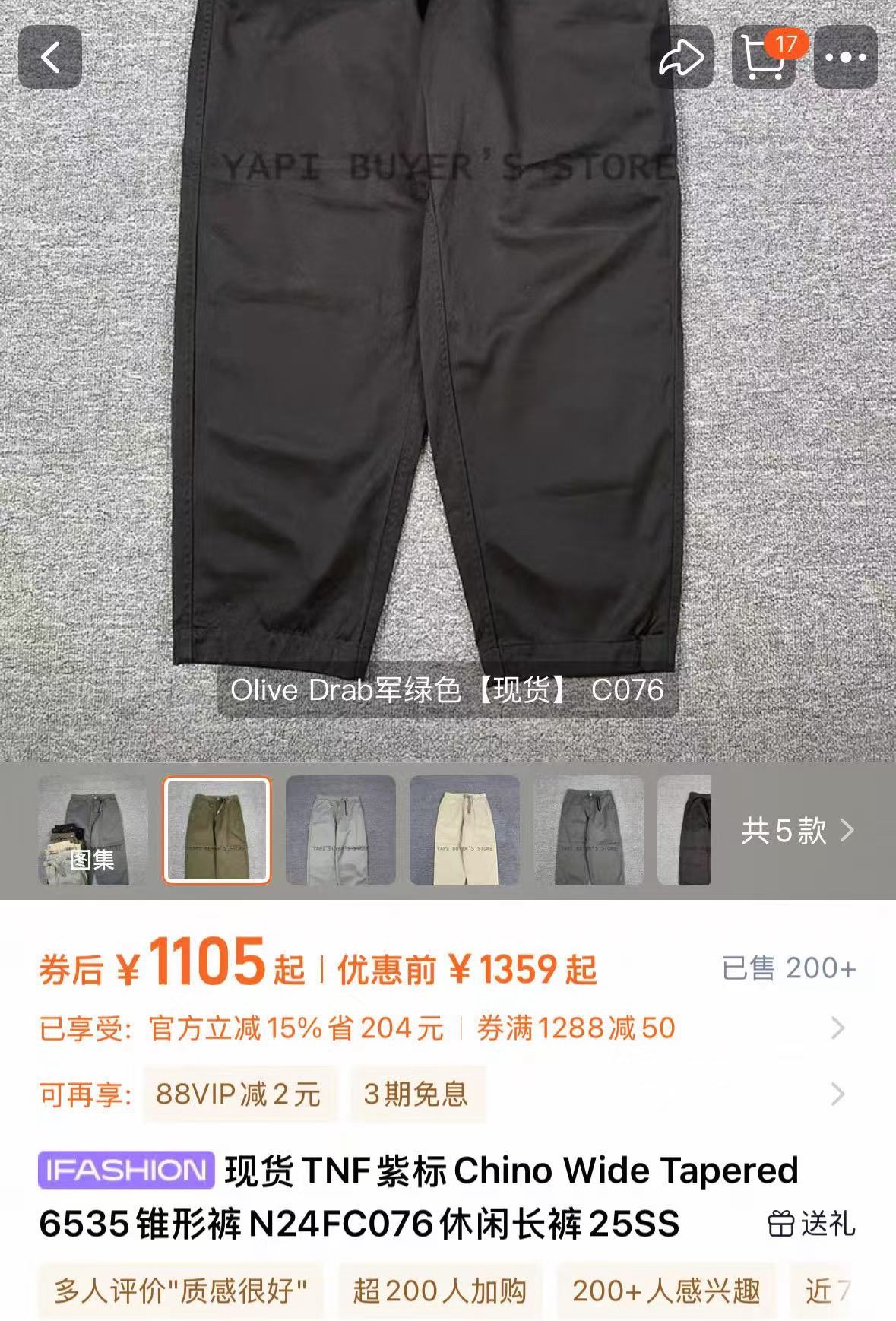 纯元!IFASHION现货TNF紫标Chino Wide Tapered