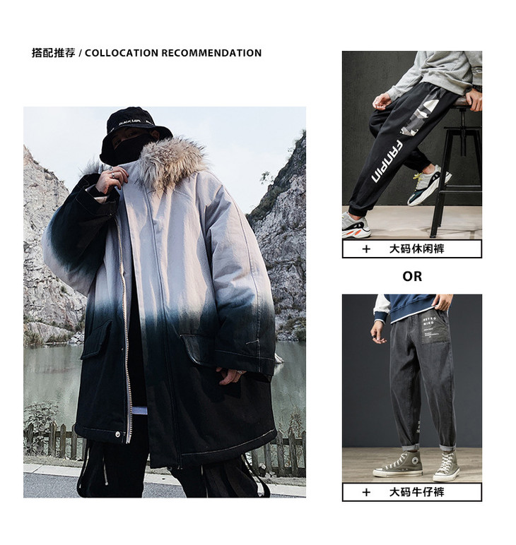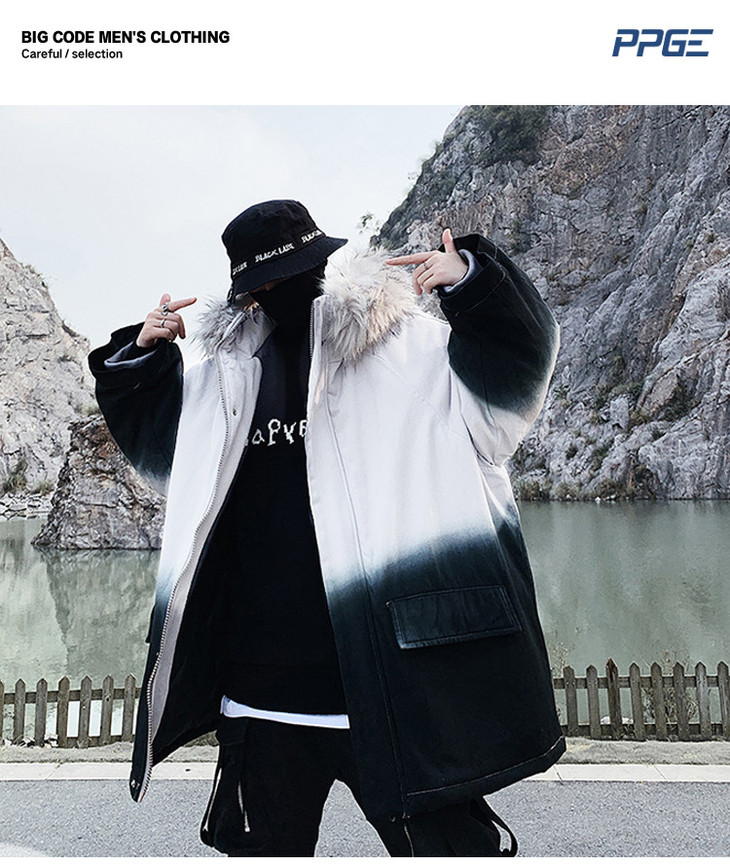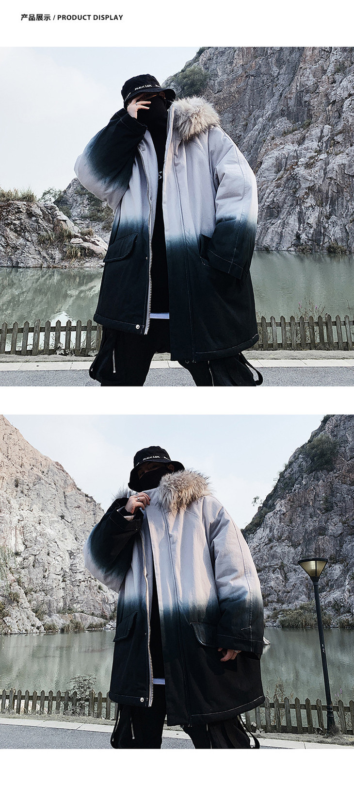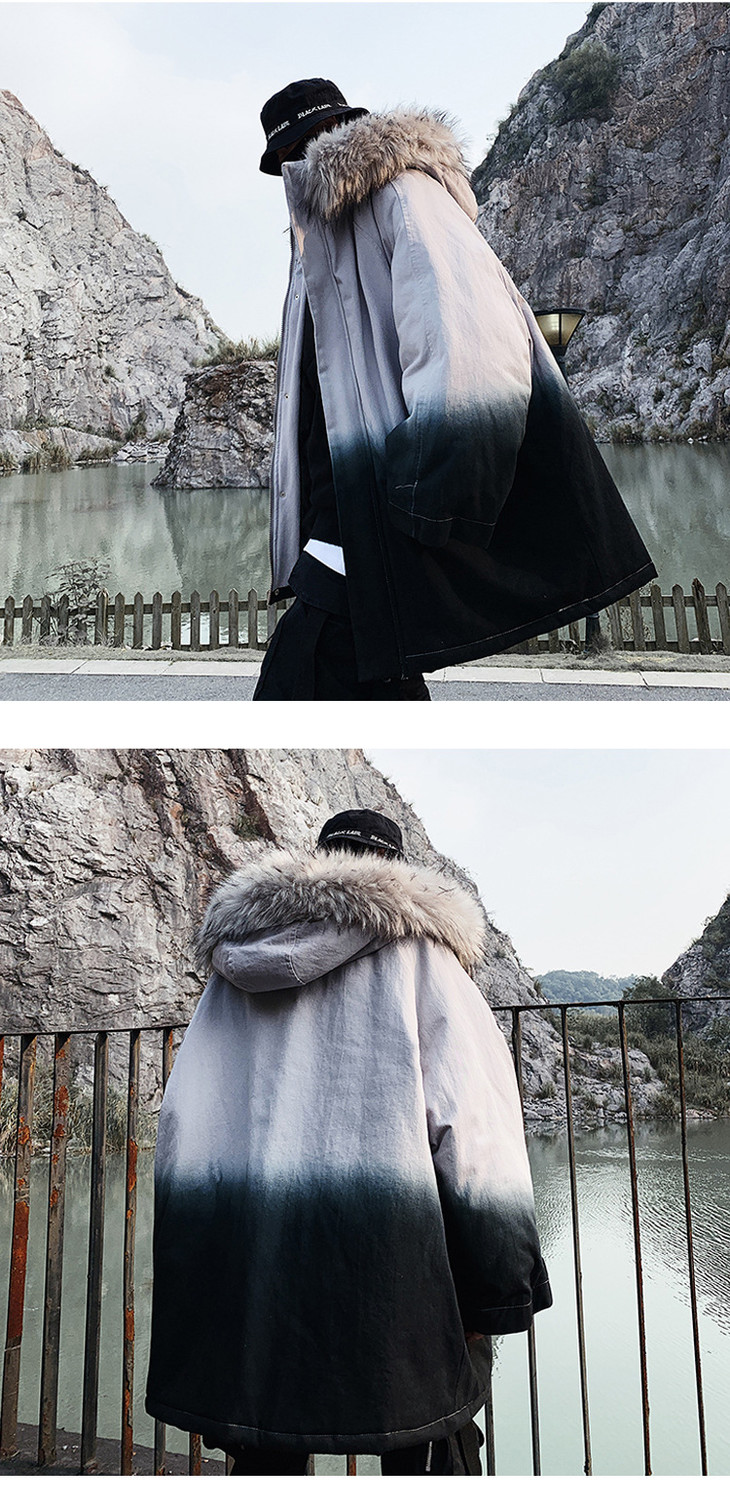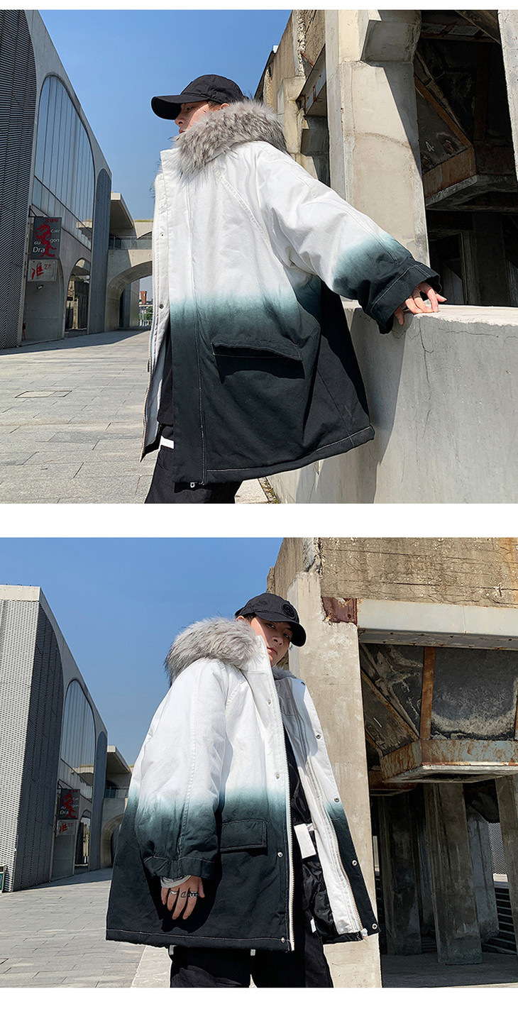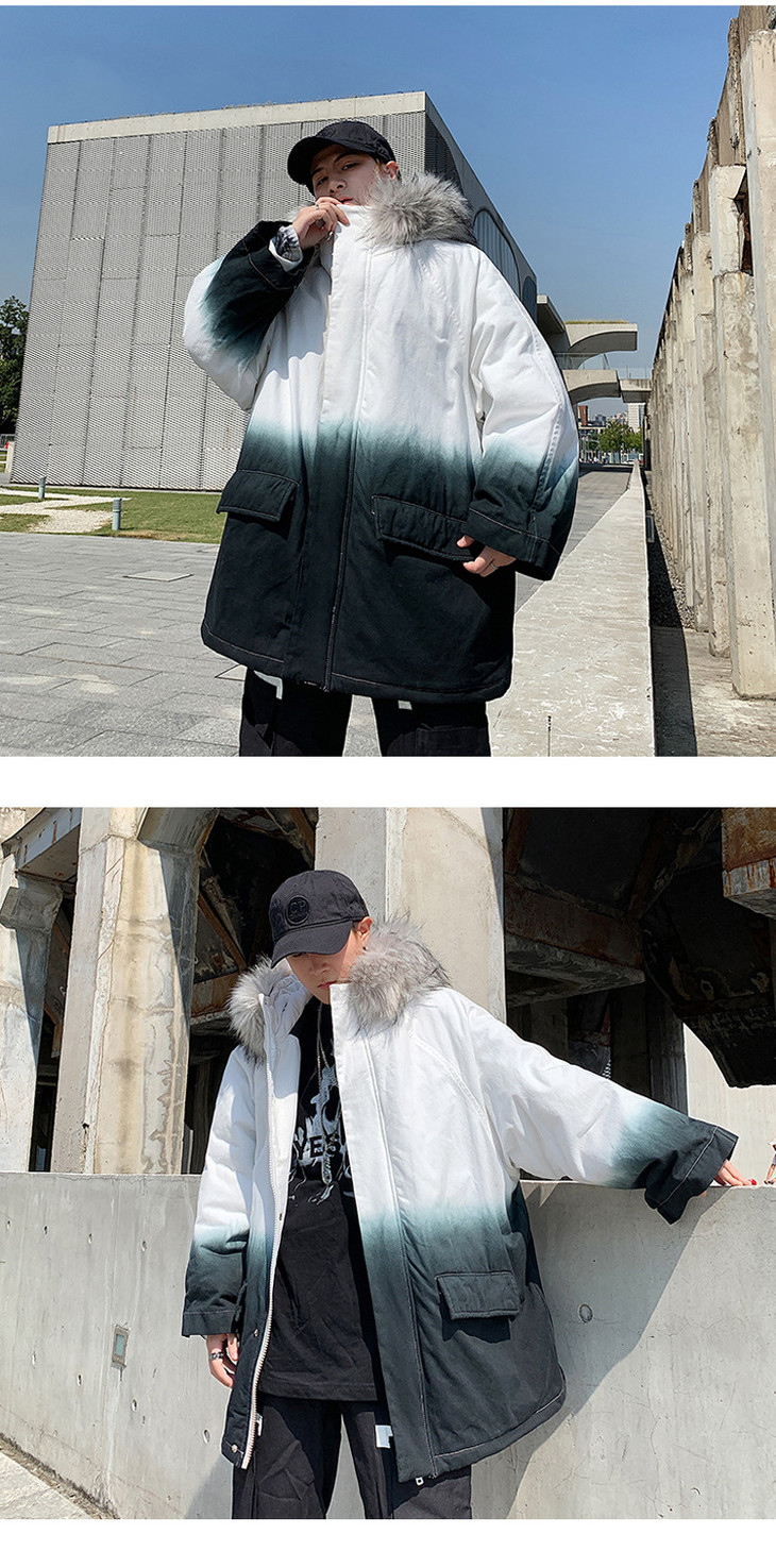 【男装】*国潮大毛领连帽棉衣男士韩版渐变色加厚棉服潮流外套
