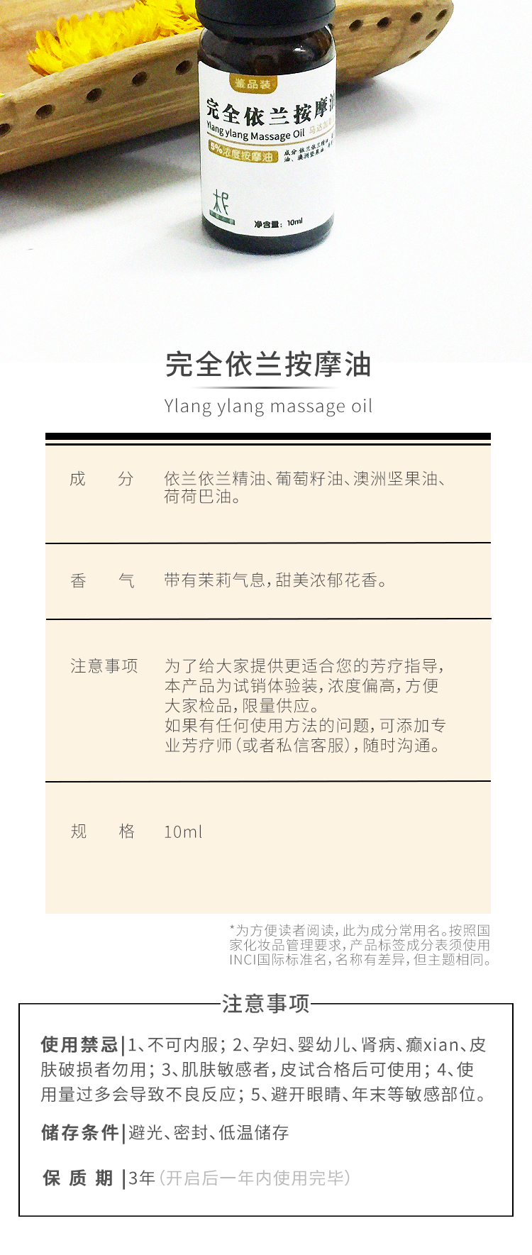完全依兰5%浓度按摩油 鉴定品质 体验装 偏高浓度