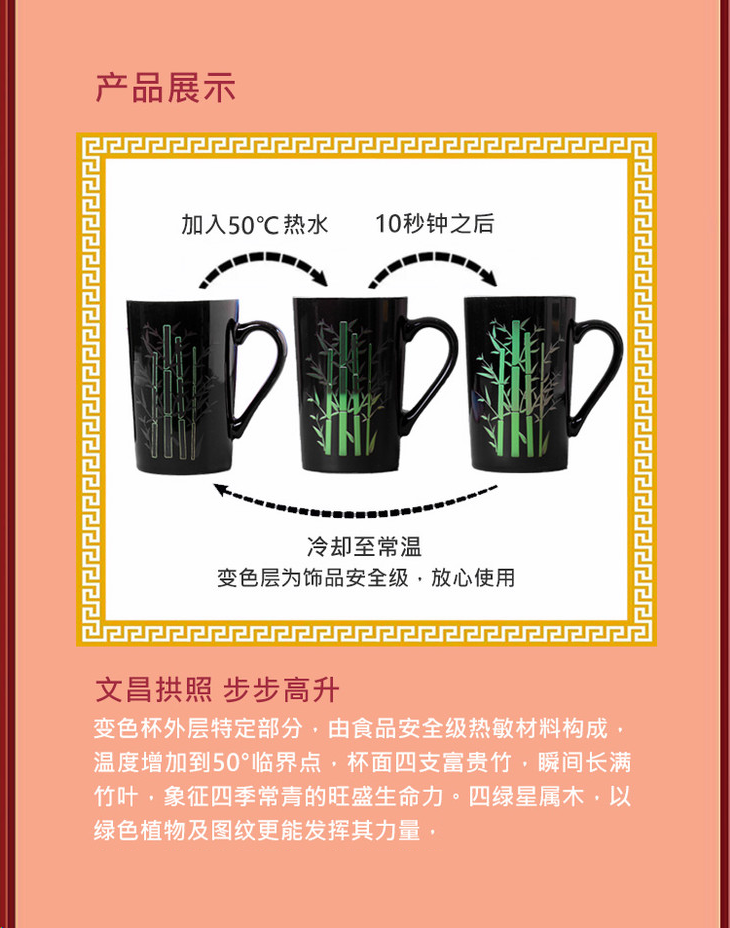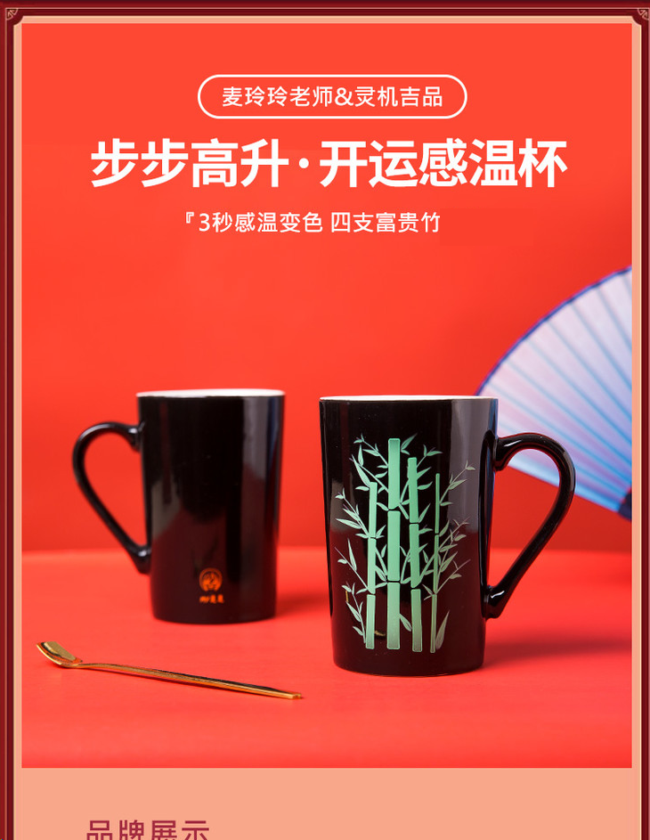 【麦玲玲设计】灵机吉品麦玲玲步步高升富贵竹感温变色杯