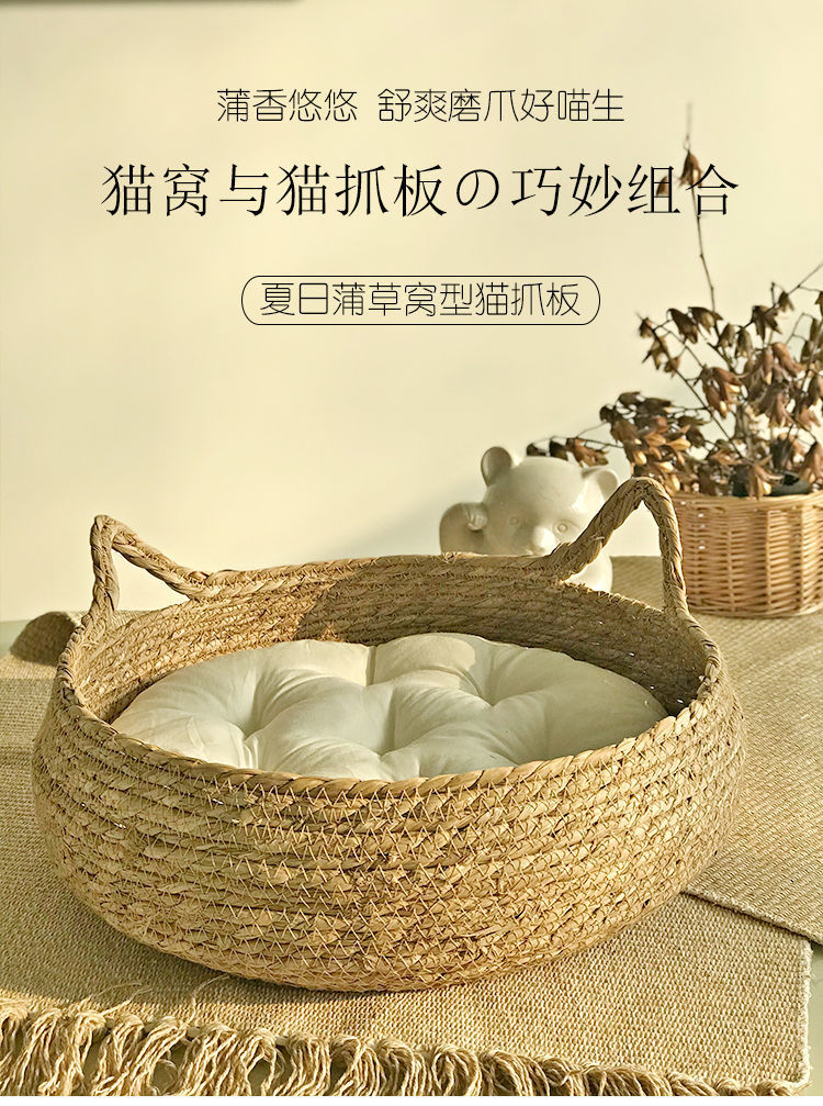 【四季保暖!猫咪至爱】藤编猫窝蒲草窝网红冬季保暖,猫咪床猫抓板狗窝猫宠物,天然植物材质、易恢复、健康舒适、可搭配多种垫