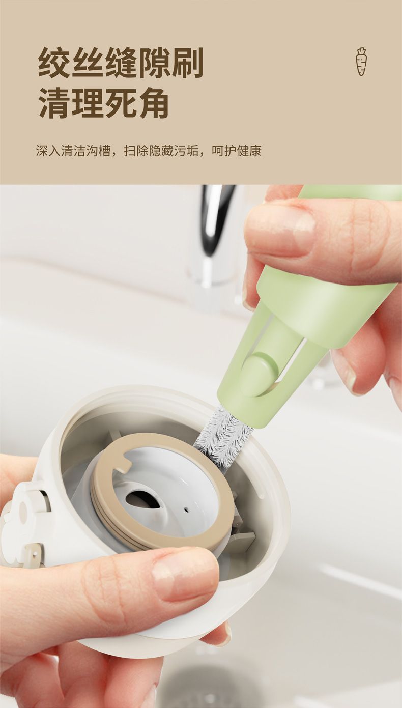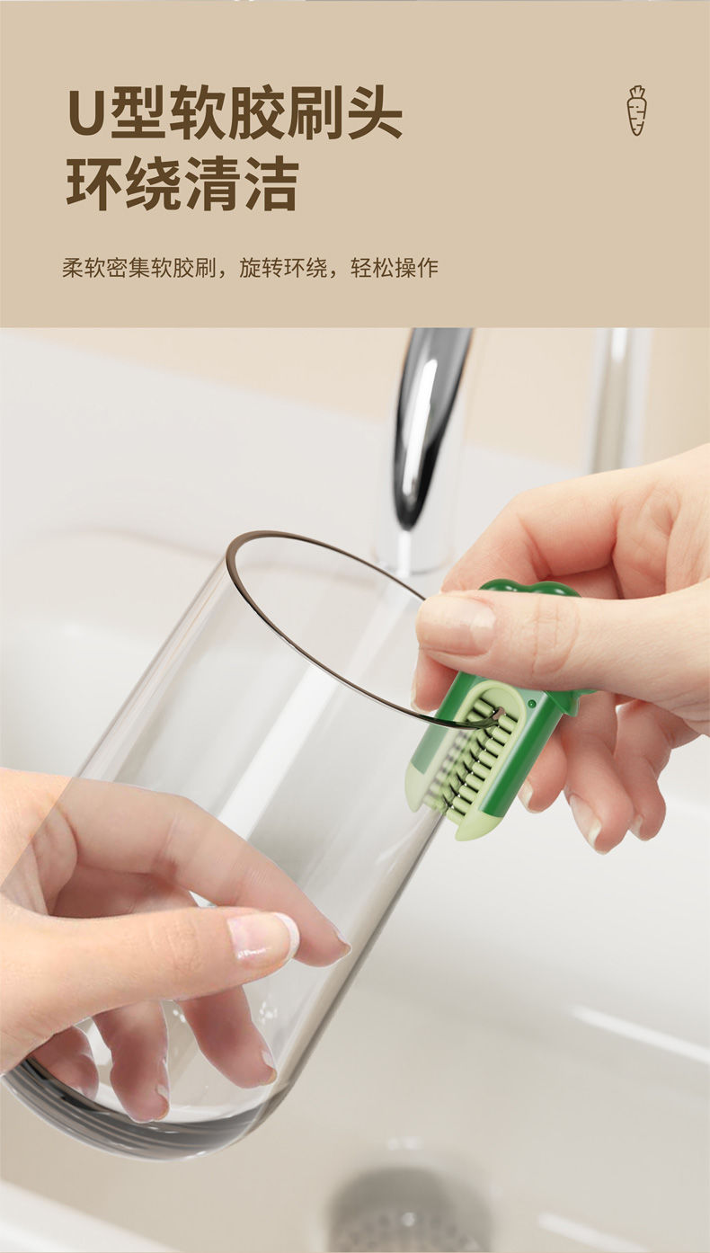 多功能长柄胡萝卜洗杯刷三合一保温杯奶瓶奶嘴清洁刷瓶口刷杯盖刷