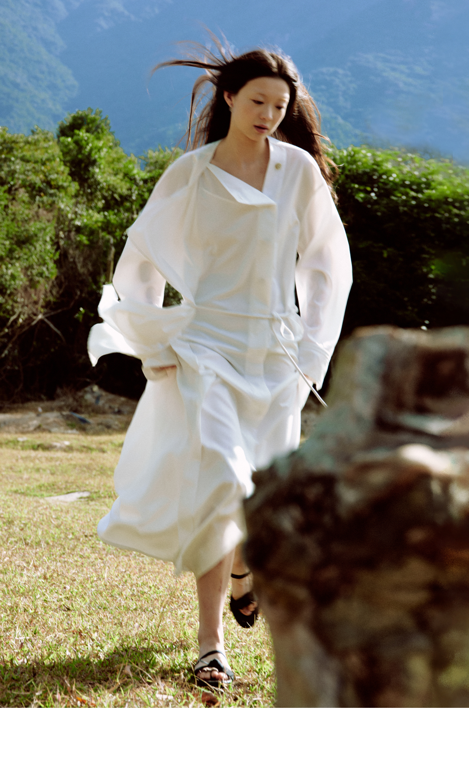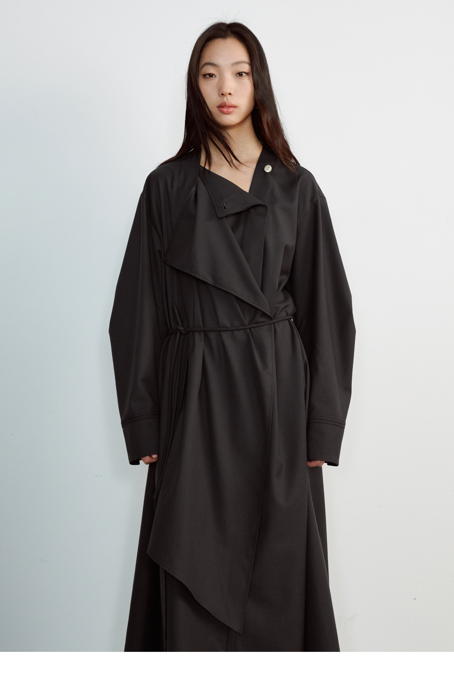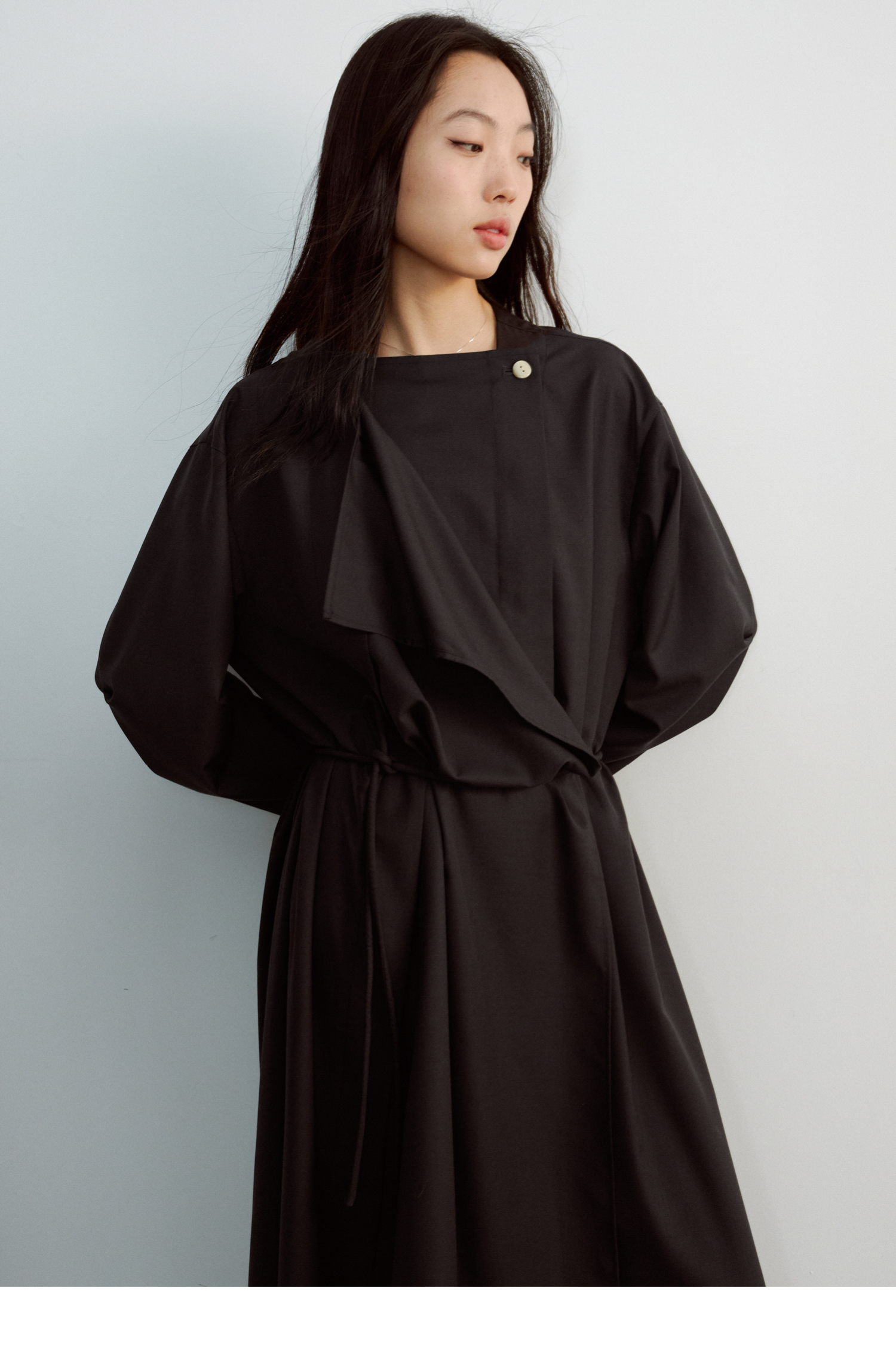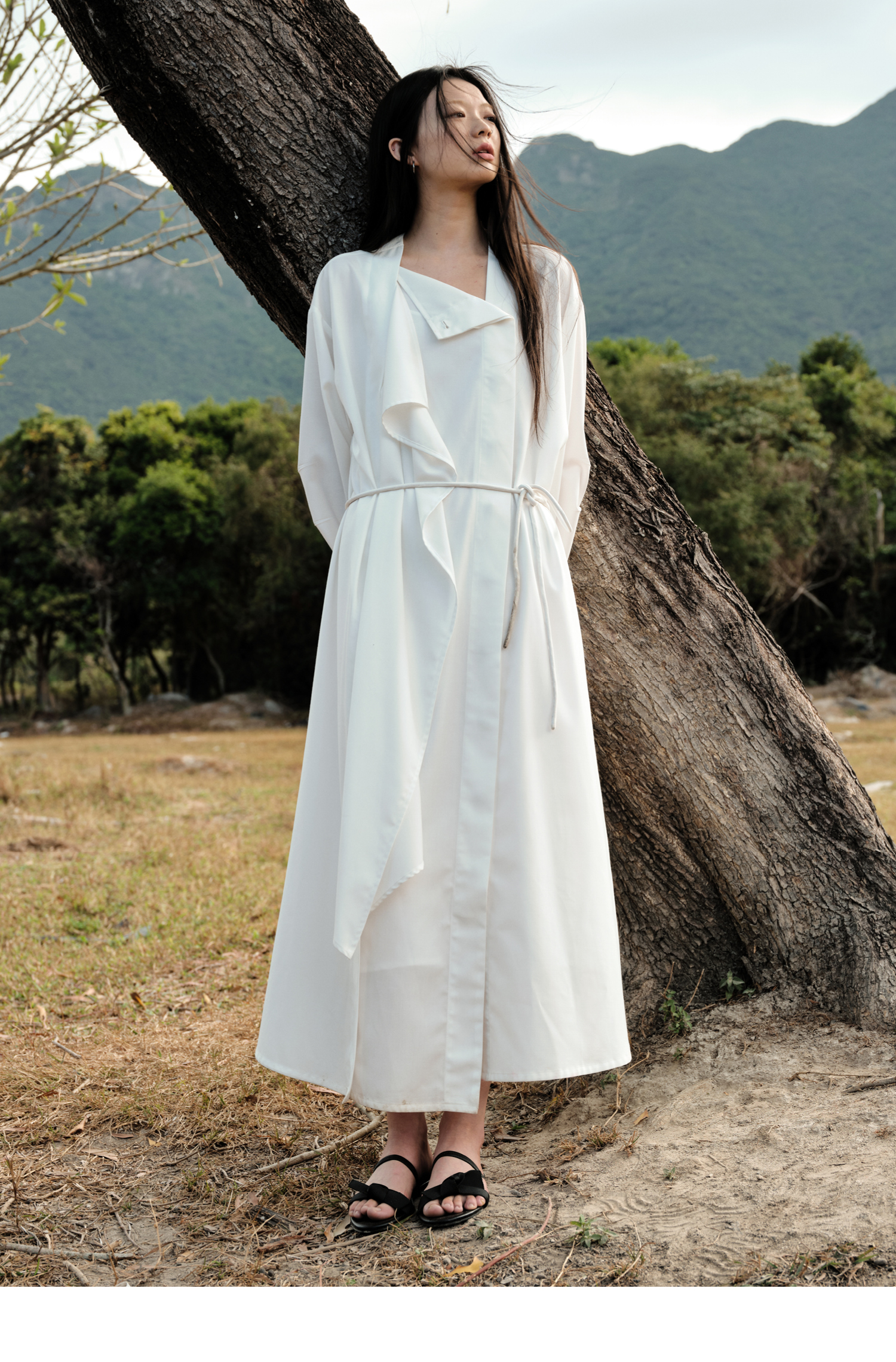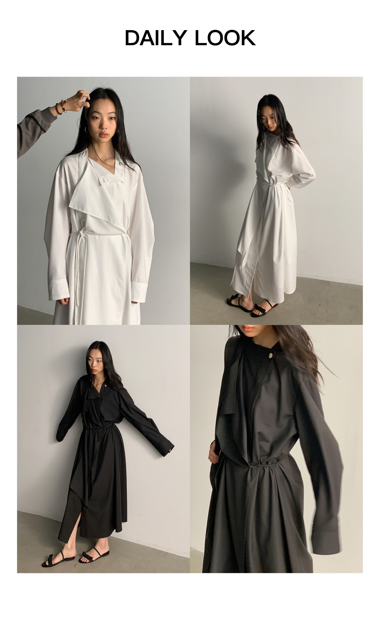 【5折不退换 买六免一】早春慵懒感不规则斜门襟设计感长款搭片连衣裙