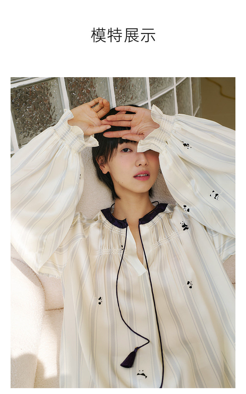 【李兰迪同款】桑罗熊猫连衣裙长袖睡裙条纹印花家居服睡衣