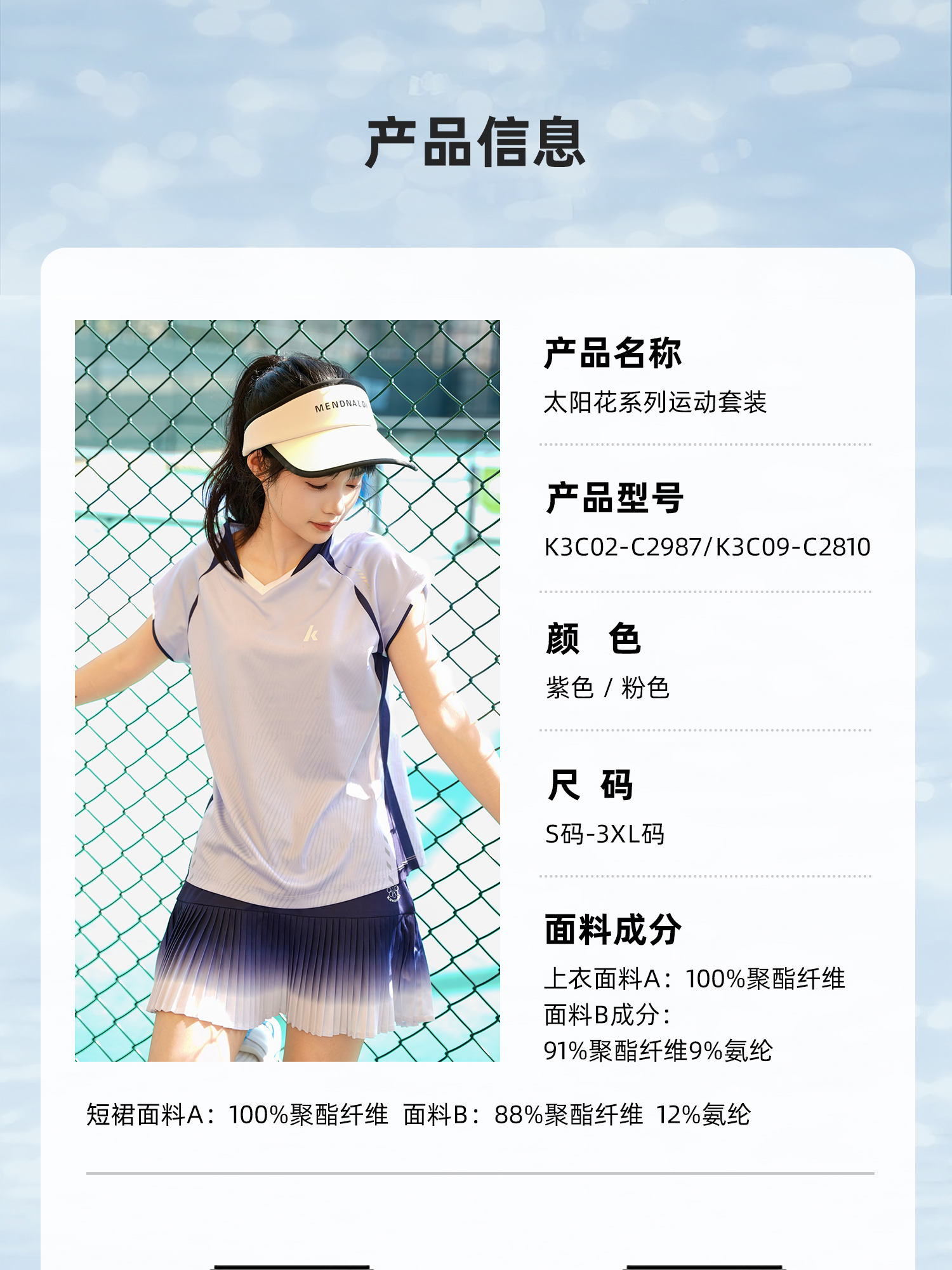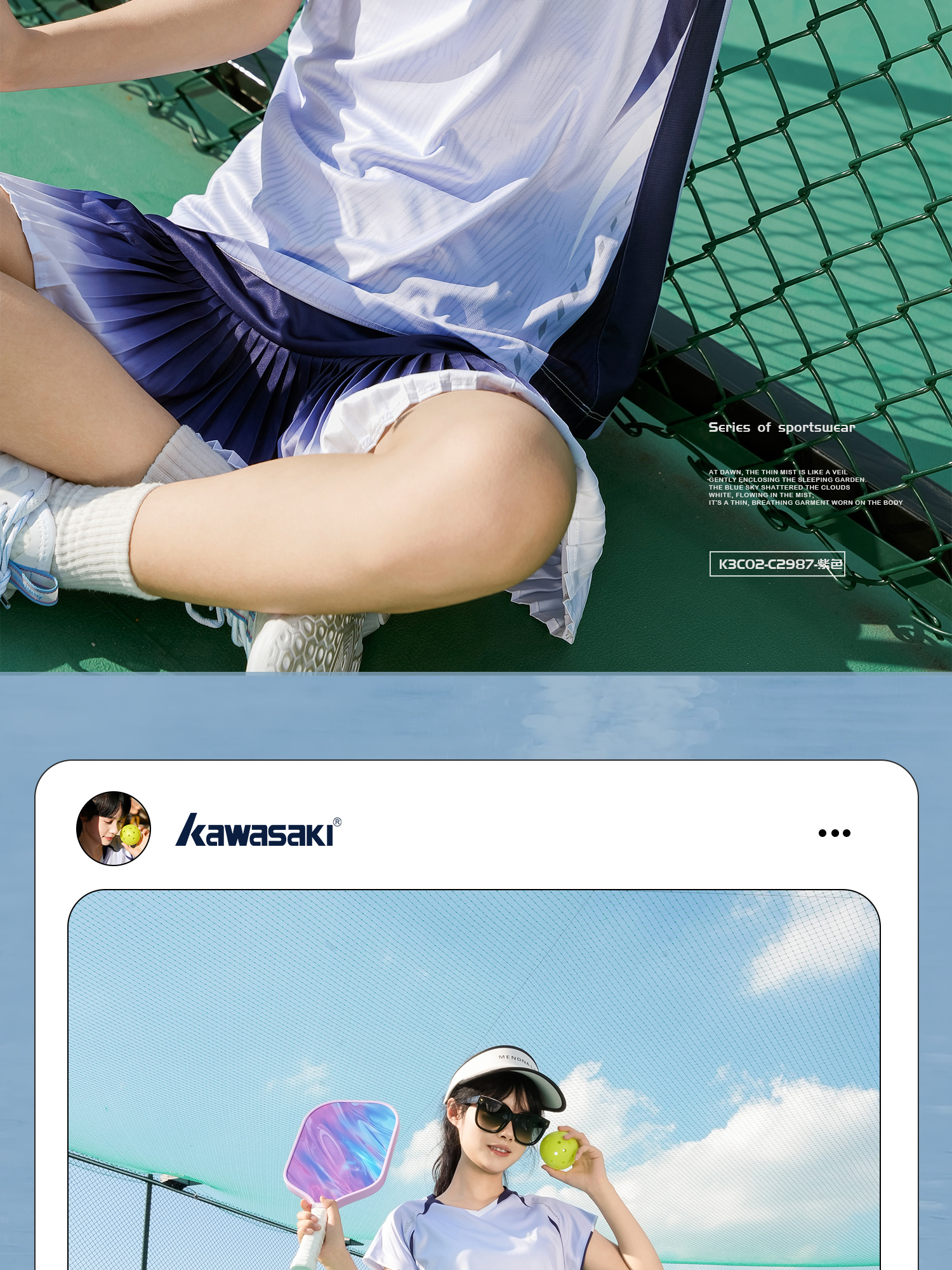 川崎 女款 运动短袖T恤/运动短裙 K3C02-C2987 / K3C09-C2810