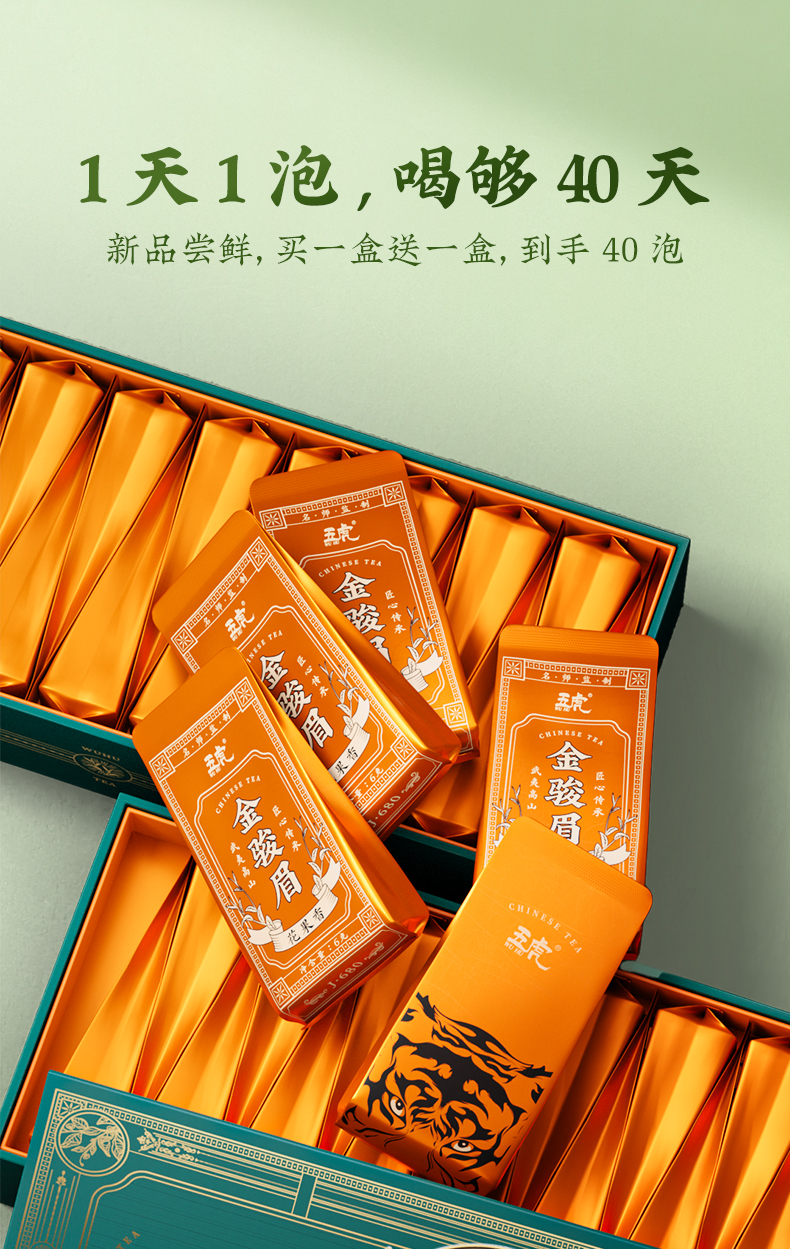 【买一送一】茶叶 红茶 金骏眉 武夷红茶 茶叶礼盒 年货礼盒 茶饮 五虎 120g 买一送一