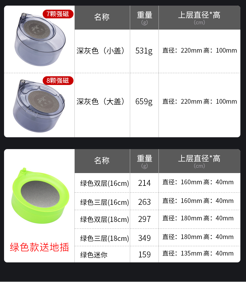 伽玛精工全磁拉饵盘强磁一线钓鱼通用散炮鱼饵开饵盆地插迷你竞技饵料盆