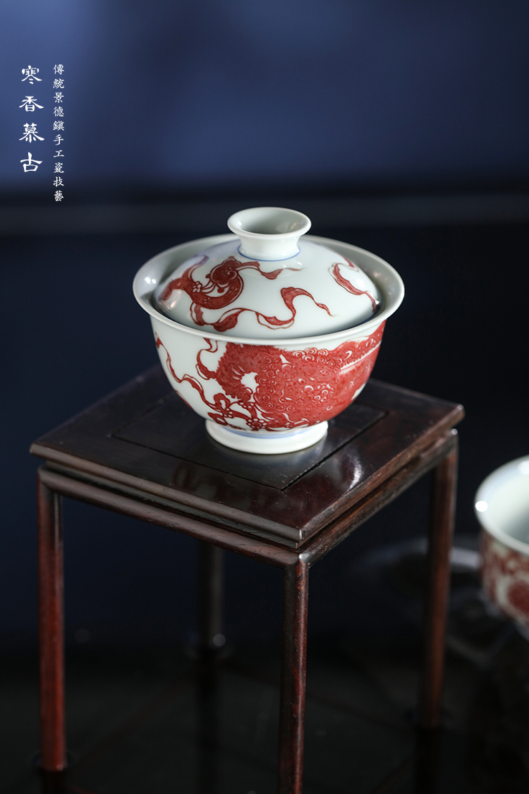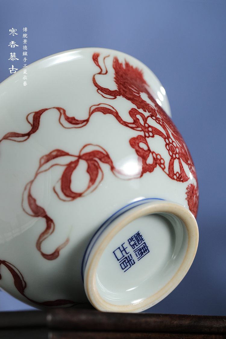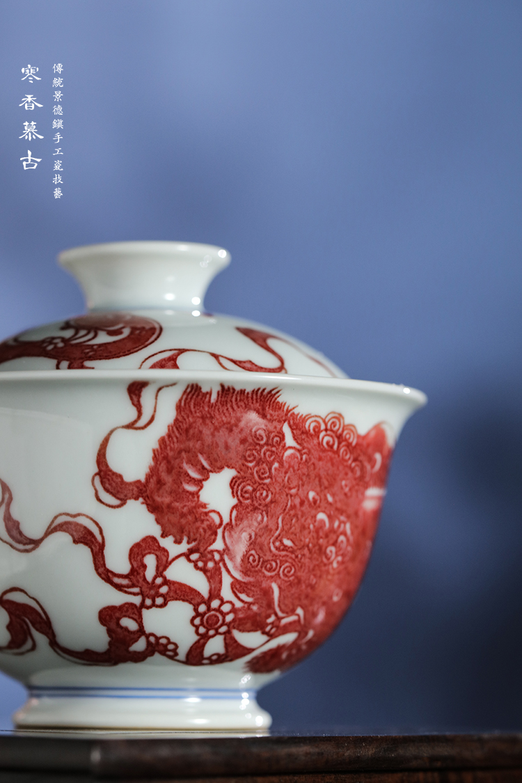 寒香慕古釉里红狮子绣球二才盖碗