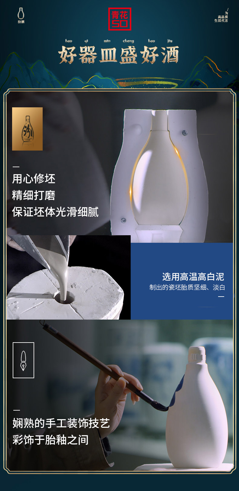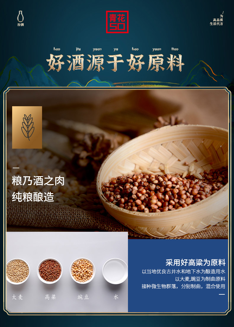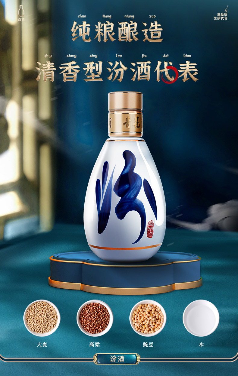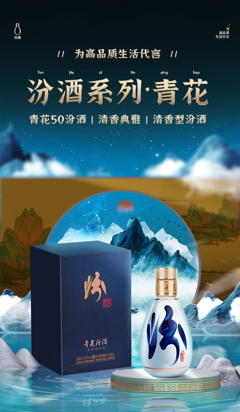青花50汾酒65度100ml 汾酒官方旗舰店 山西杏花村 清香型白酒