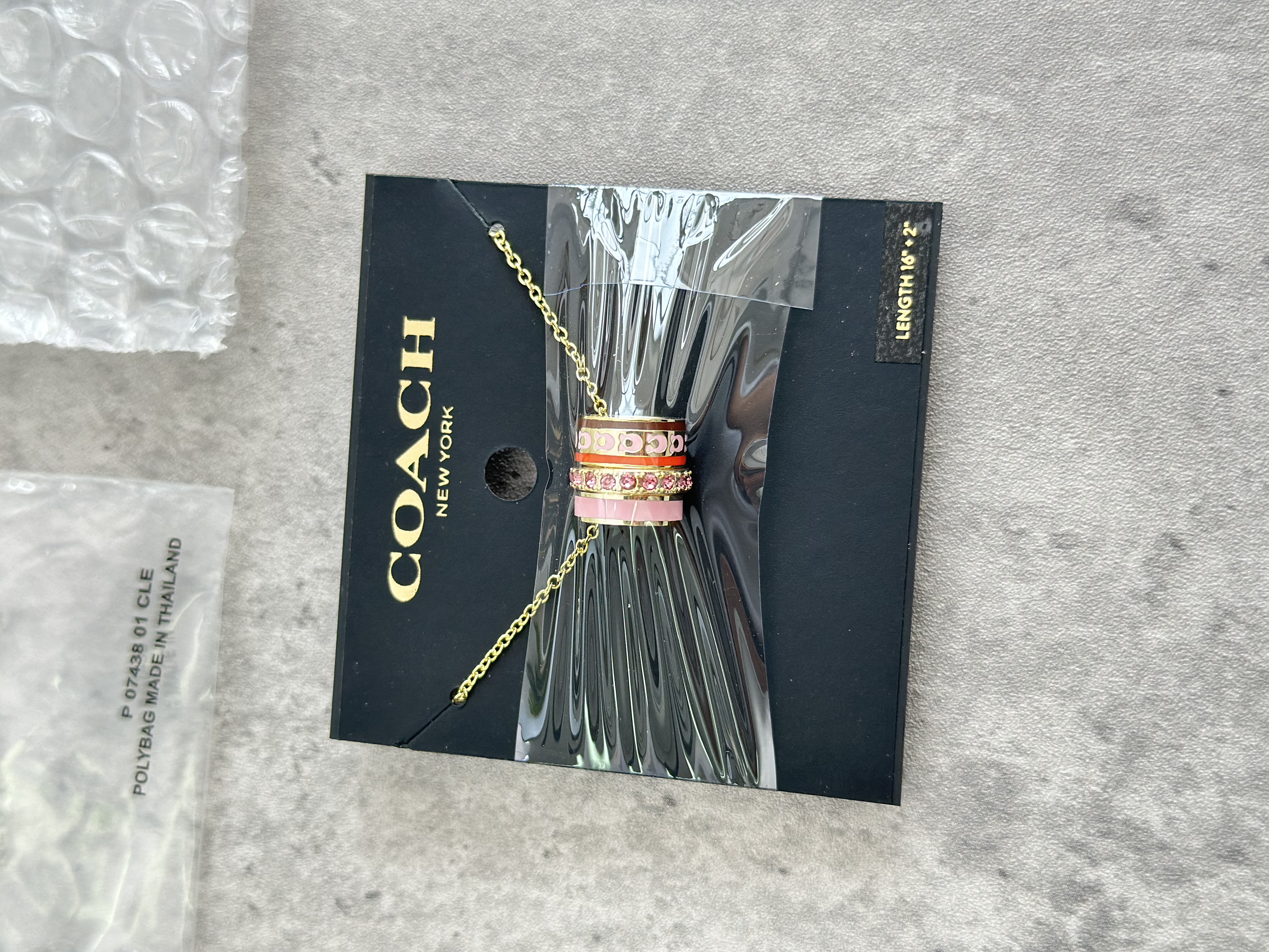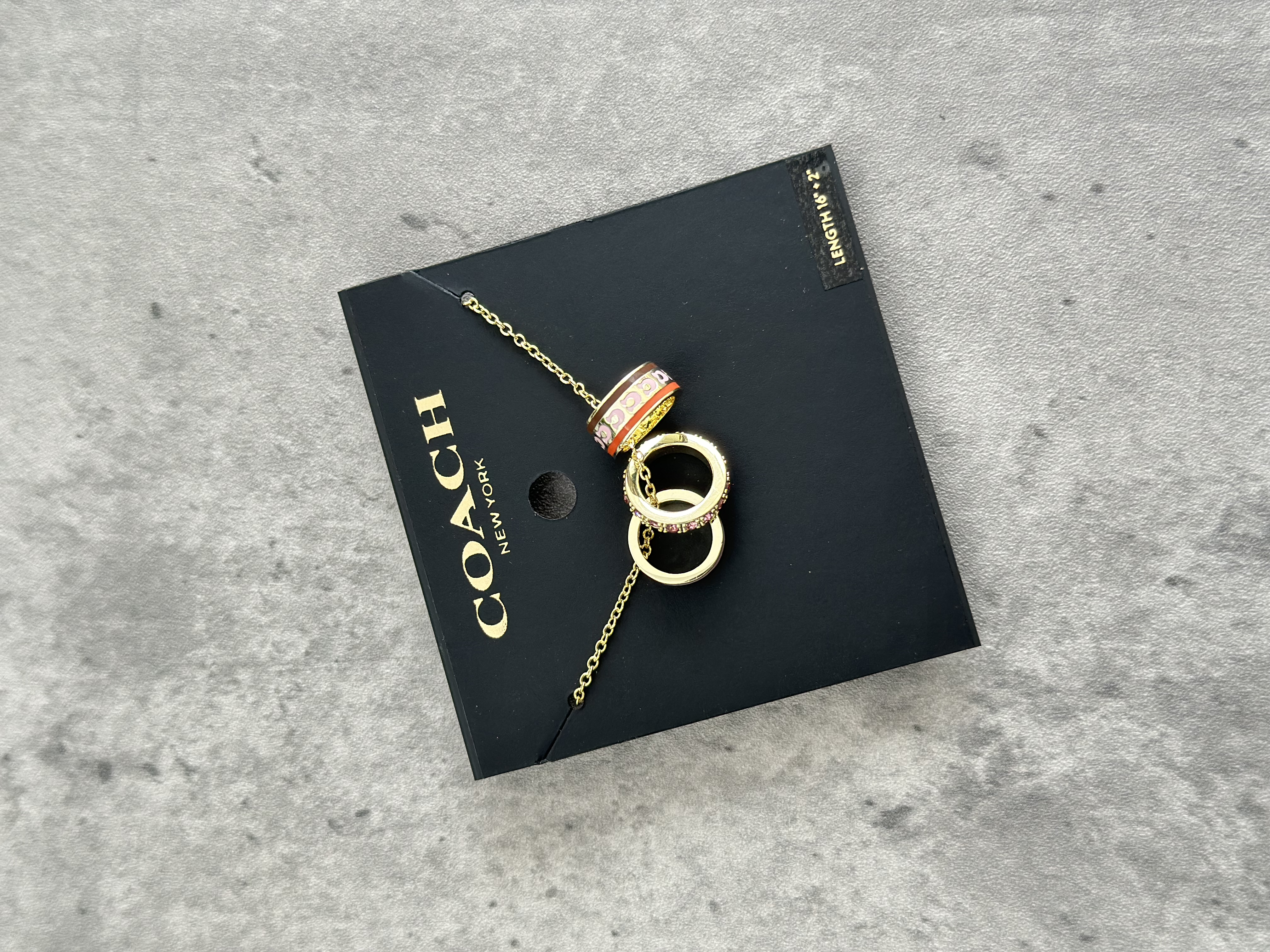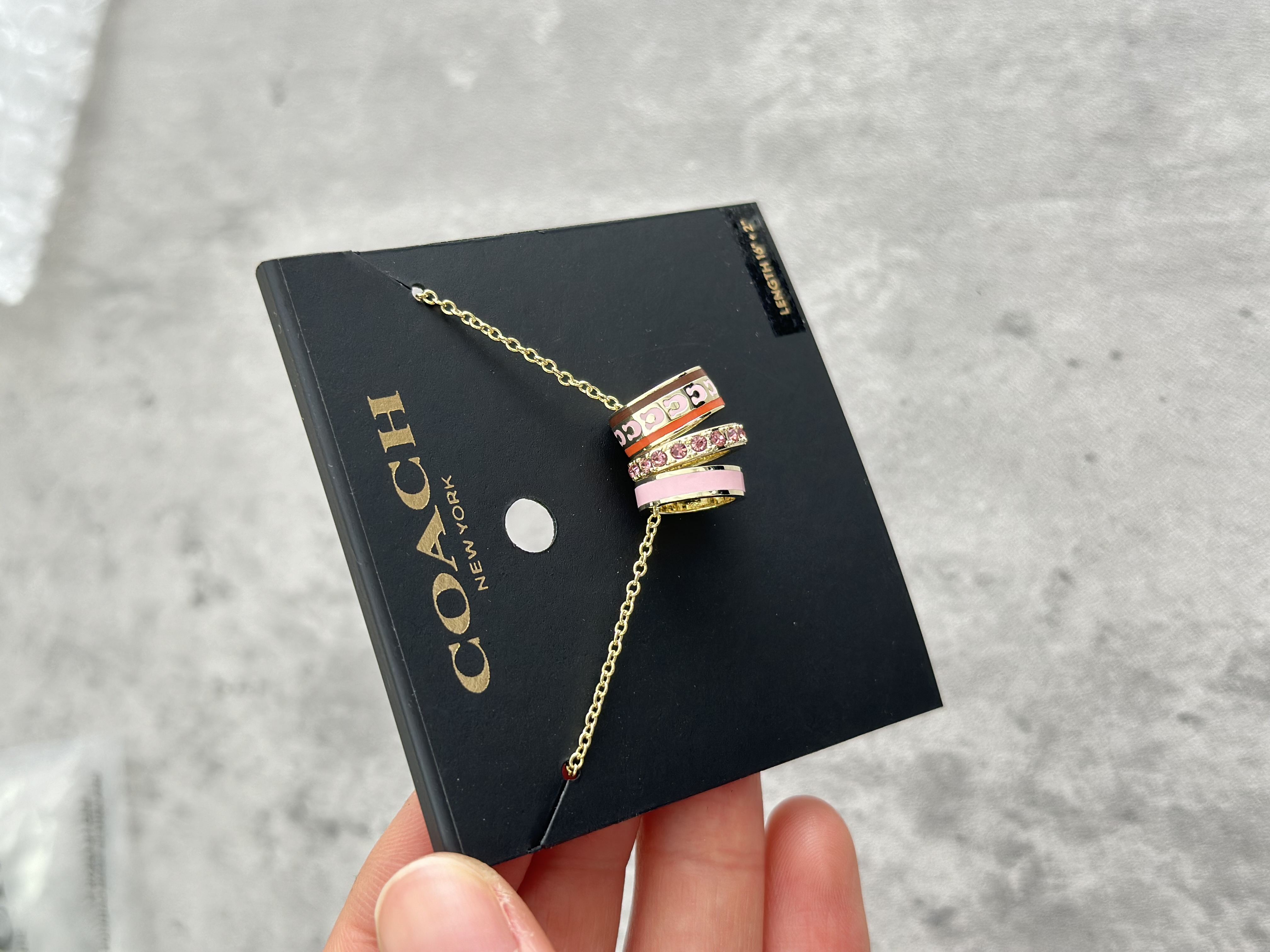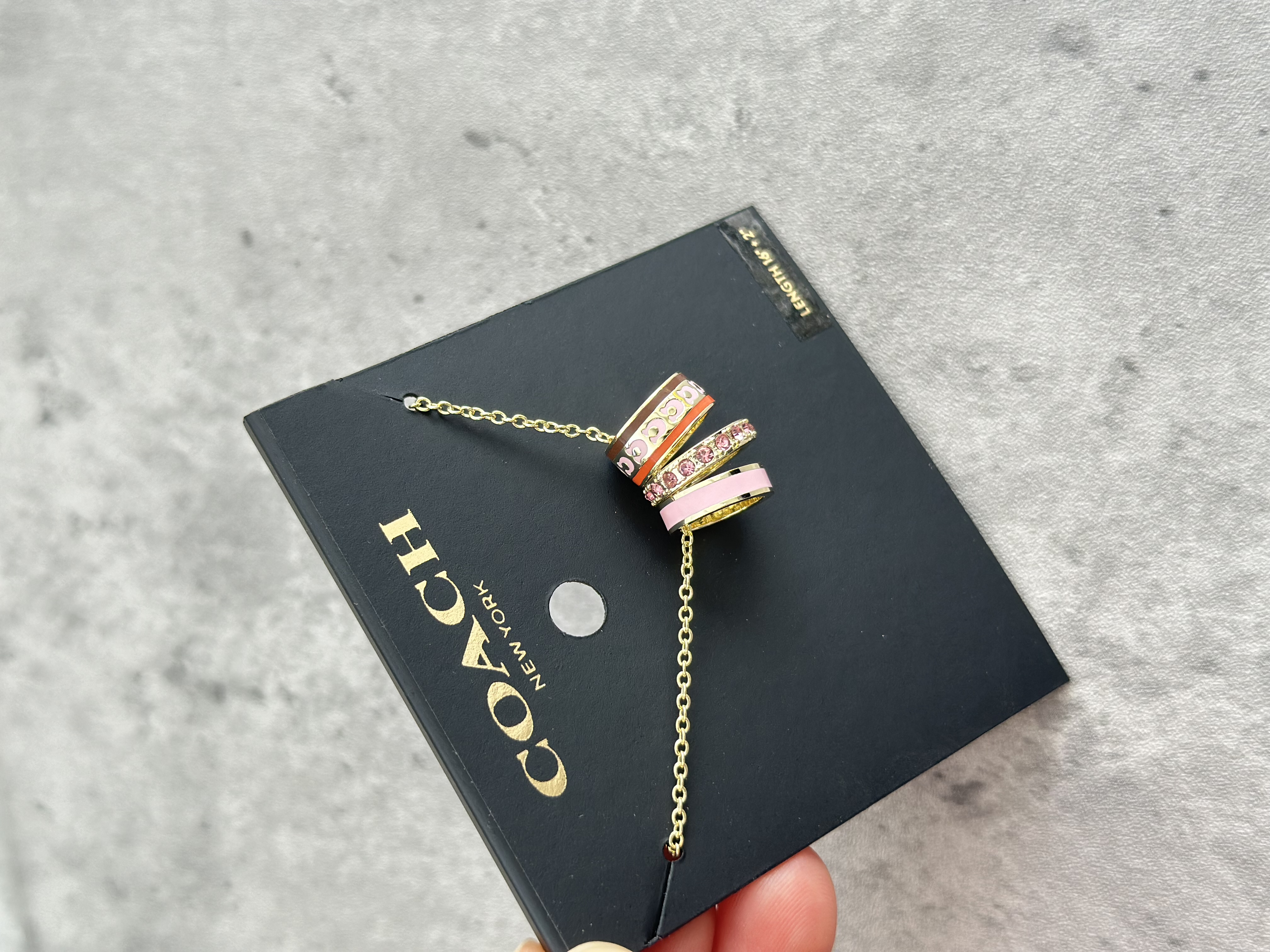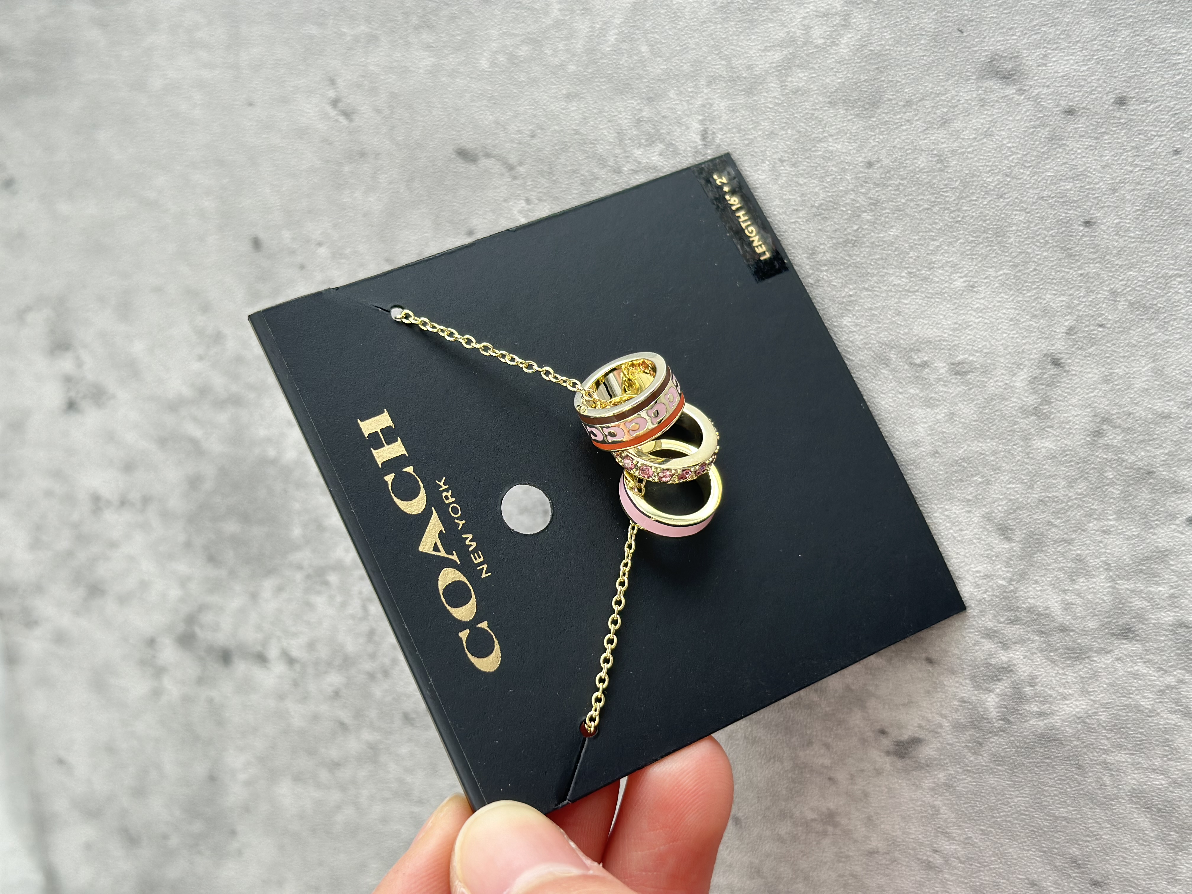 正品 裸包装! 蔻驰粉色三环锁骨链项链吊坠锁骨链饰品