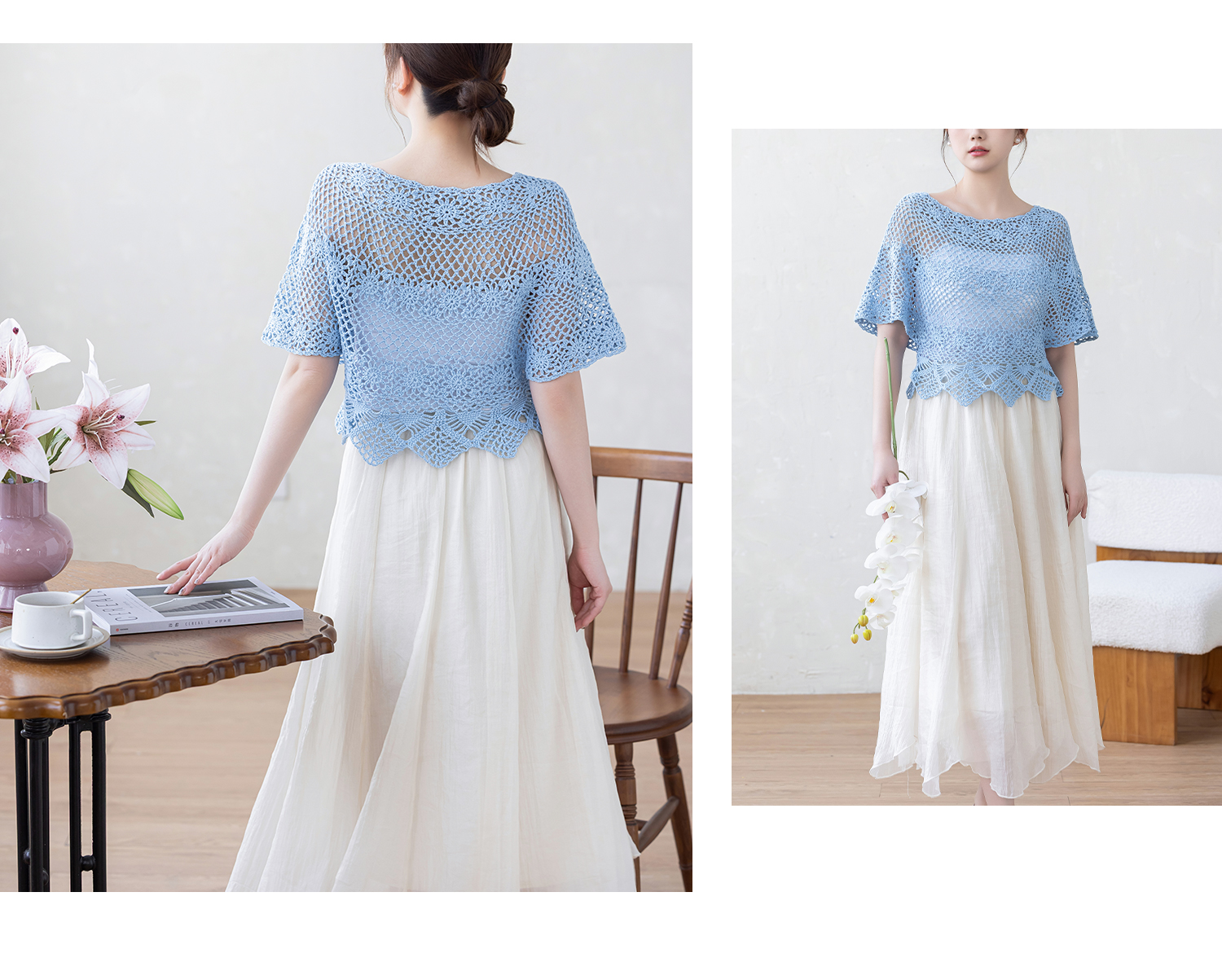 苏苏姐家翩翩凤尾套头衫手工diy钩针编织棉麻衣服毛线团材料包