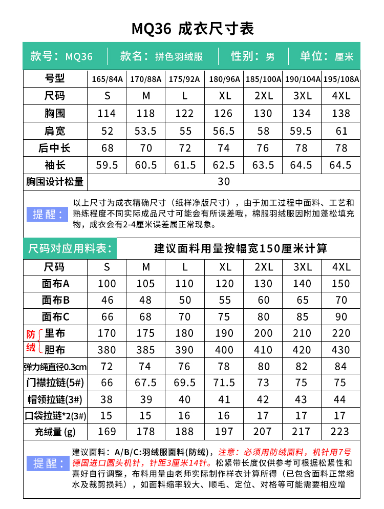 裁缝学苑MQ36男士拼色连帽羽绒夹克羽绒服纸样冬季外套上衣样衣打版