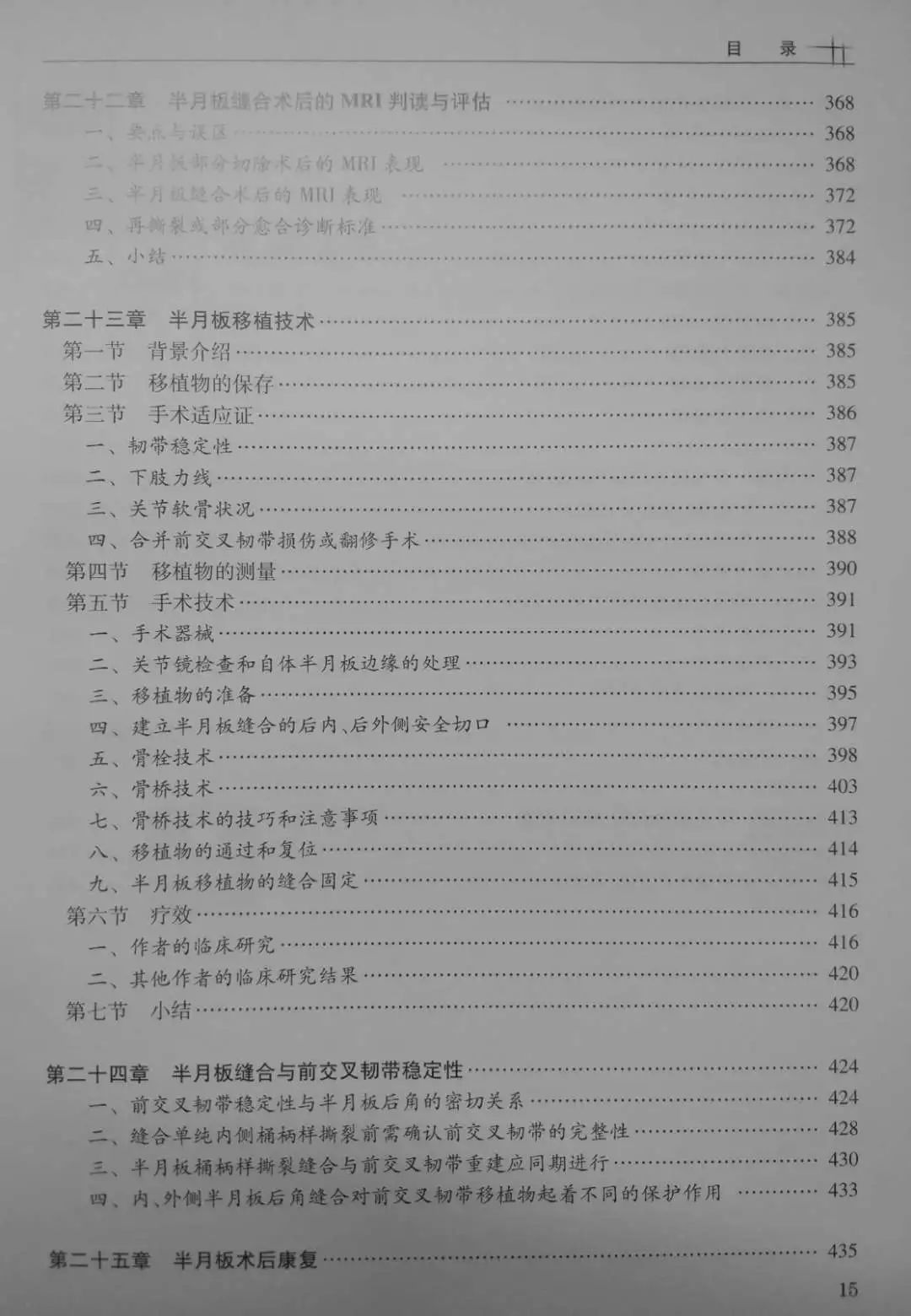 本书围绕临床诊断和治疗进行了系统详细的介绍,突出其实用性:包括经典的自内向外和自外向内缝合技术、快捷易行的半月板固定物、精细的全内缝合钩缝合技术和半月板移植手术等,将"基础、经典和提高" 融于一体,对运动医学与关节镜专科医生、骨科住院医生和专科进修医生有非常大的帮助。