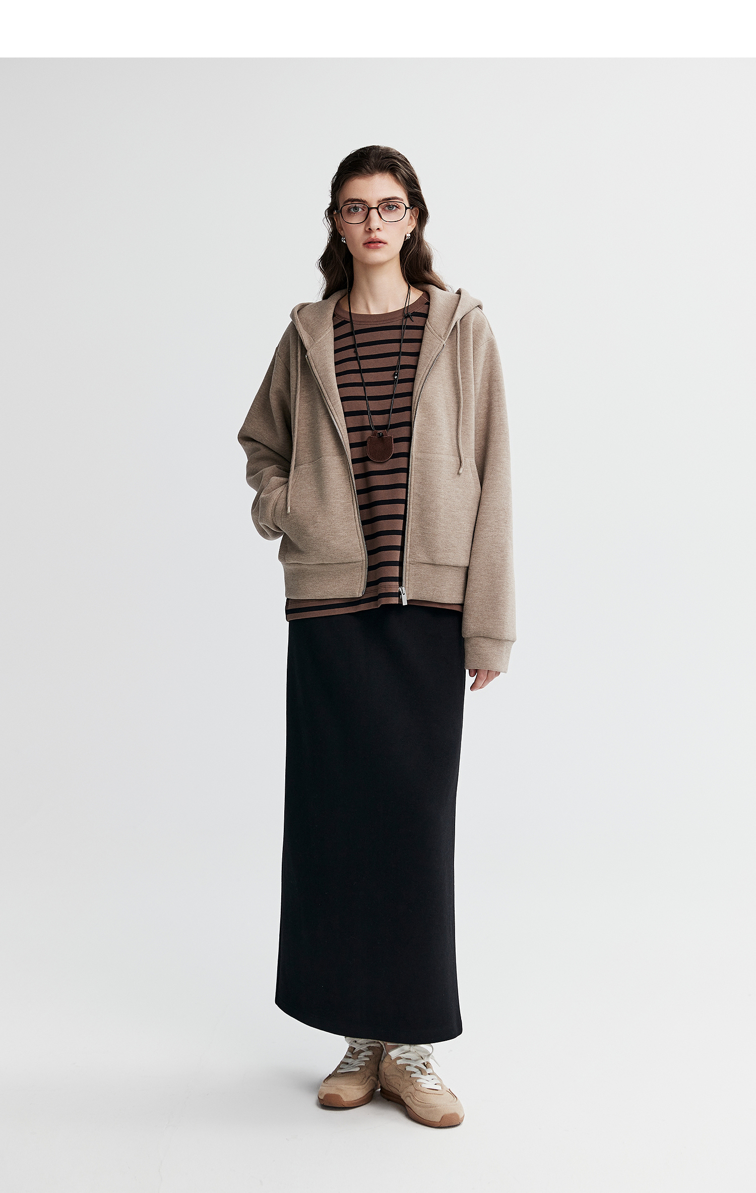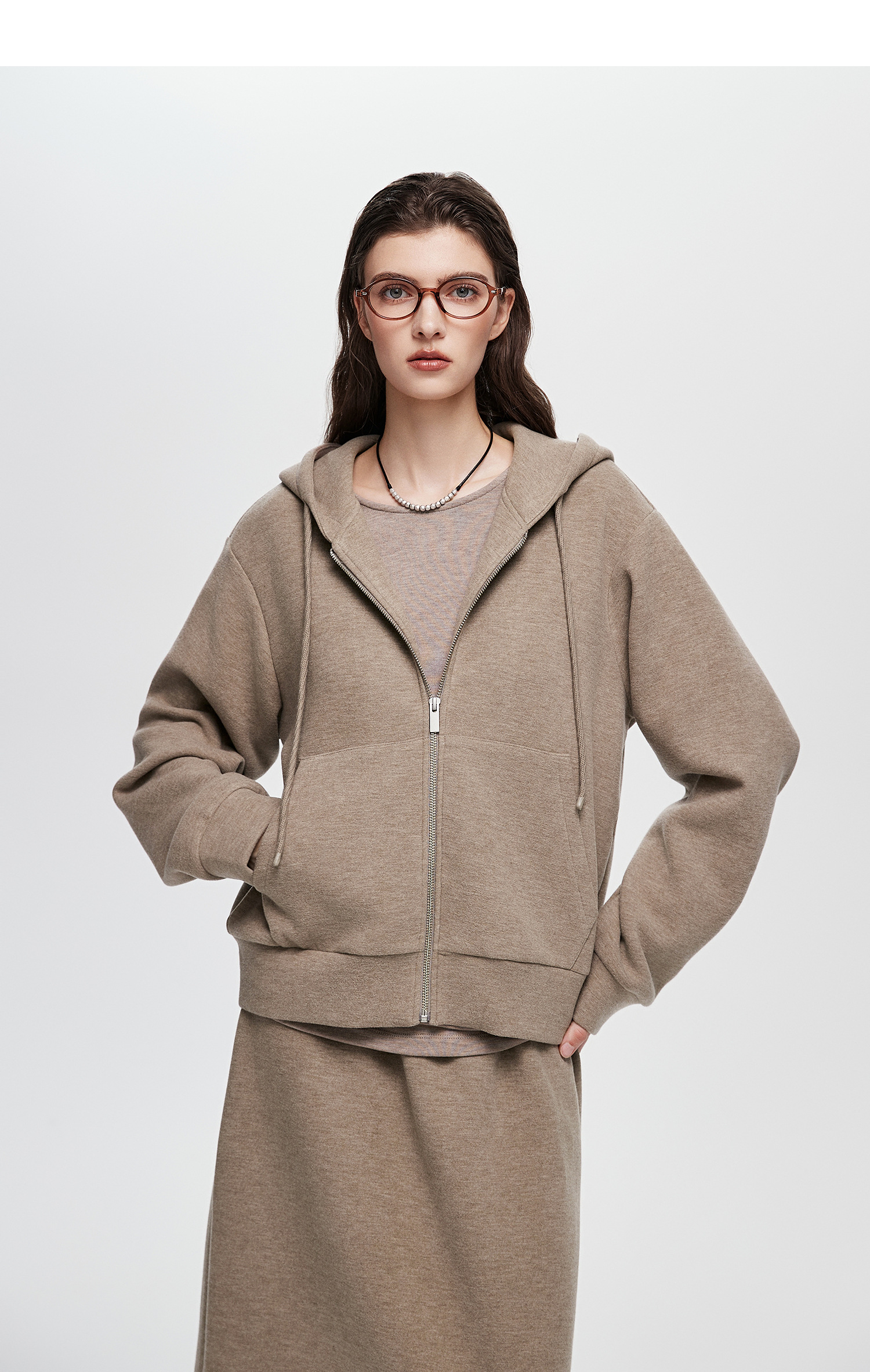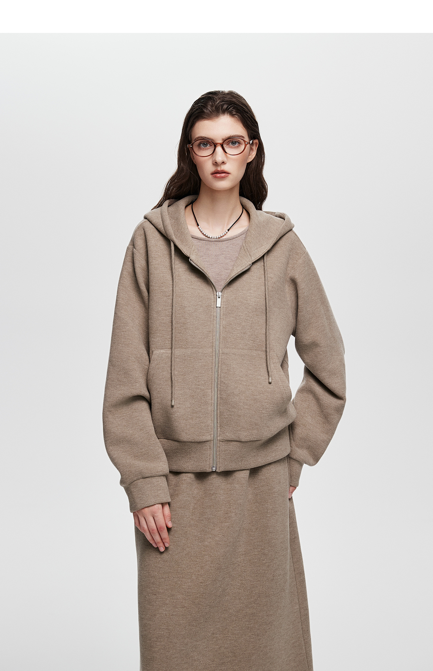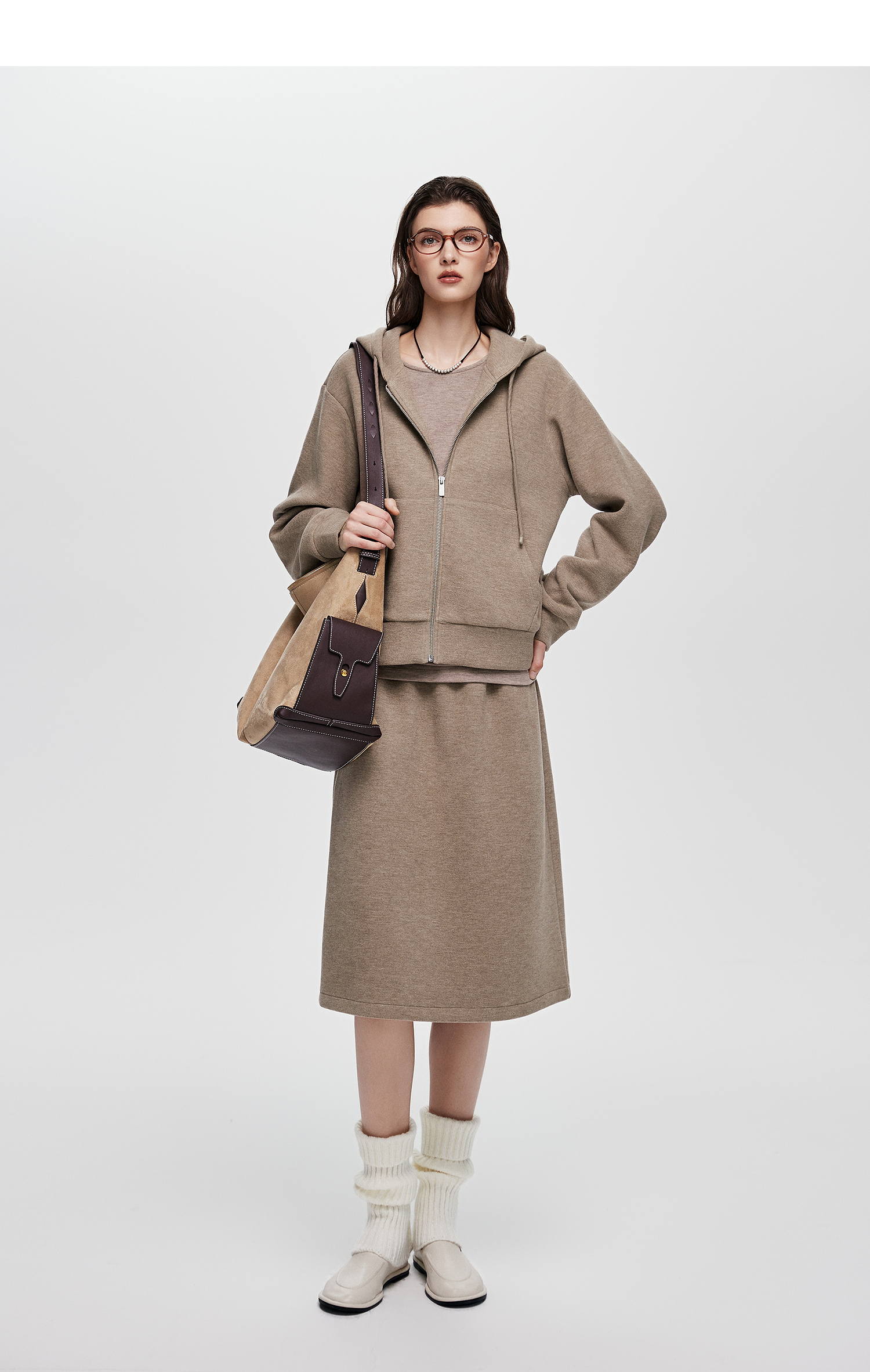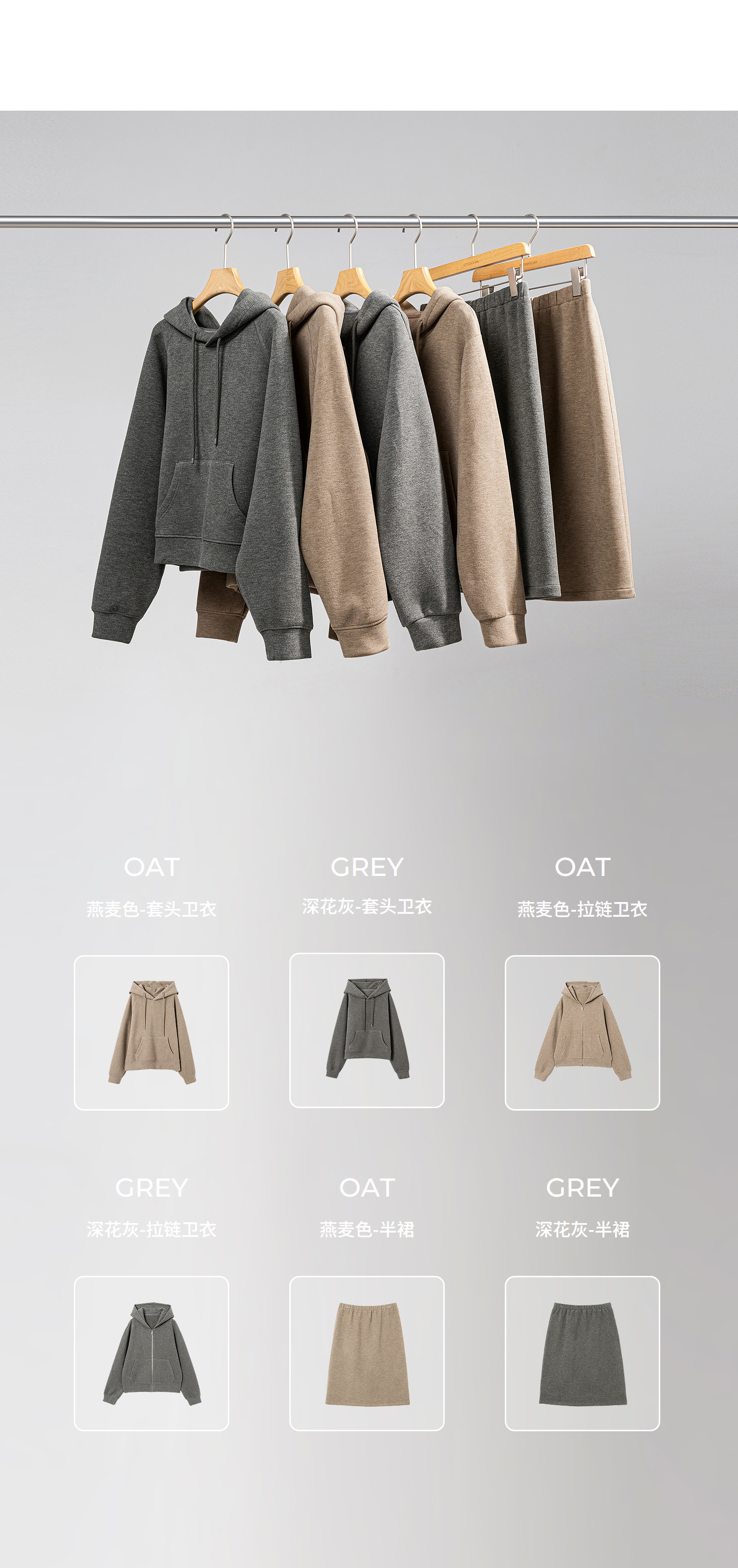 棉仓366608011-【绒系列】空气层卫衣半身裙套装女25秋冬含羊毛连帽套头外套