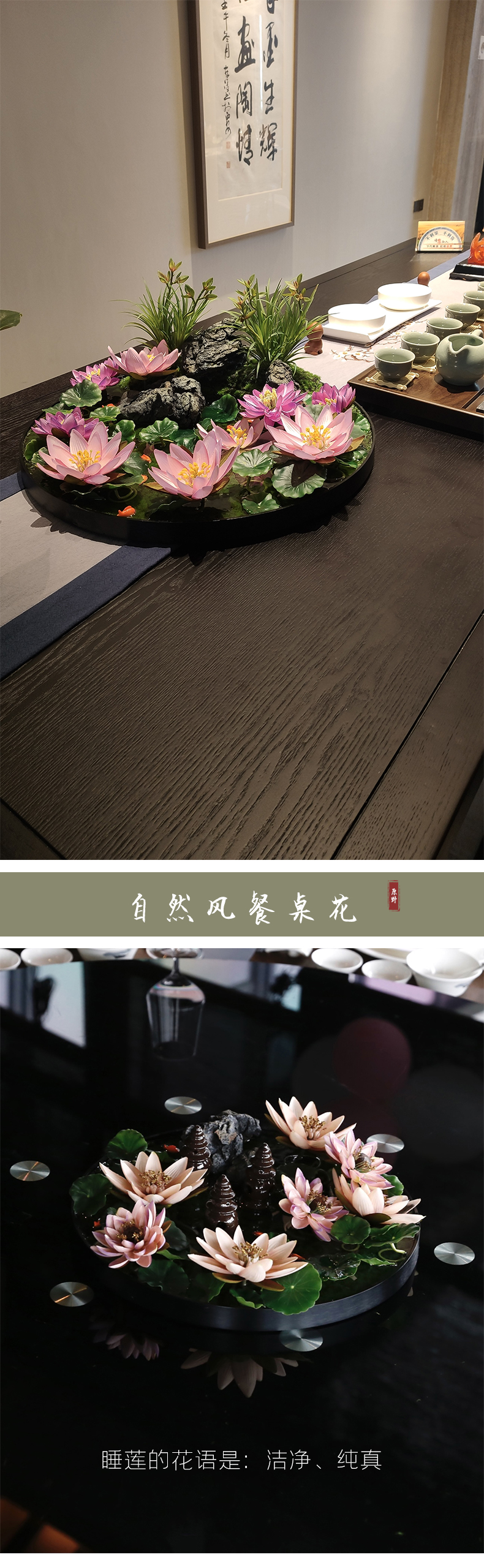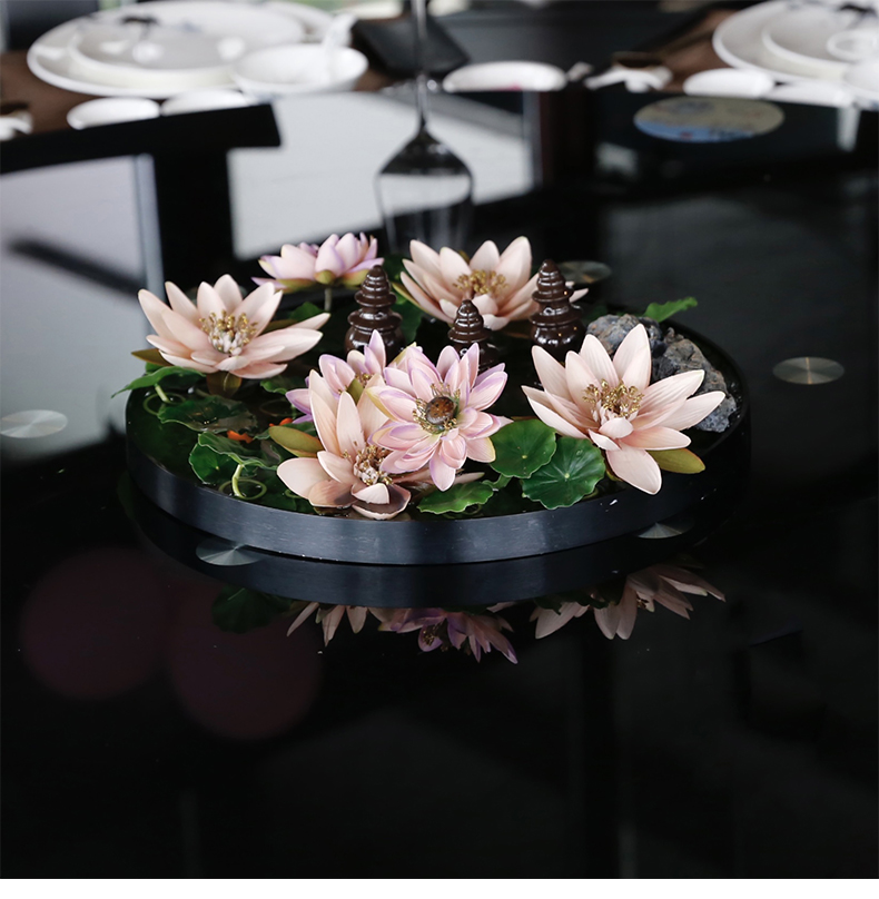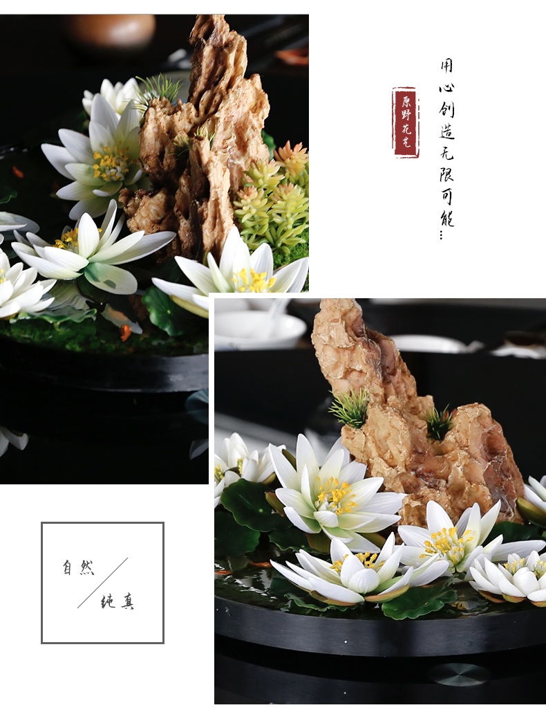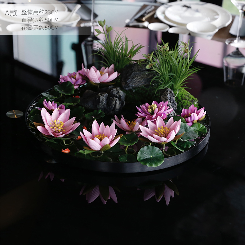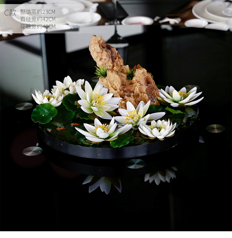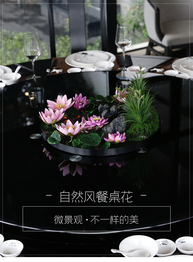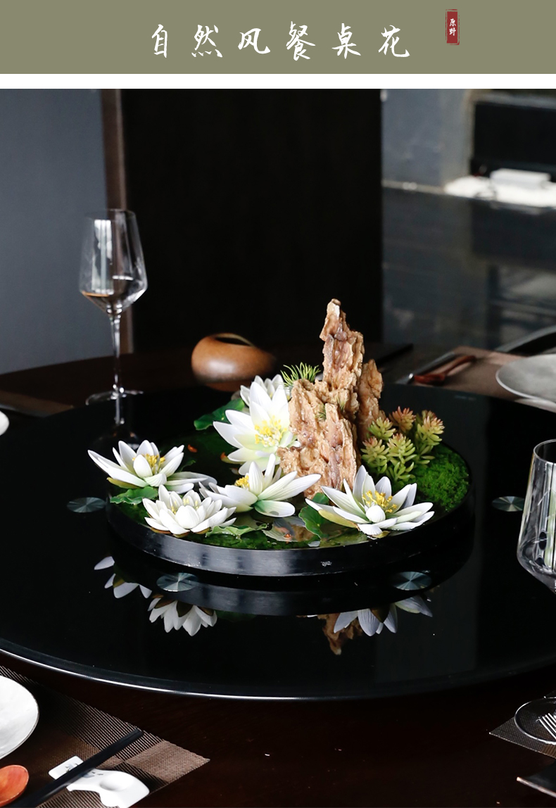 酒店餐桌花摆花高端新中式花仿真花假花圆形圆桌转盘餐厅装饰摆件