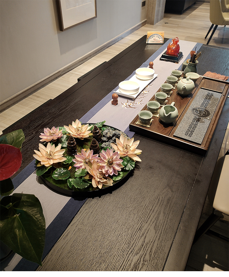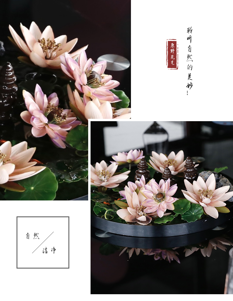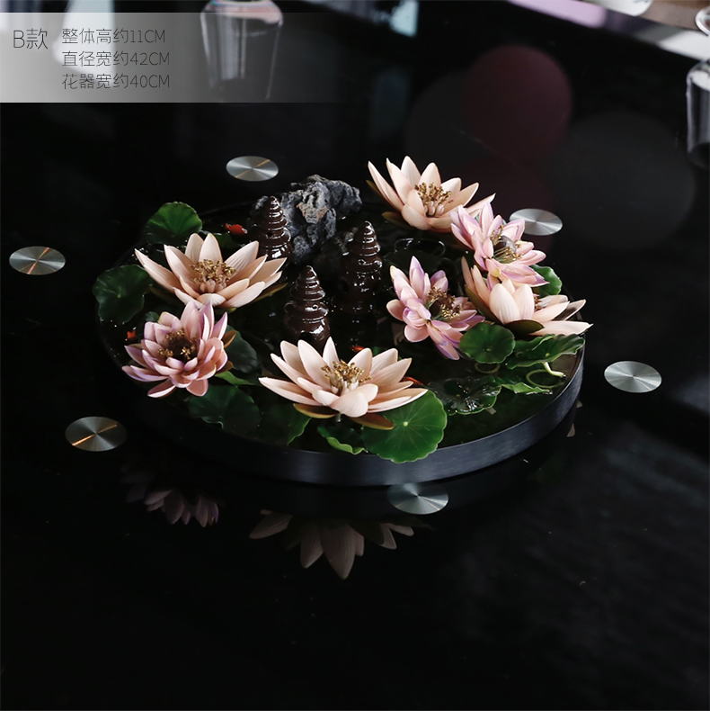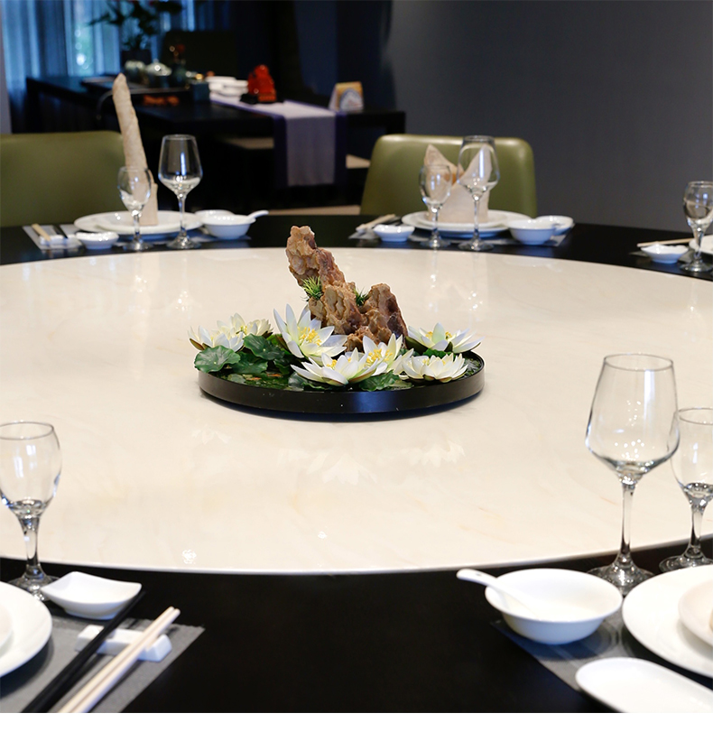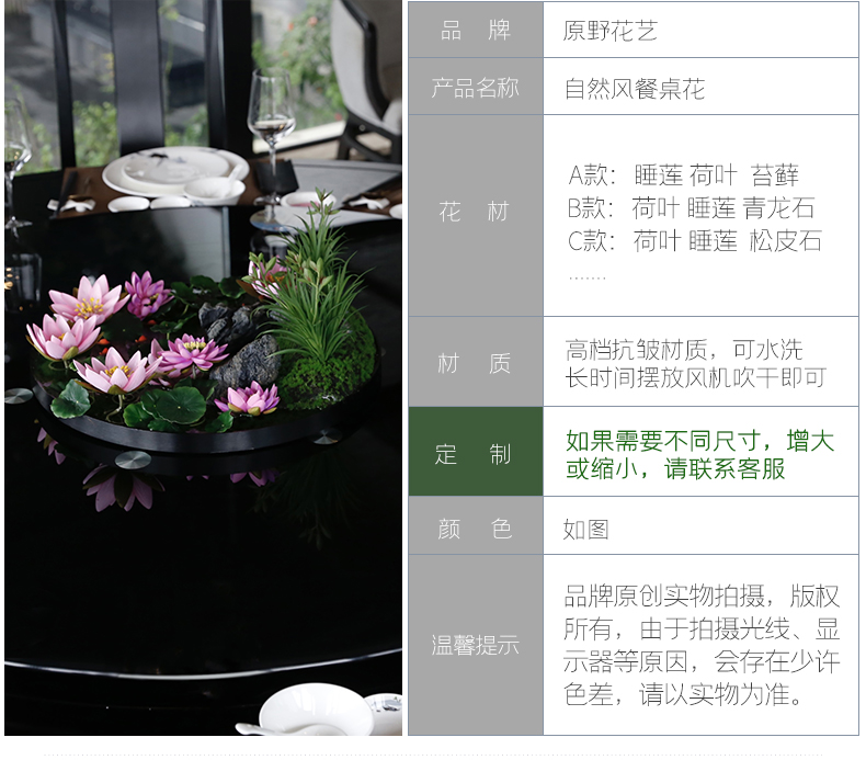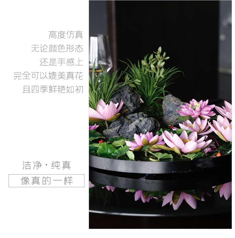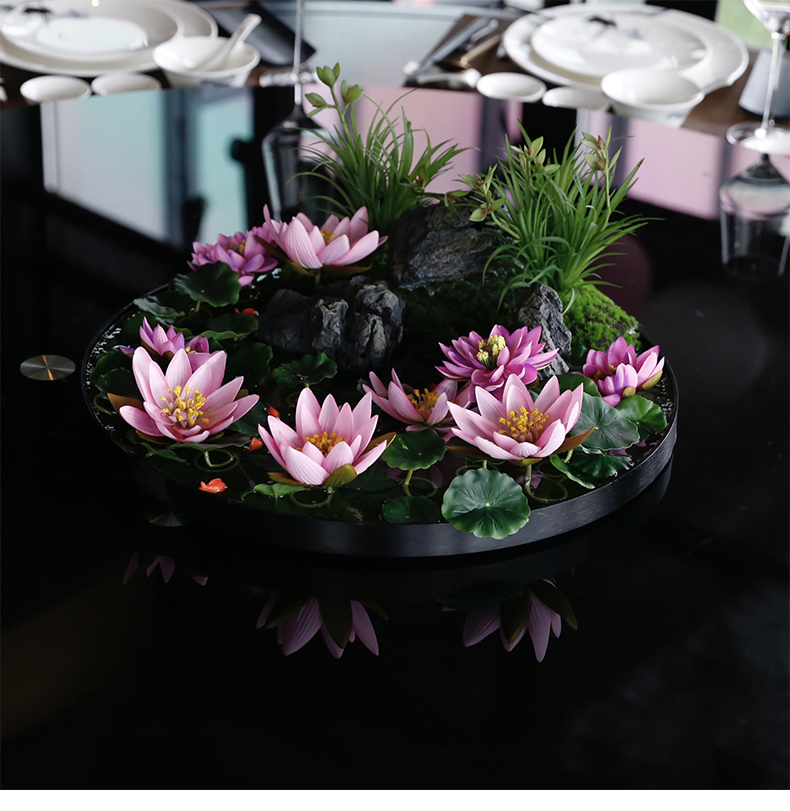 酒店餐桌花摆花高端新中式花仿真花假花圆形圆桌转盘餐厅装饰摆件