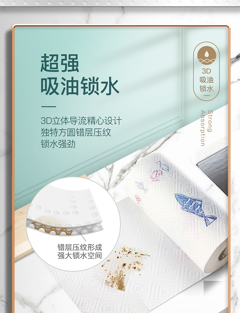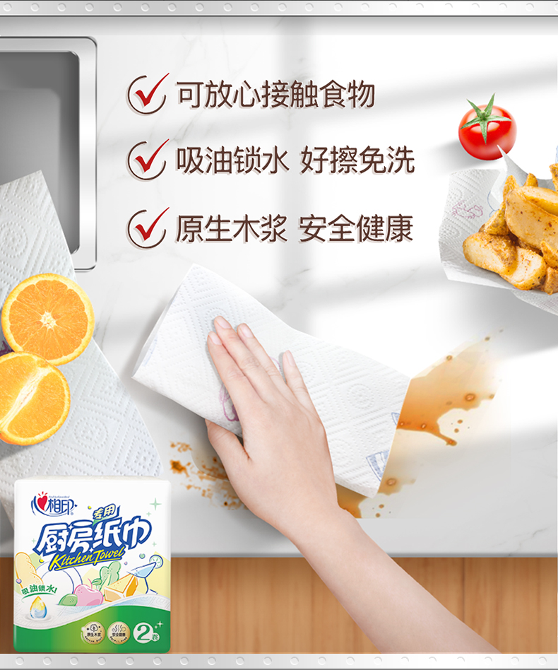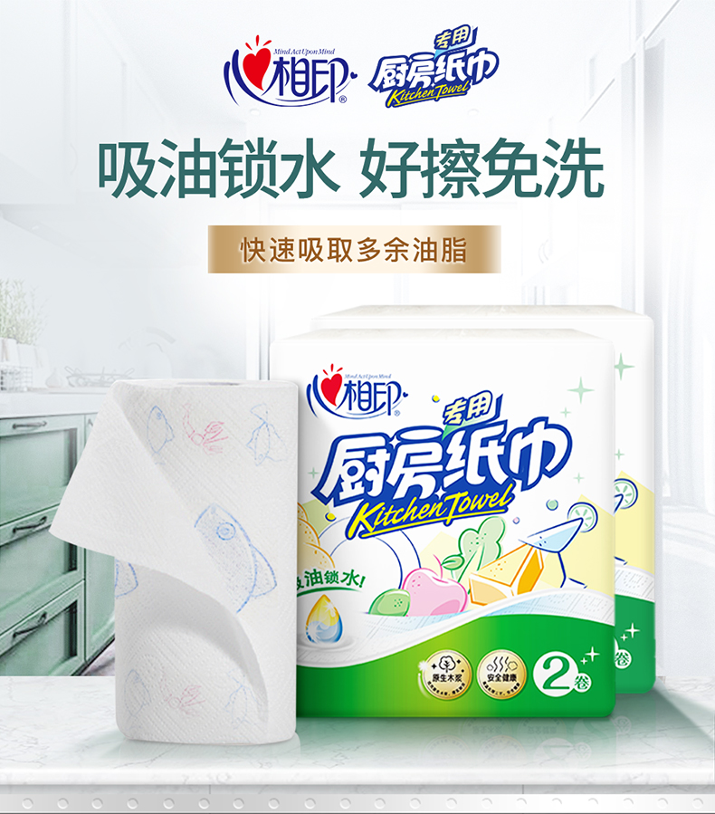 【积分兑换】心相印 2粒装75节印花厨房纸巾单提装KT102(提装)