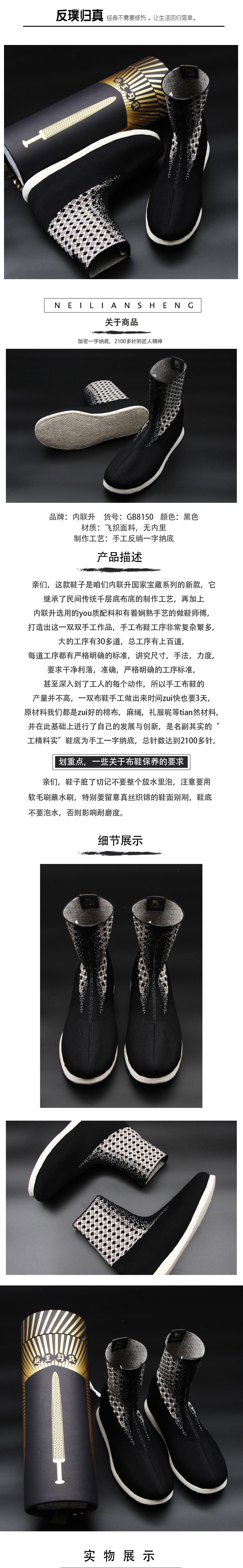 内联升男鞋手工单鞋千层底IP衍生国家宝藏系列之越王勾践袜鞋布鞋GB8150