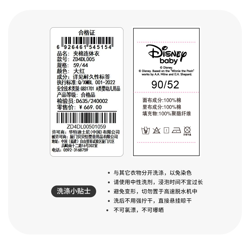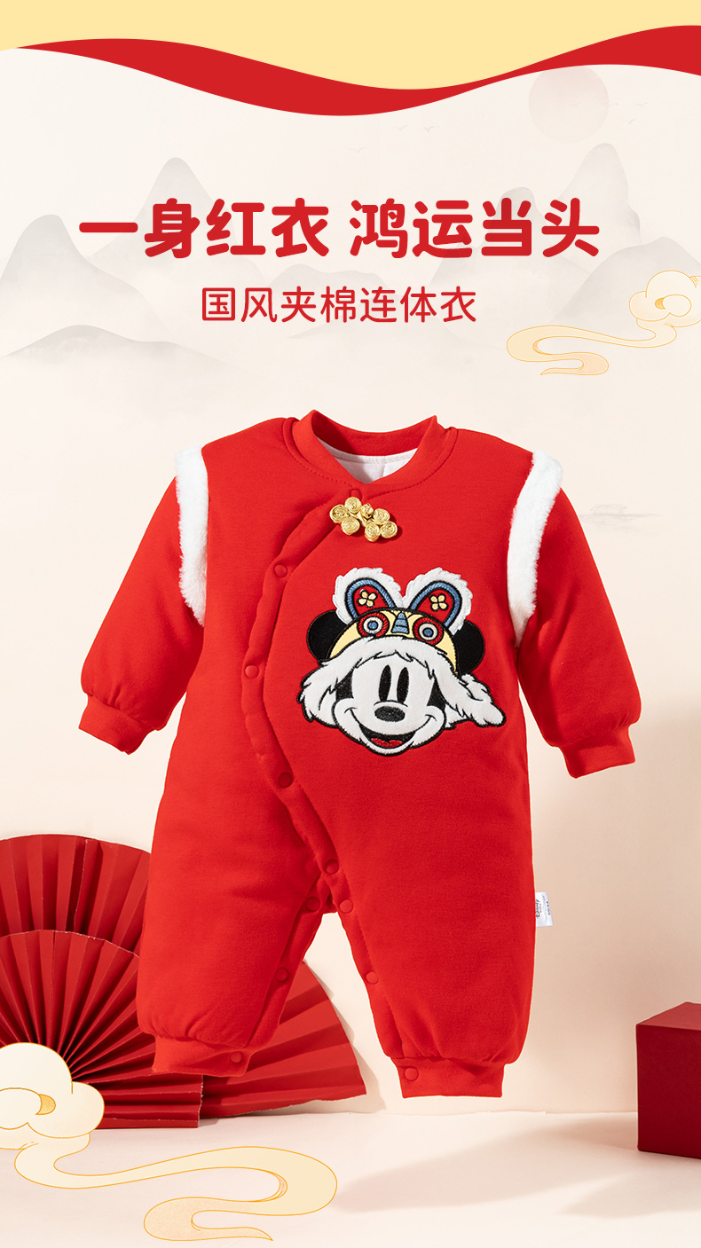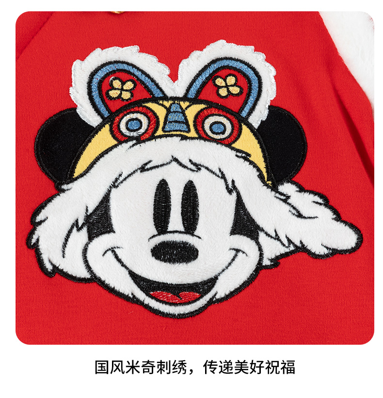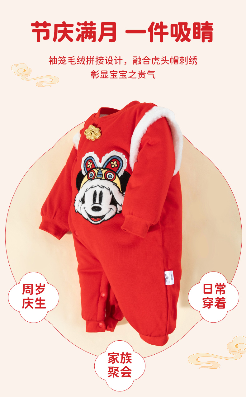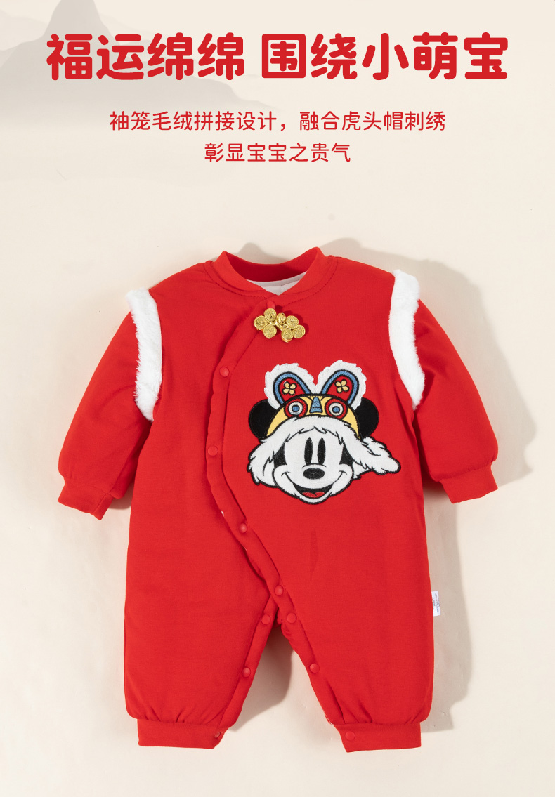 迪士尼【米奇国风哈衣】24秋冬新款男童夹棉防风保暖连体衣爬服拜年服ZD4DL005