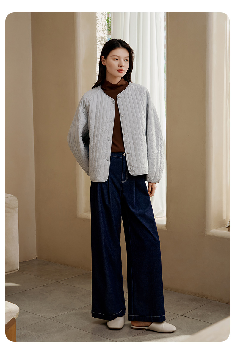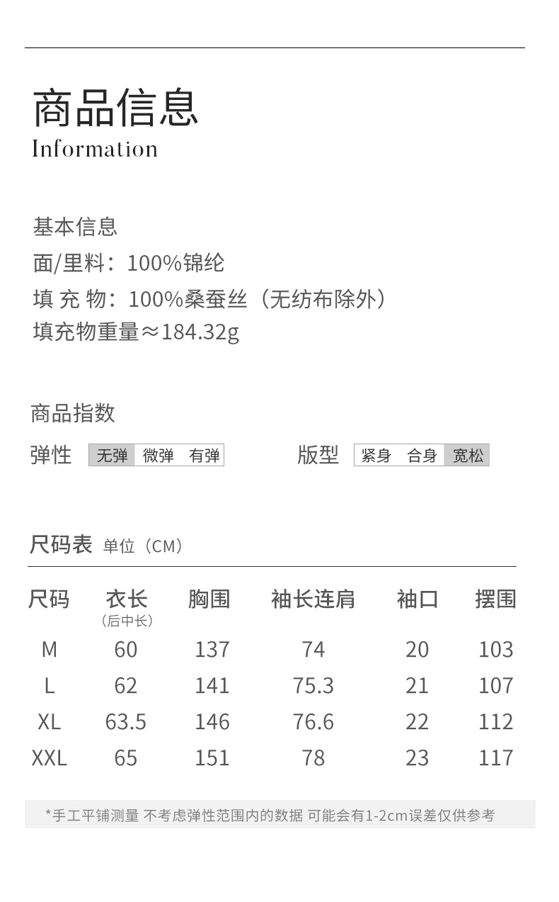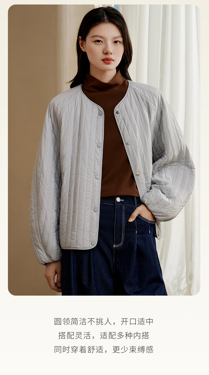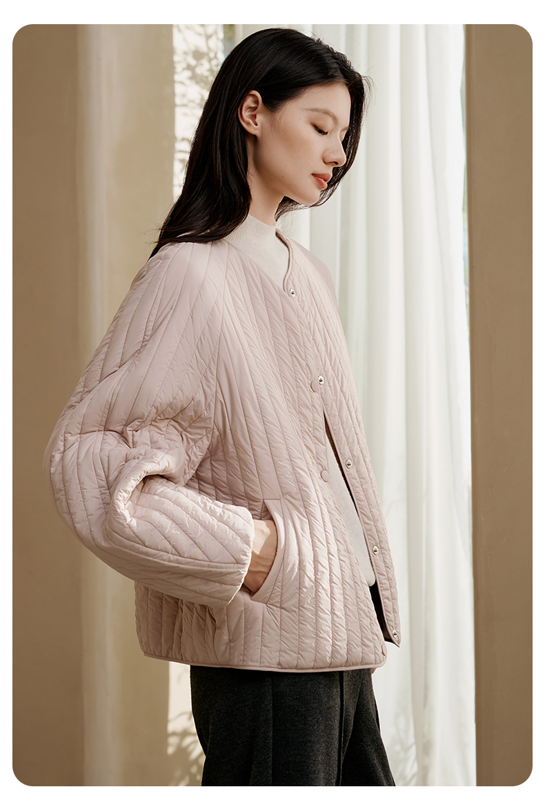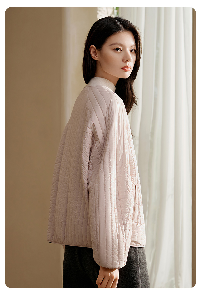 金三塔桑蚕丝简约条纹丝绵棉袄女宽松舒适可外穿保暖上衣秋冬新品 YSFFD702