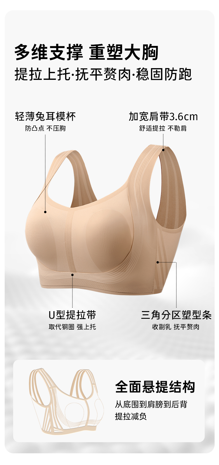 💗【提拉女王3.0四季款B-F杯】【外层升级全面果冻条悬提结构 递进式托举】【莱卡高弹面料】【液态锁脂大胸显小】润微内衣女无钢圈文胸 提拉凝姿