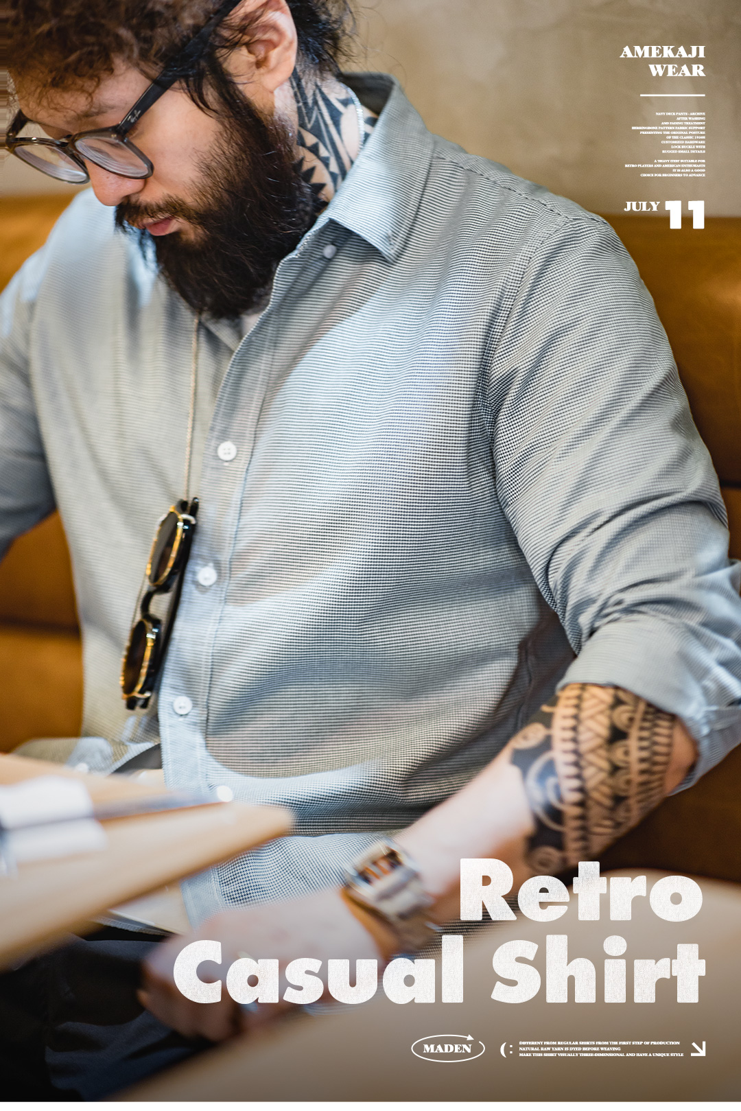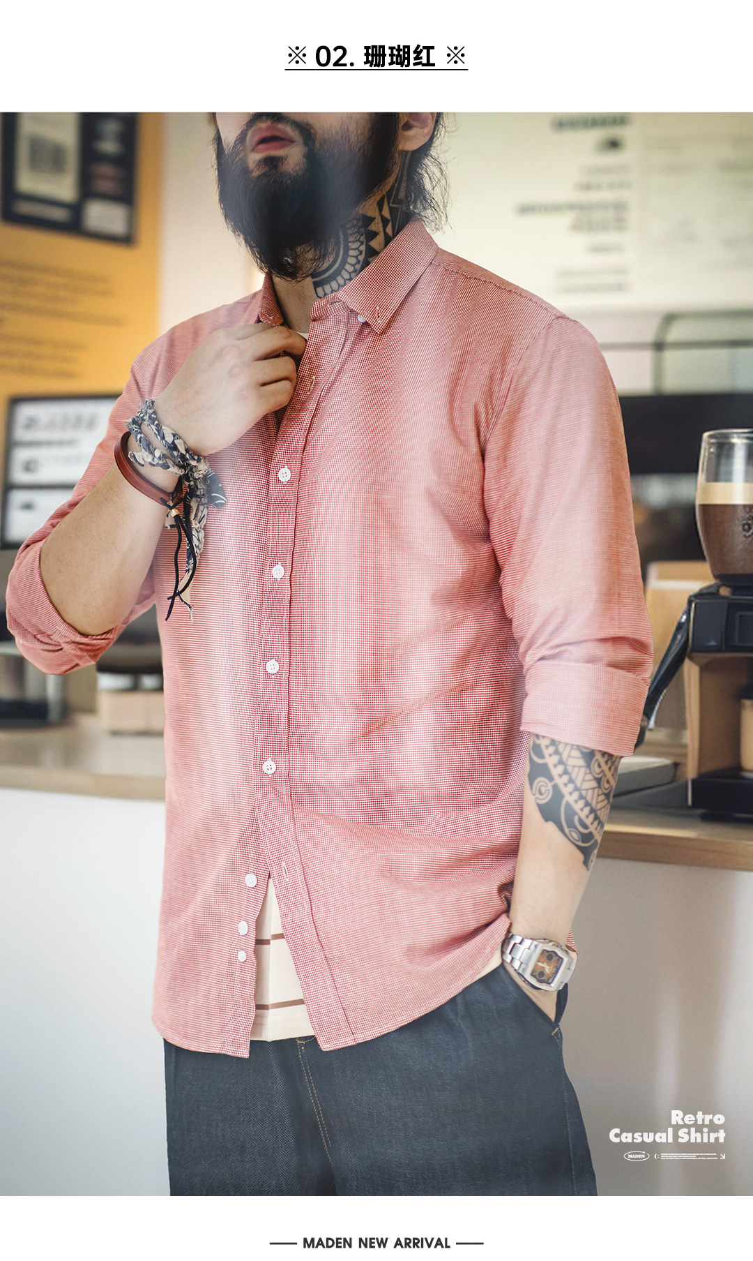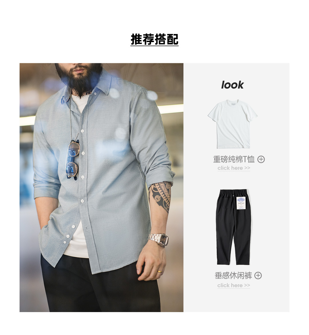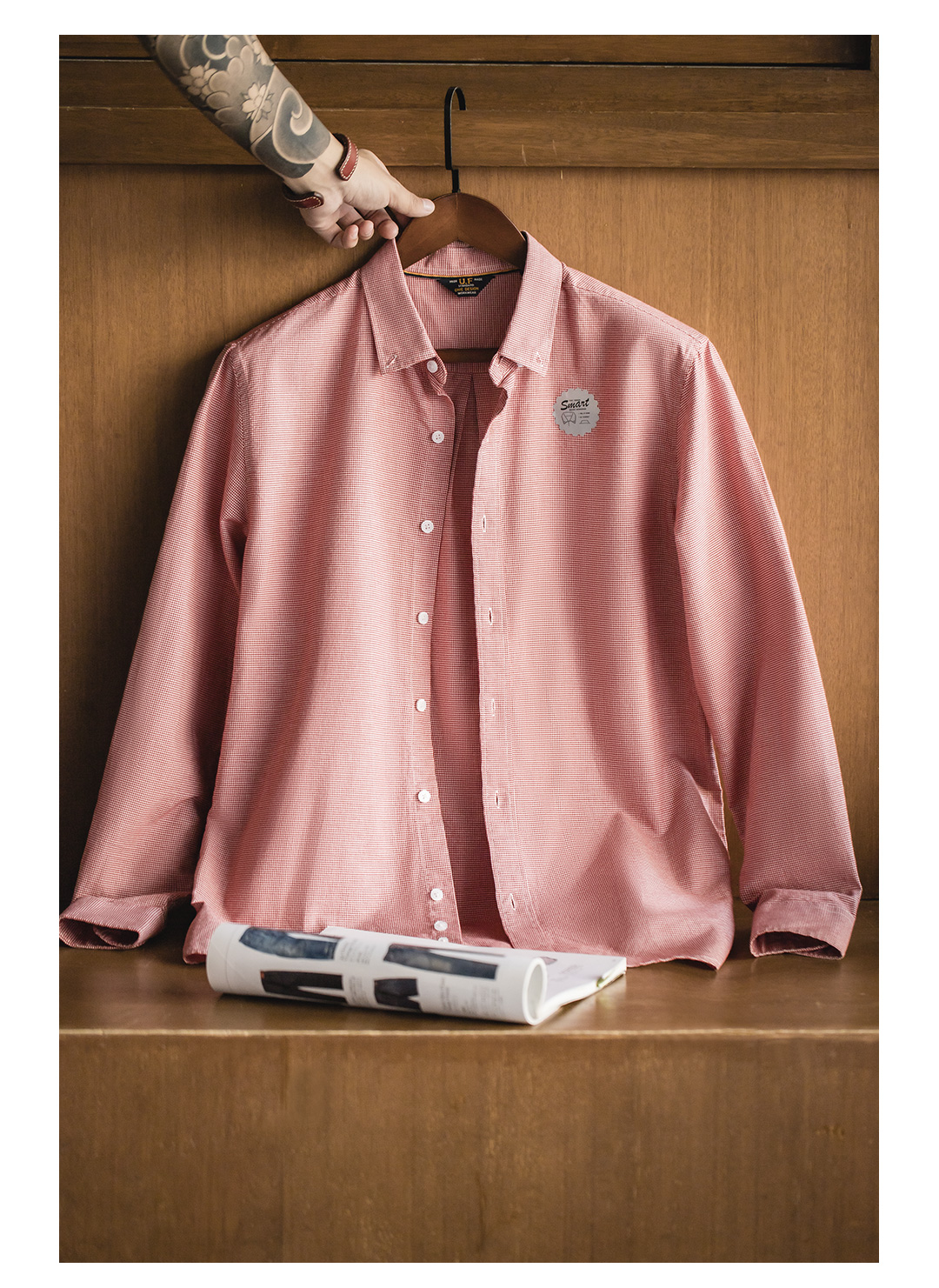 马登工装 美式休闲千鸟格衬衫纽扣纯棉通勤商务格子长袖衬衣男秋