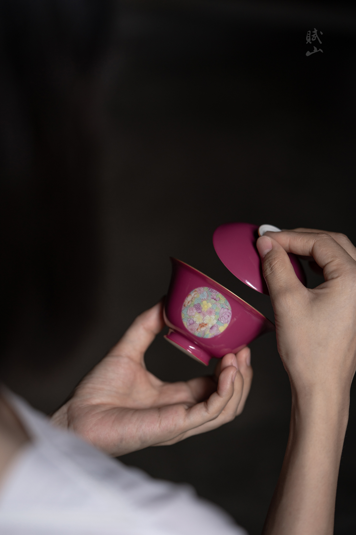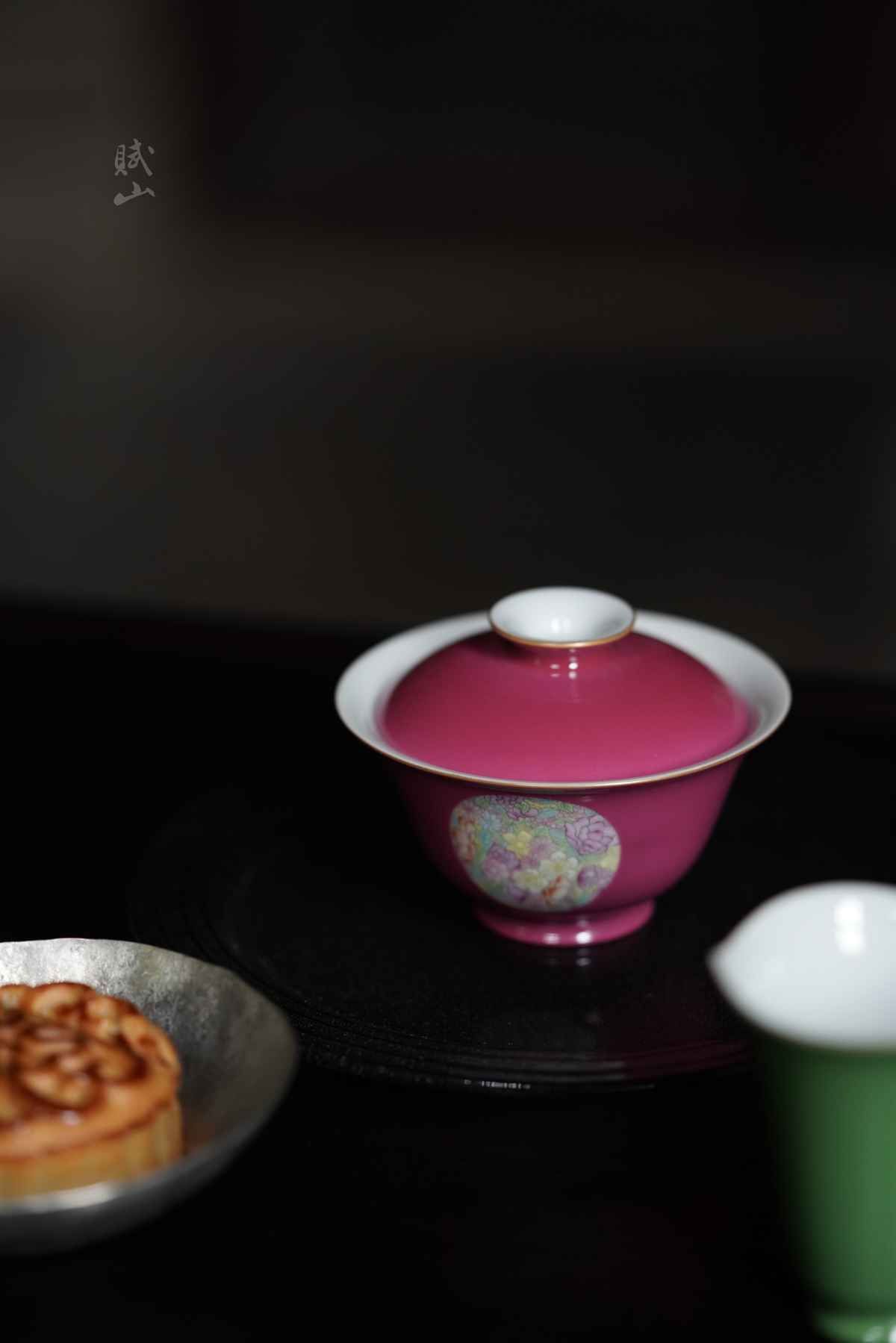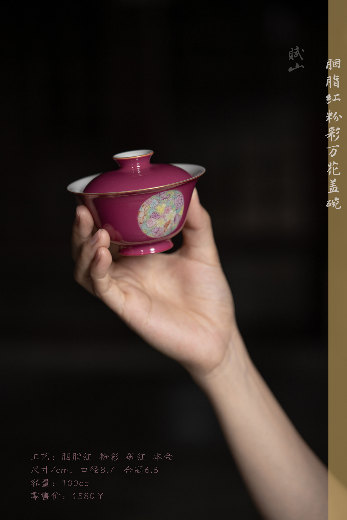 赋山叙 |胭脂红粉彩万花盖碗