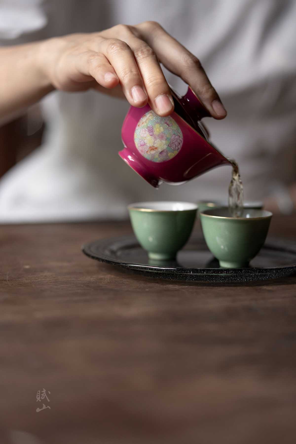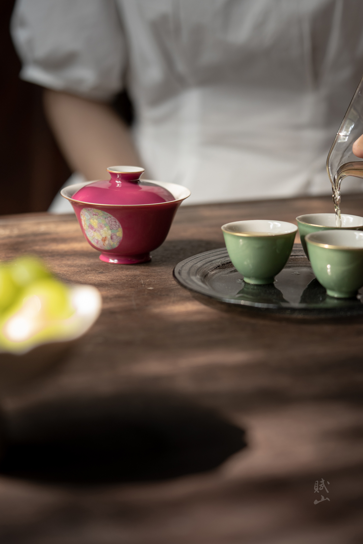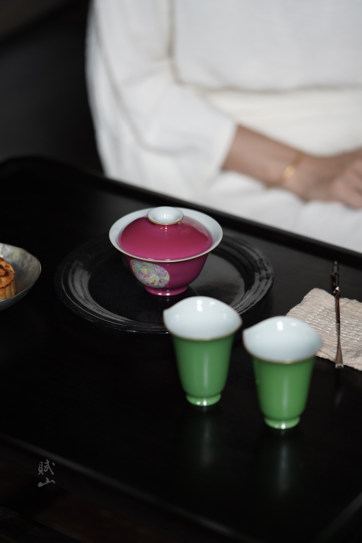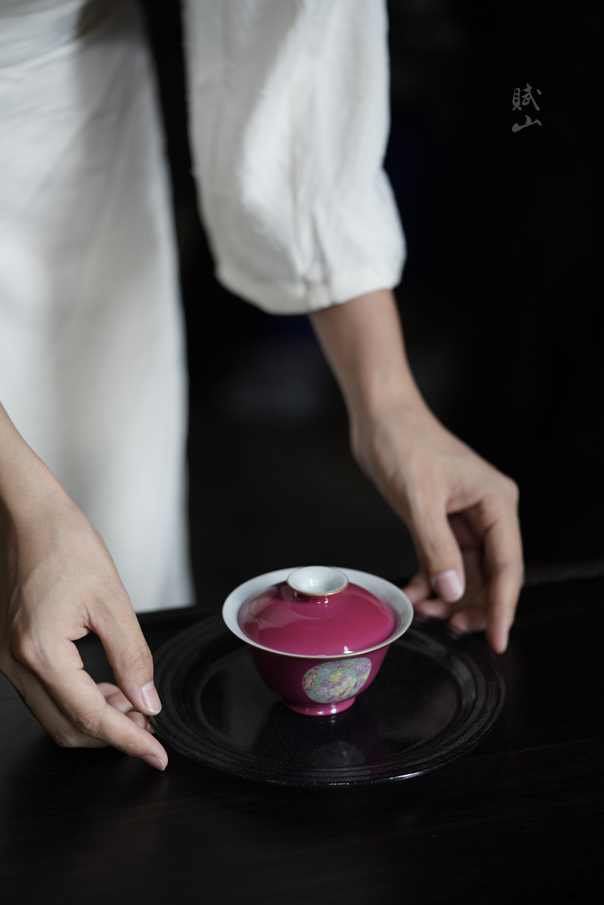 赋山叙 |胭脂红粉彩万花盖碗