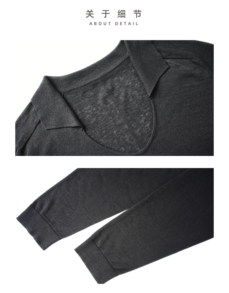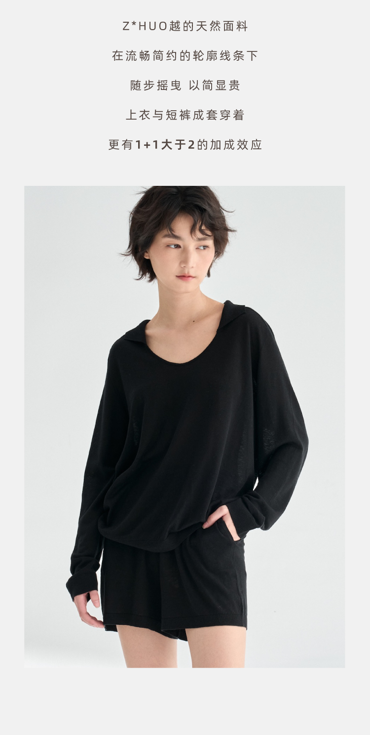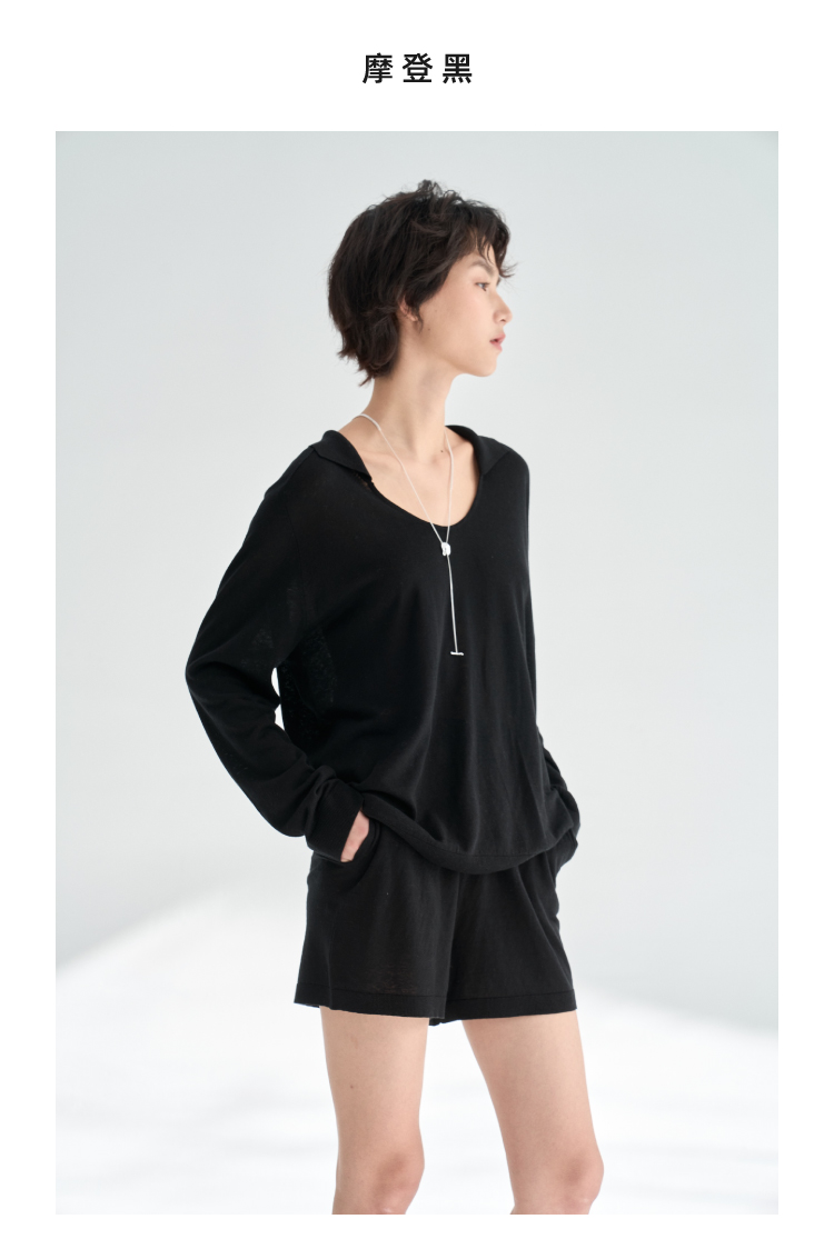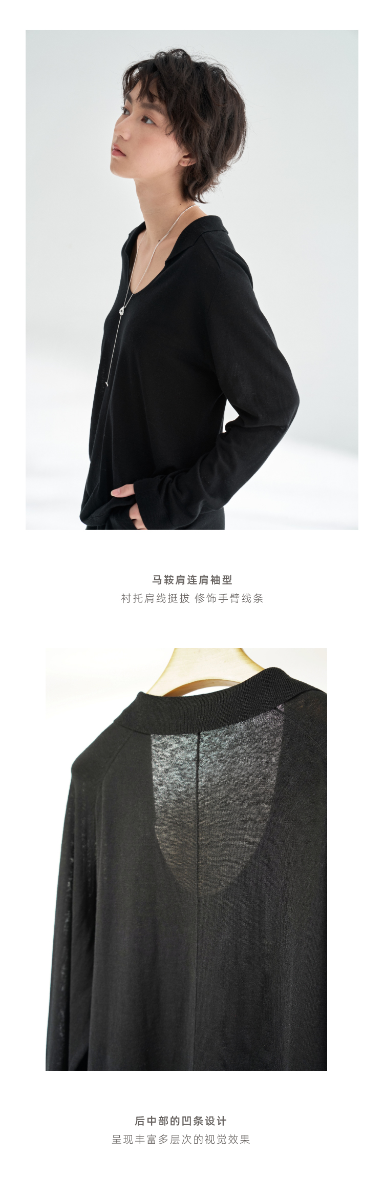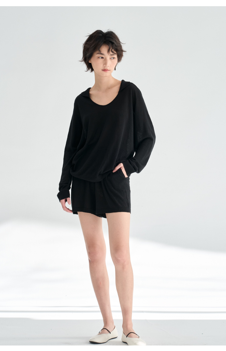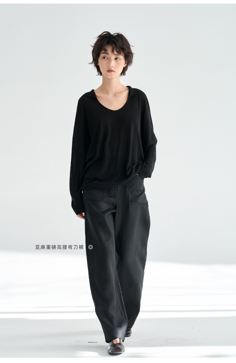 托斯卡纳的艳阳·棉麻丝卷边领镂空插肩长袖针织衫