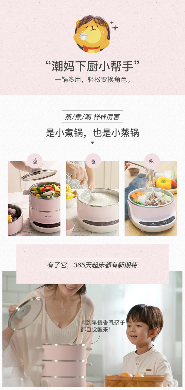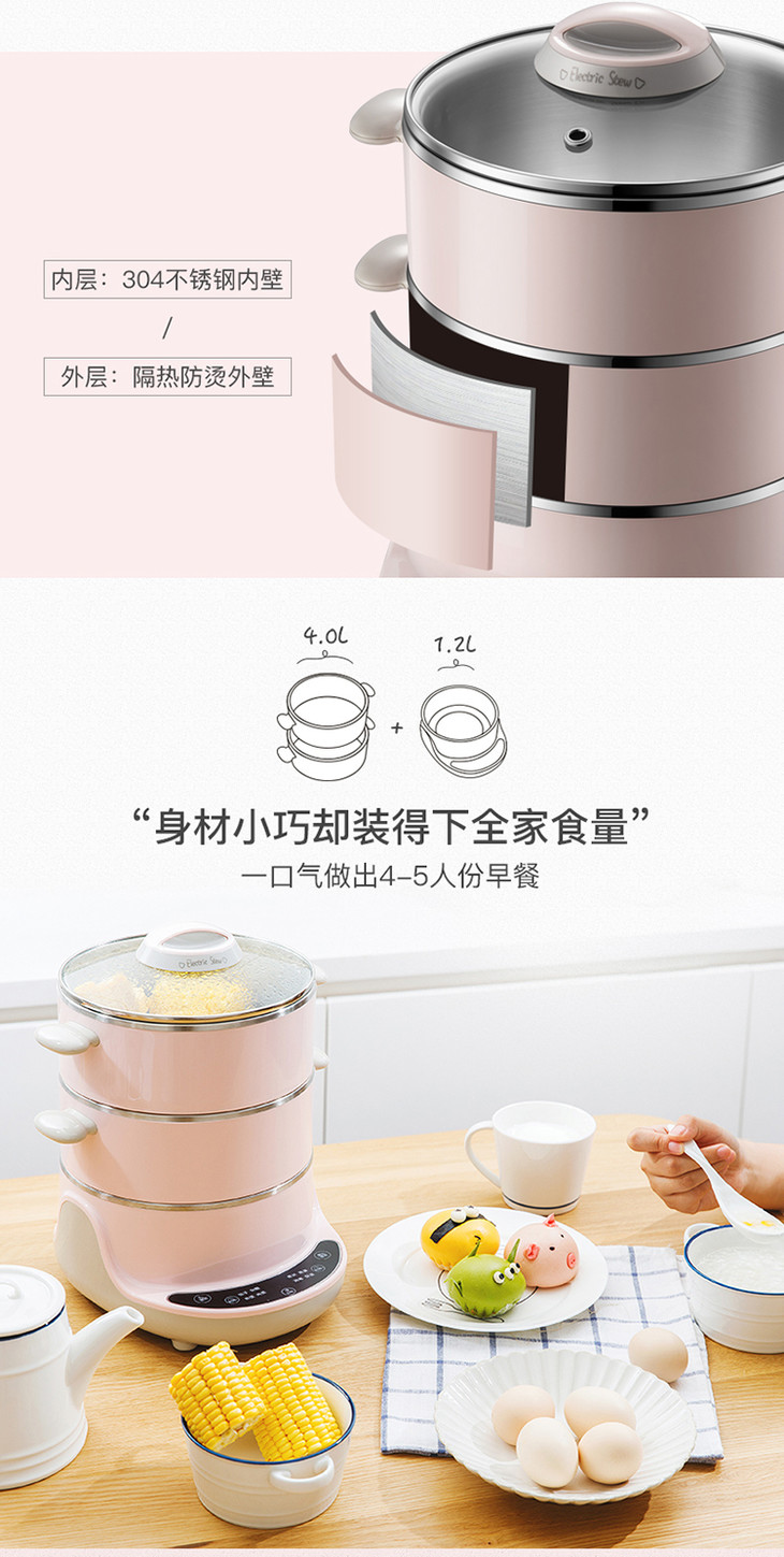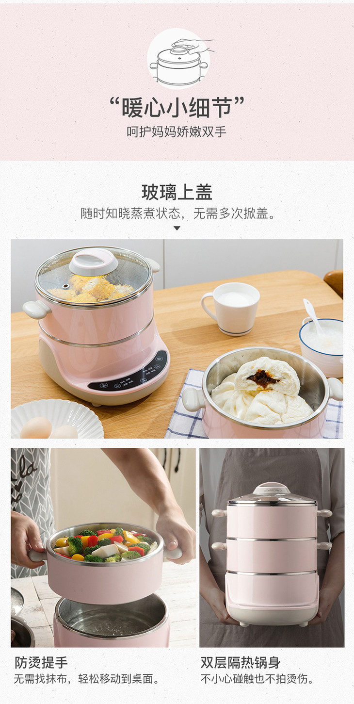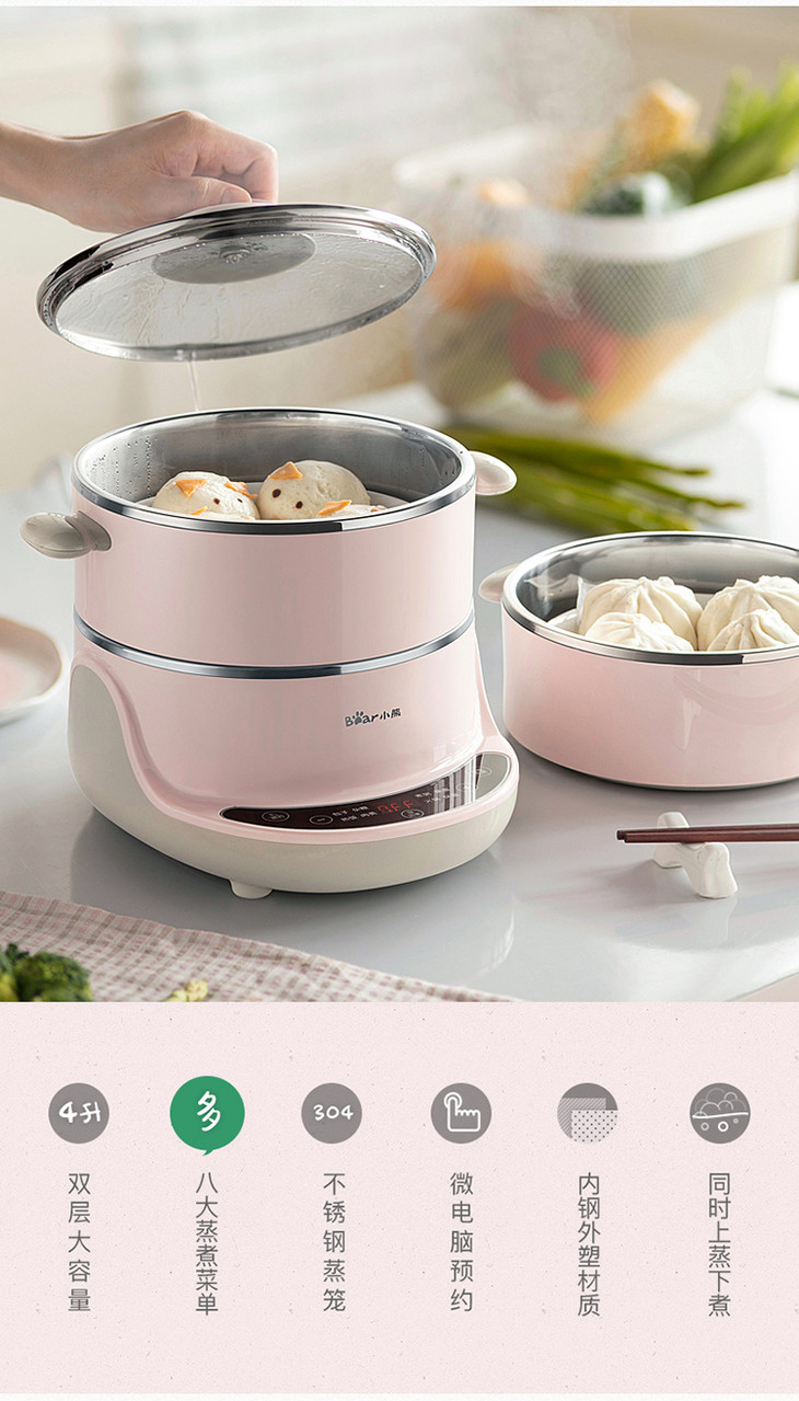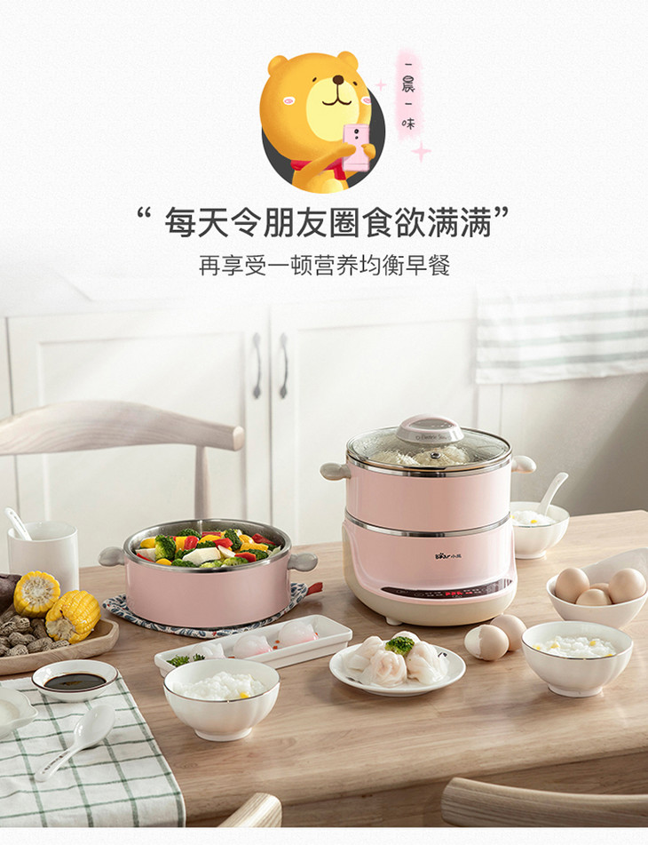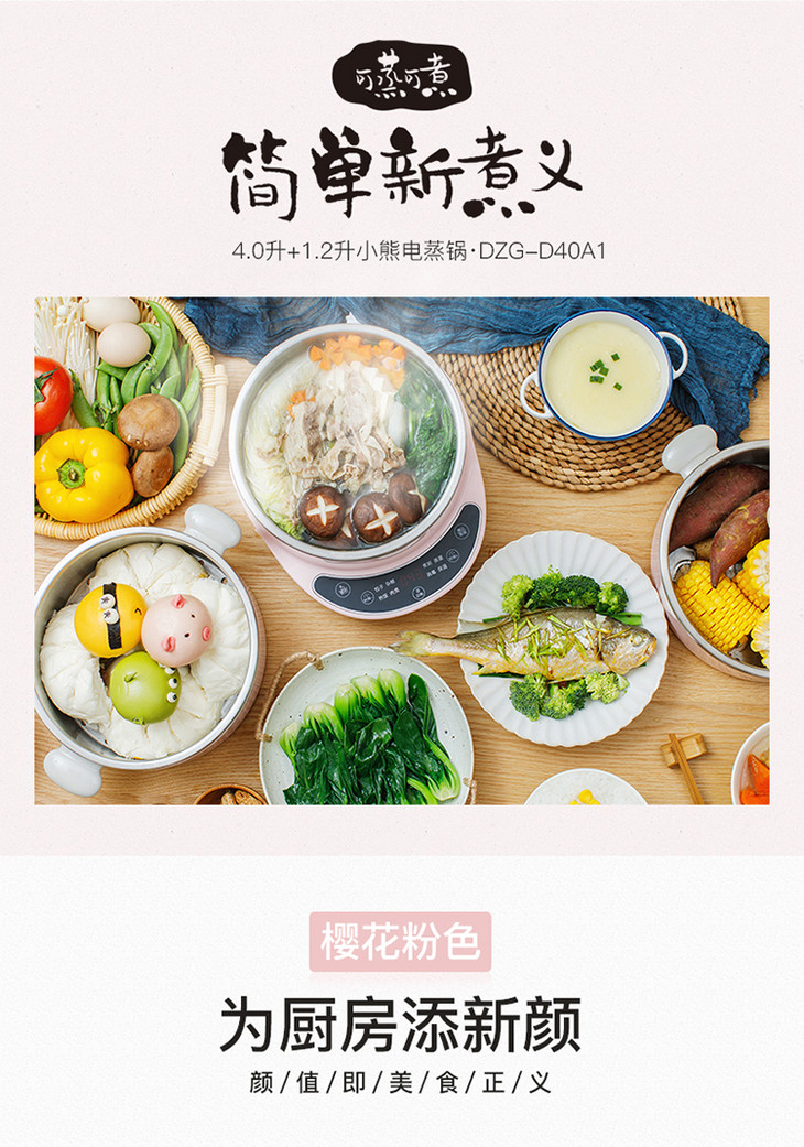 【电蒸锅】小熊电蒸锅不锈钢双层多功能电热锅蒸煮两用煮蛋器 DZG-D40A1