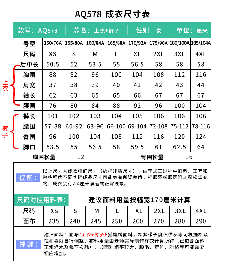 裁缝学苑AQ578立领小蛮腰绒感套装纸样女装摇粒绒外套卫裤两件套服装打板