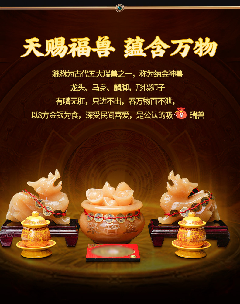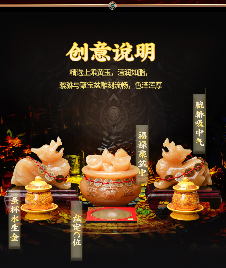 【祈愿吉品】黄玉聚宝盆摆件吉祥物貔貅客厅生意事业开业送礼