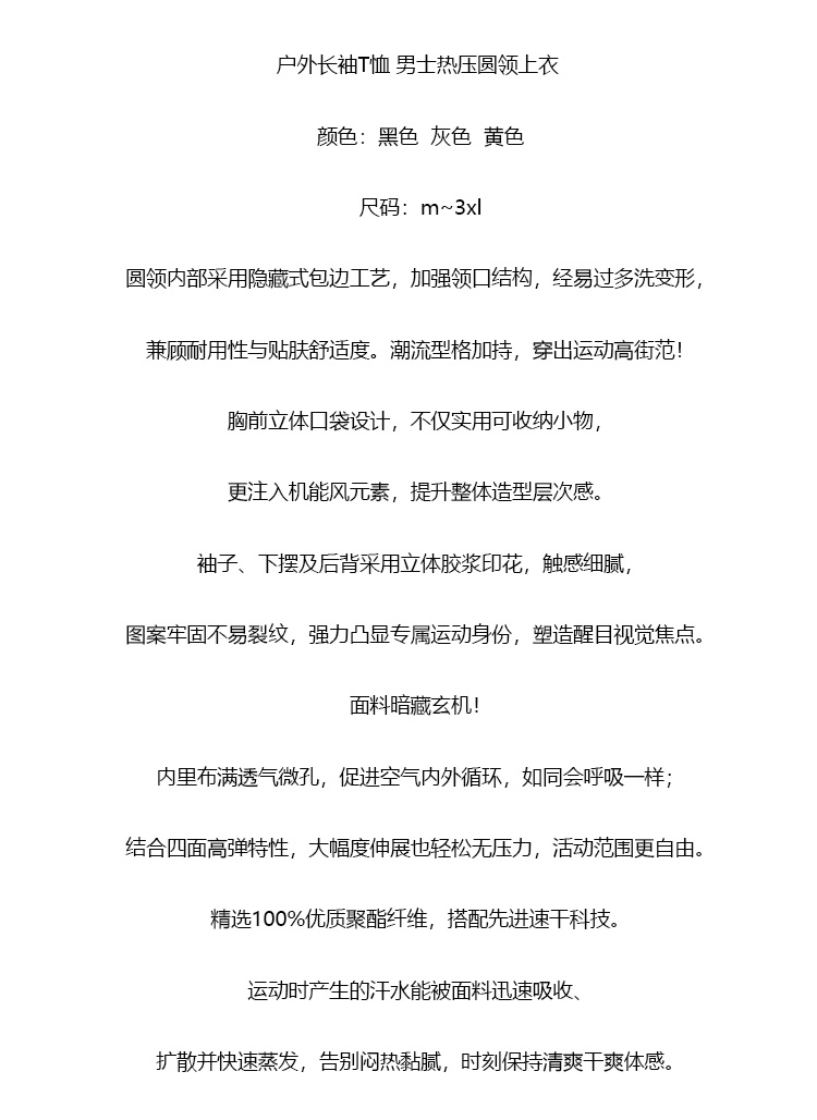 【ss1】男子户外休闲热压圆领长袖T恤!!