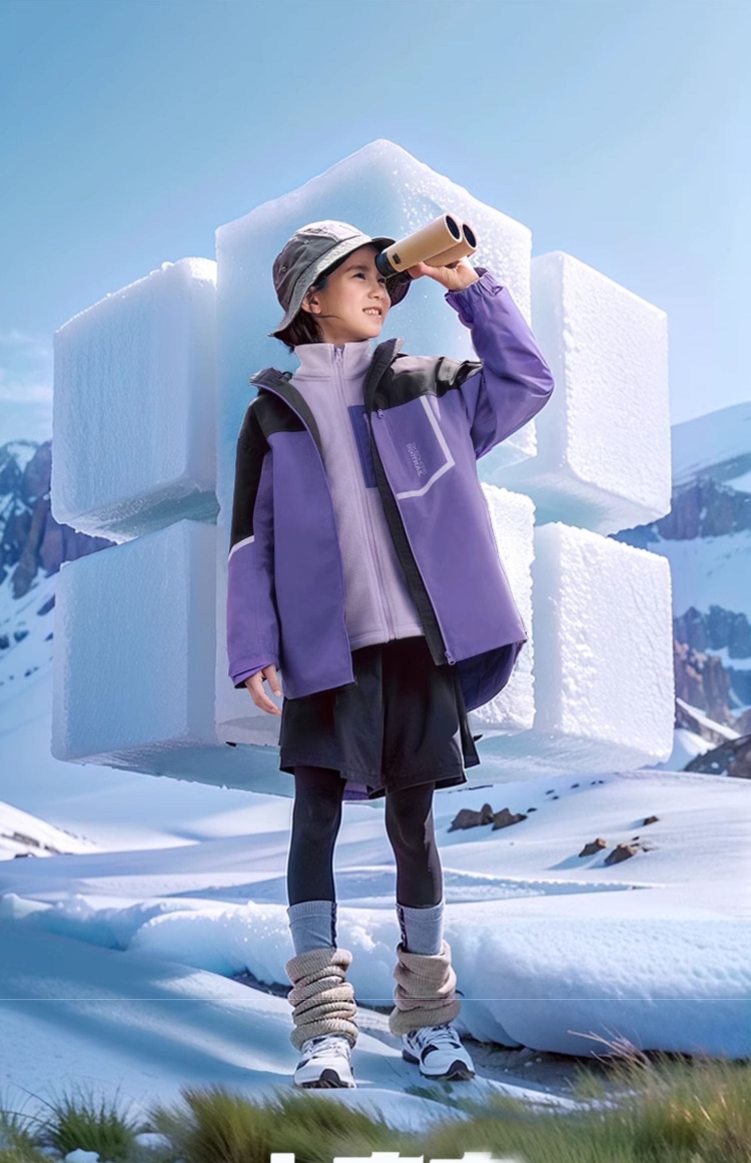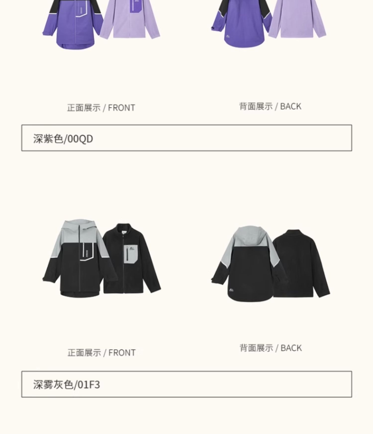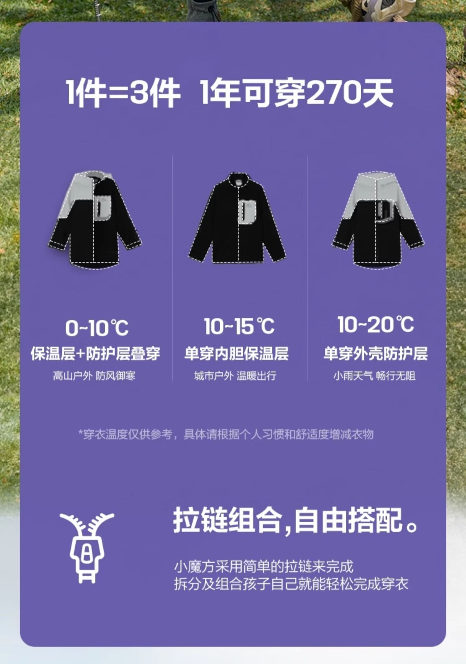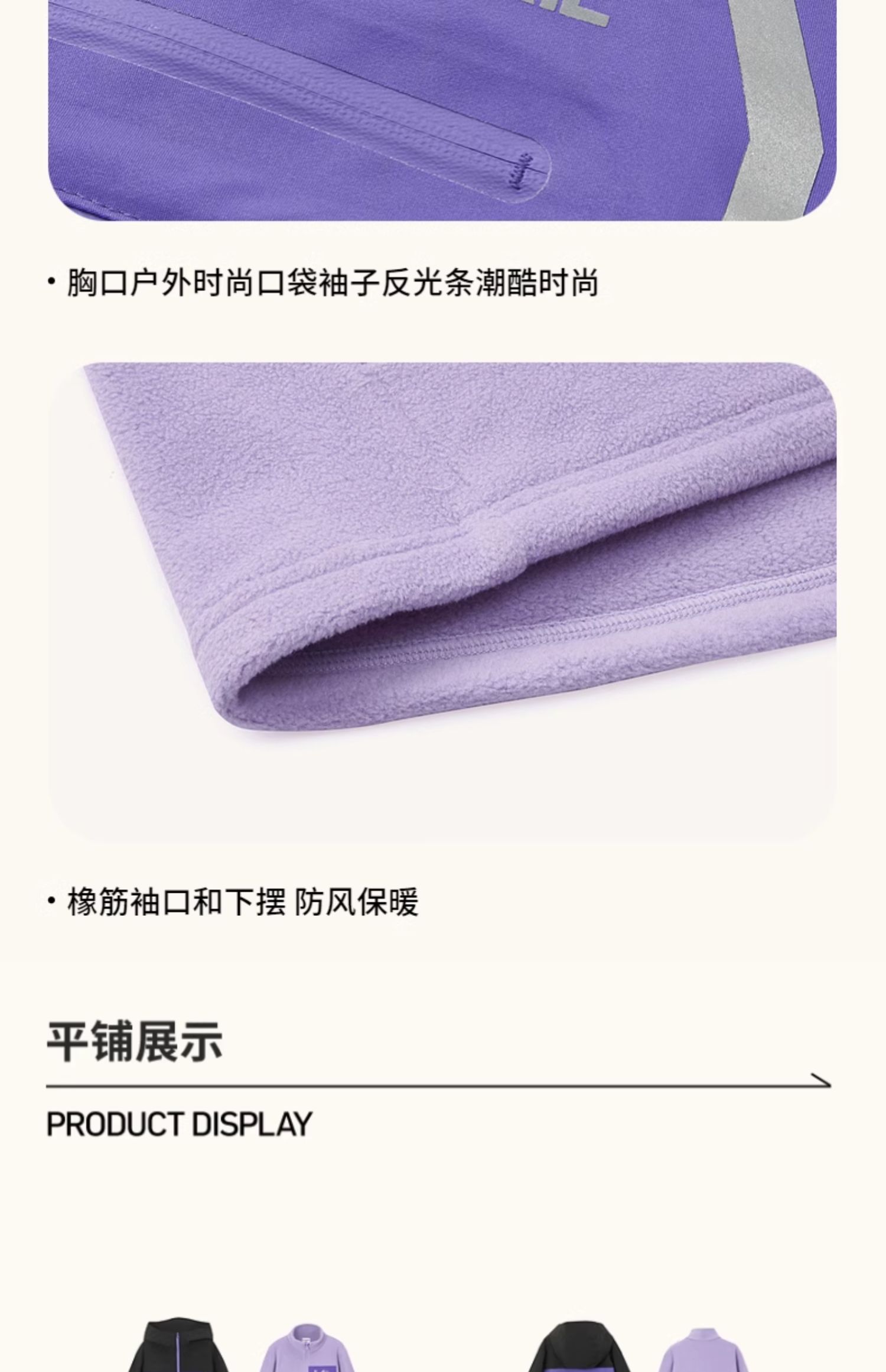 Skechers斯凯奇小魔方冲锋衣男女童新款三合一防水防风摇粒绒外套P424K082