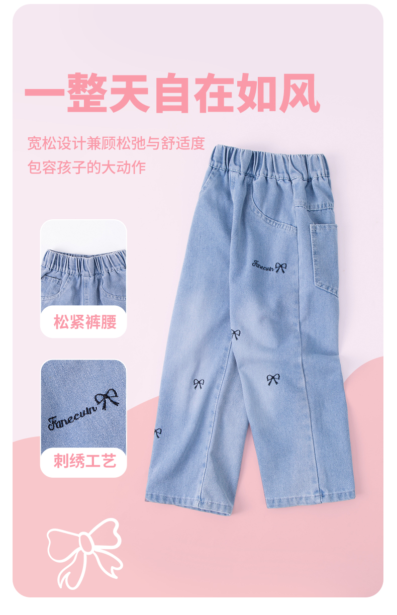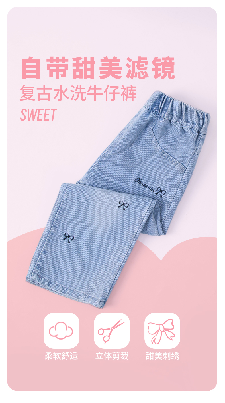 贝贝怡【轻薄软牛仔裤】25春夏新款女童牛仔长裤百搭运动休闲直筒长裤ZB1EK043