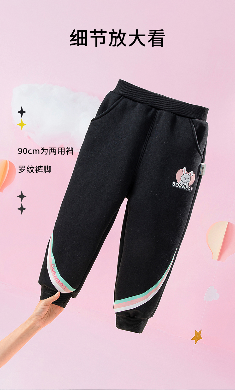 贝贝怡童装儿童裤子秋冬季加绒保暖女童休闲长裤外穿新款冬装