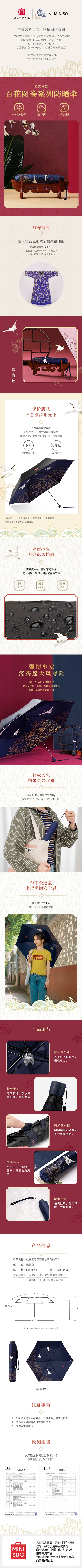 MINISO故宫宫廷百花图卷系列防晒伞藏青色53*6k