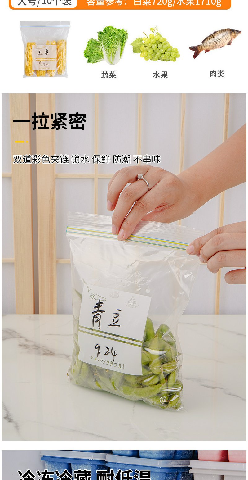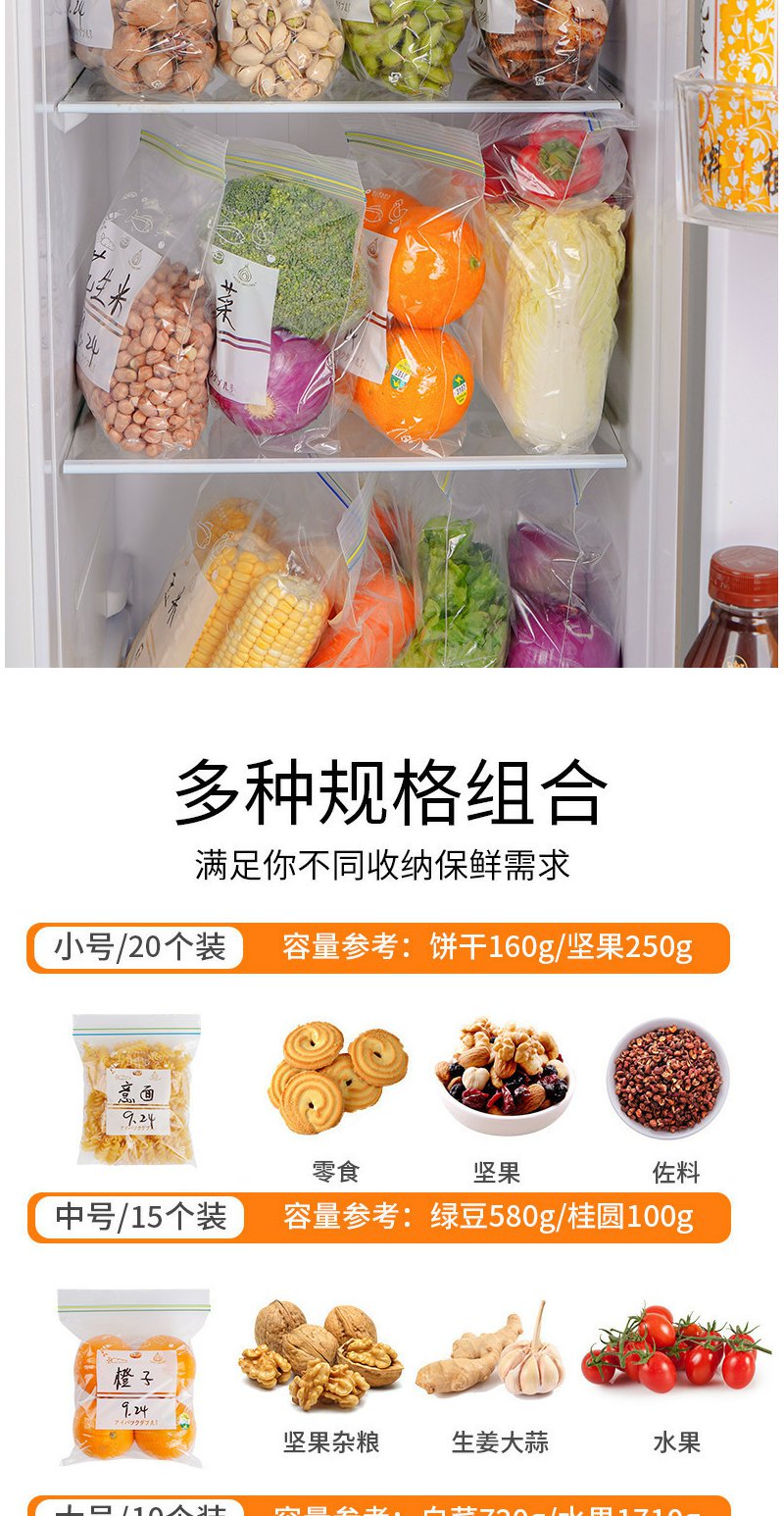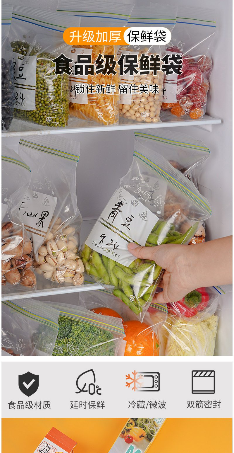 密封袋食品级保鲜袋自封袋塑封加厚家用冷冻专用多功能冰箱收纳袋/盒