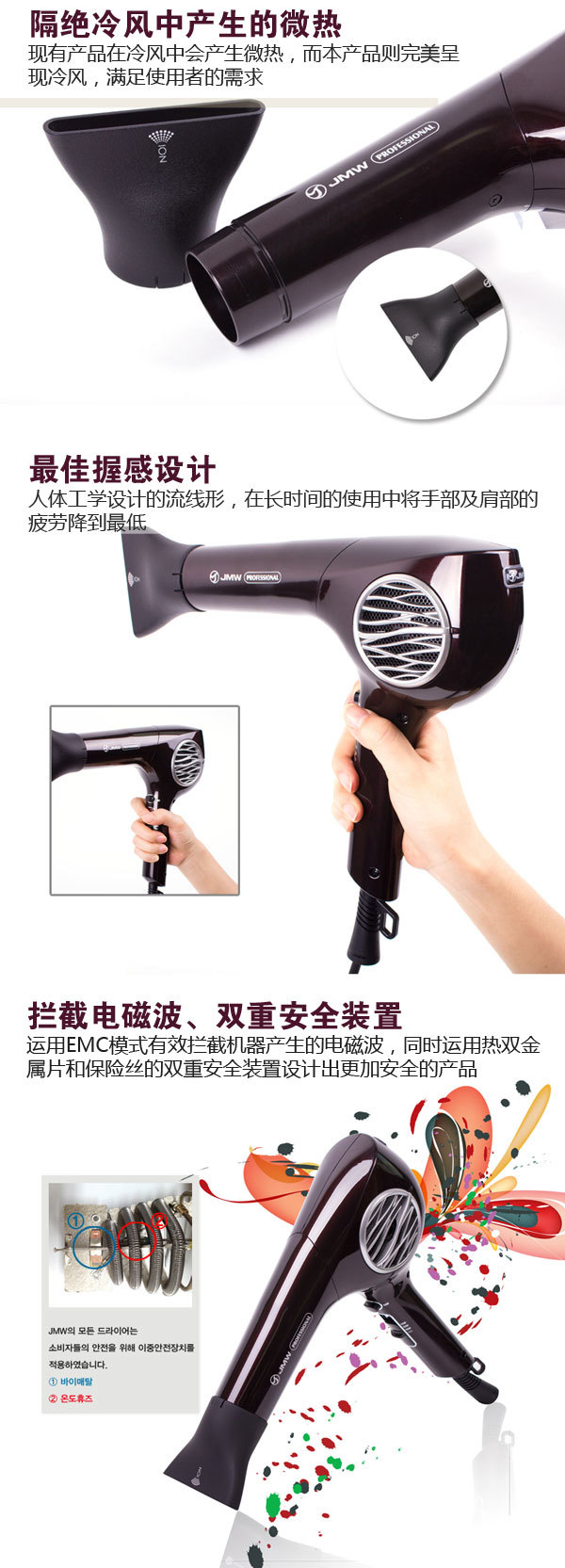 运用EMC模式有效拦截机器产生的电磁波,同时运用热双金属片和保险丝的双重安全装置设计出更加安全的产品。