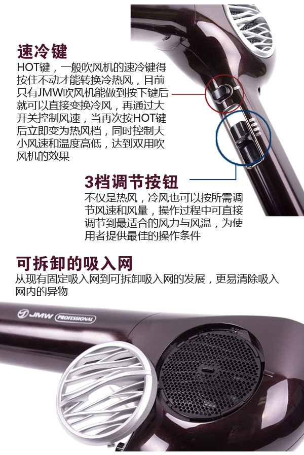 不仅是热风,冷风也可以按所需调节风速和风量,操作过程中可直接调节到最适合的风力与风温,为使用者提供最佳的操作条件。
