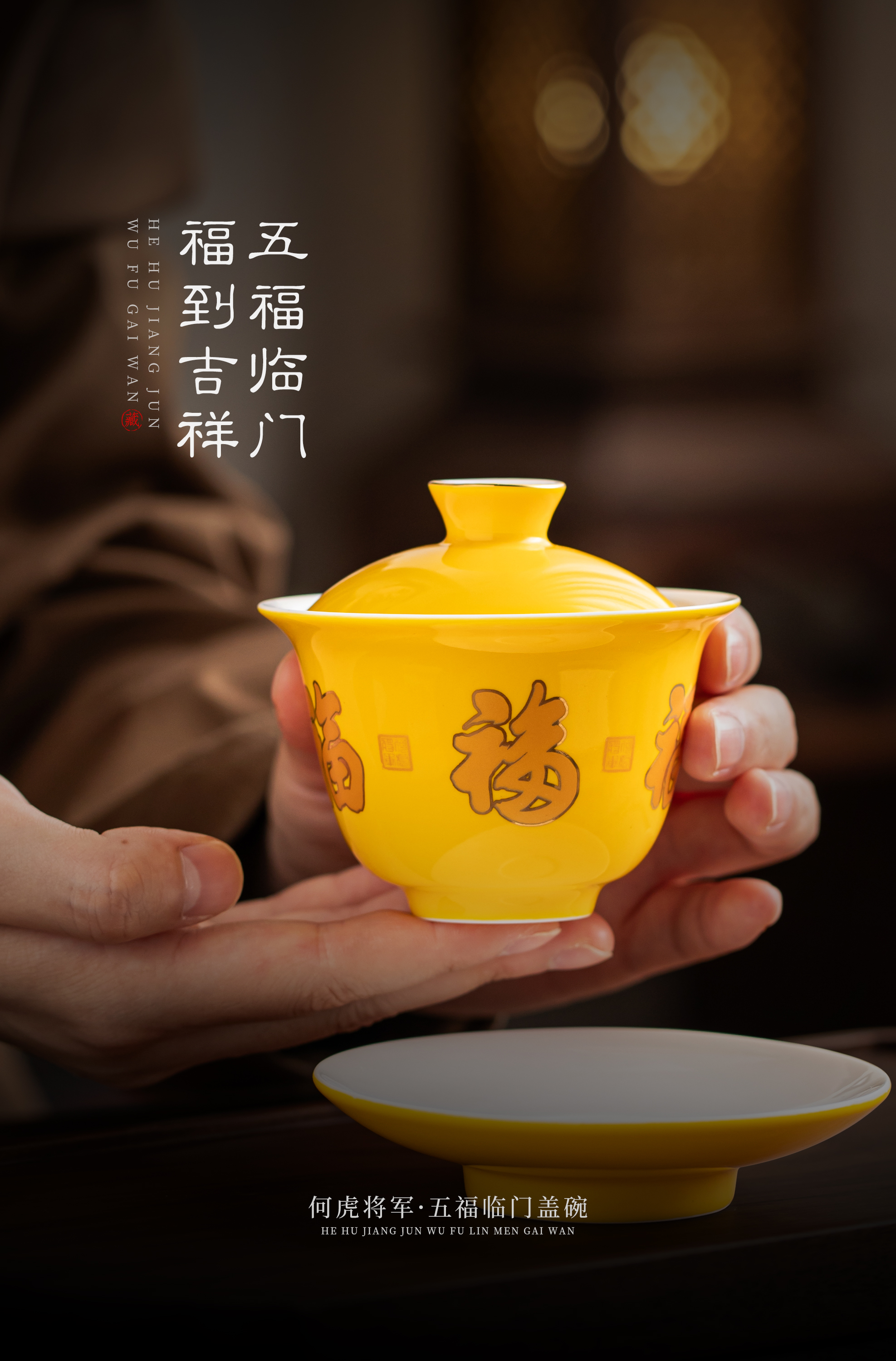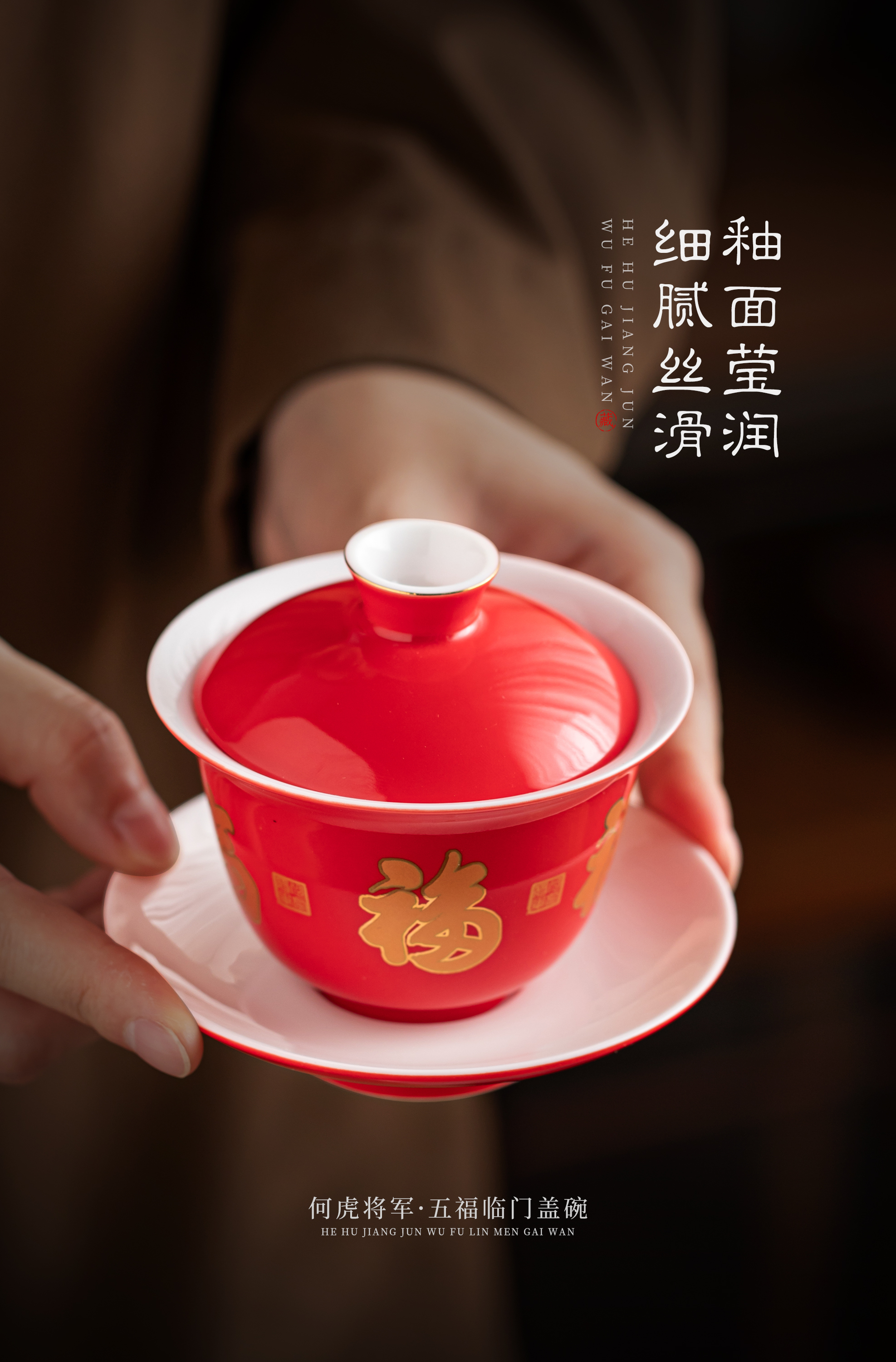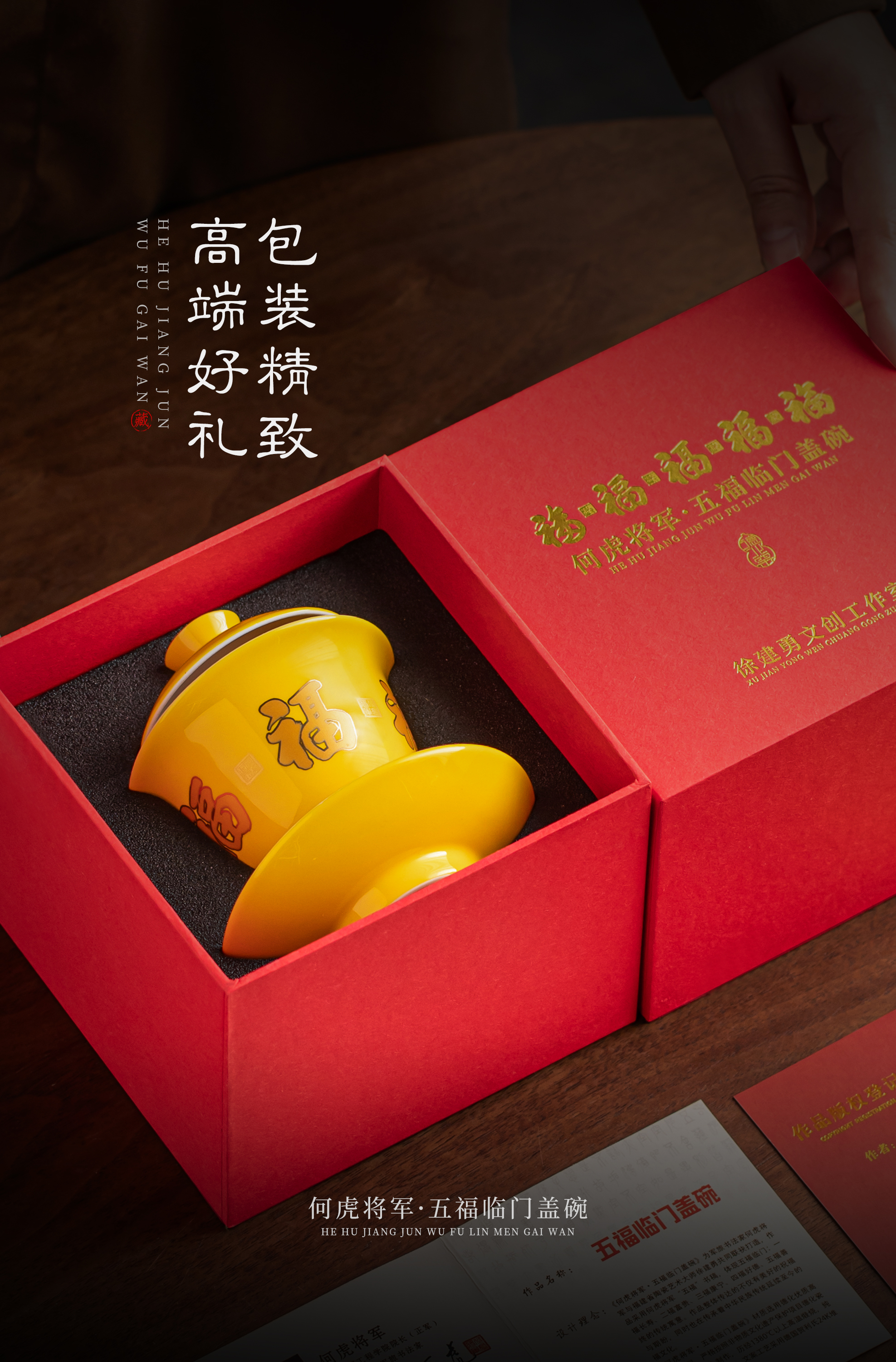 【五福临门盖碗】釉面莹润 细腻丝滑,精美包装 gao端佳礼