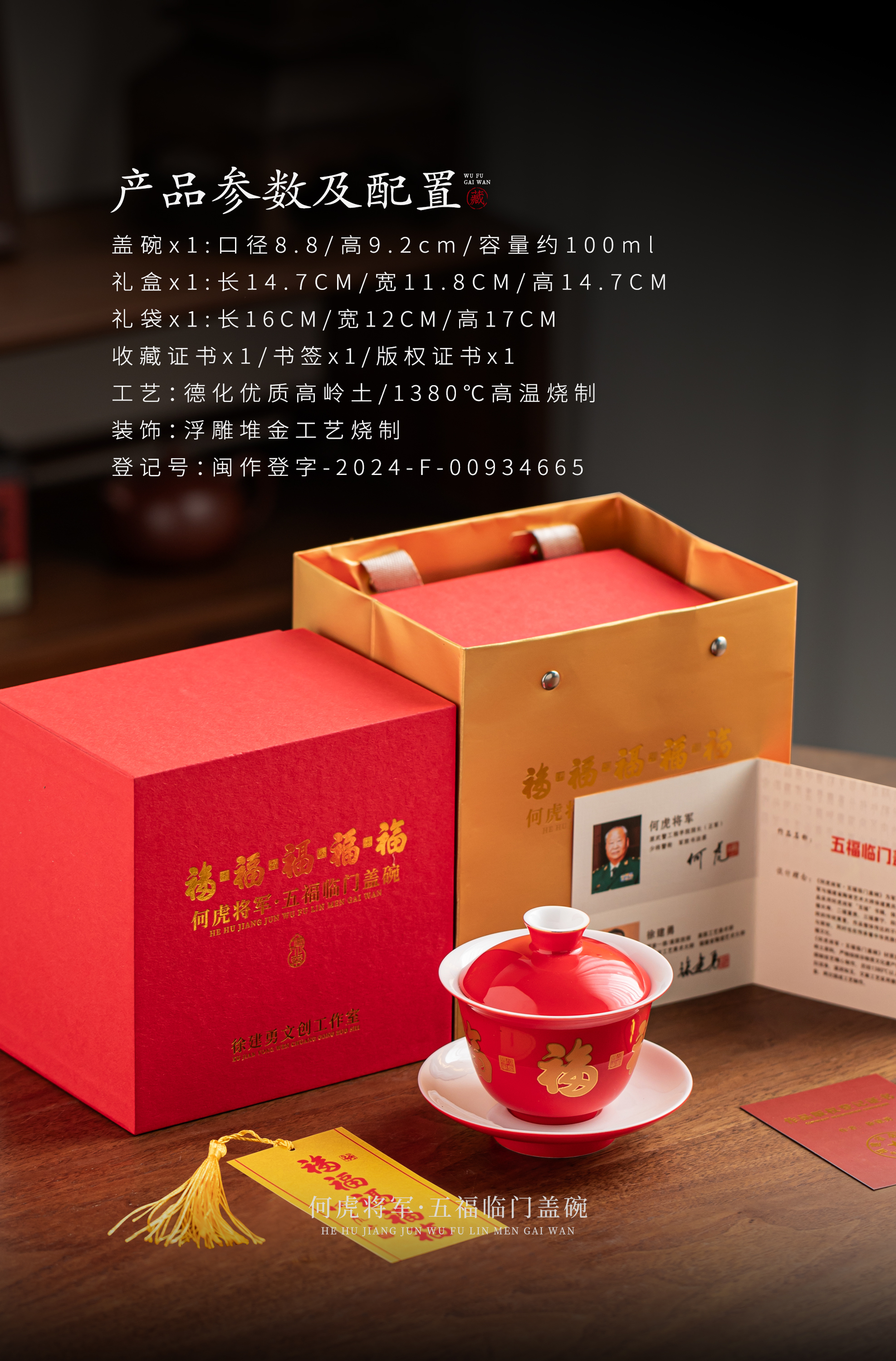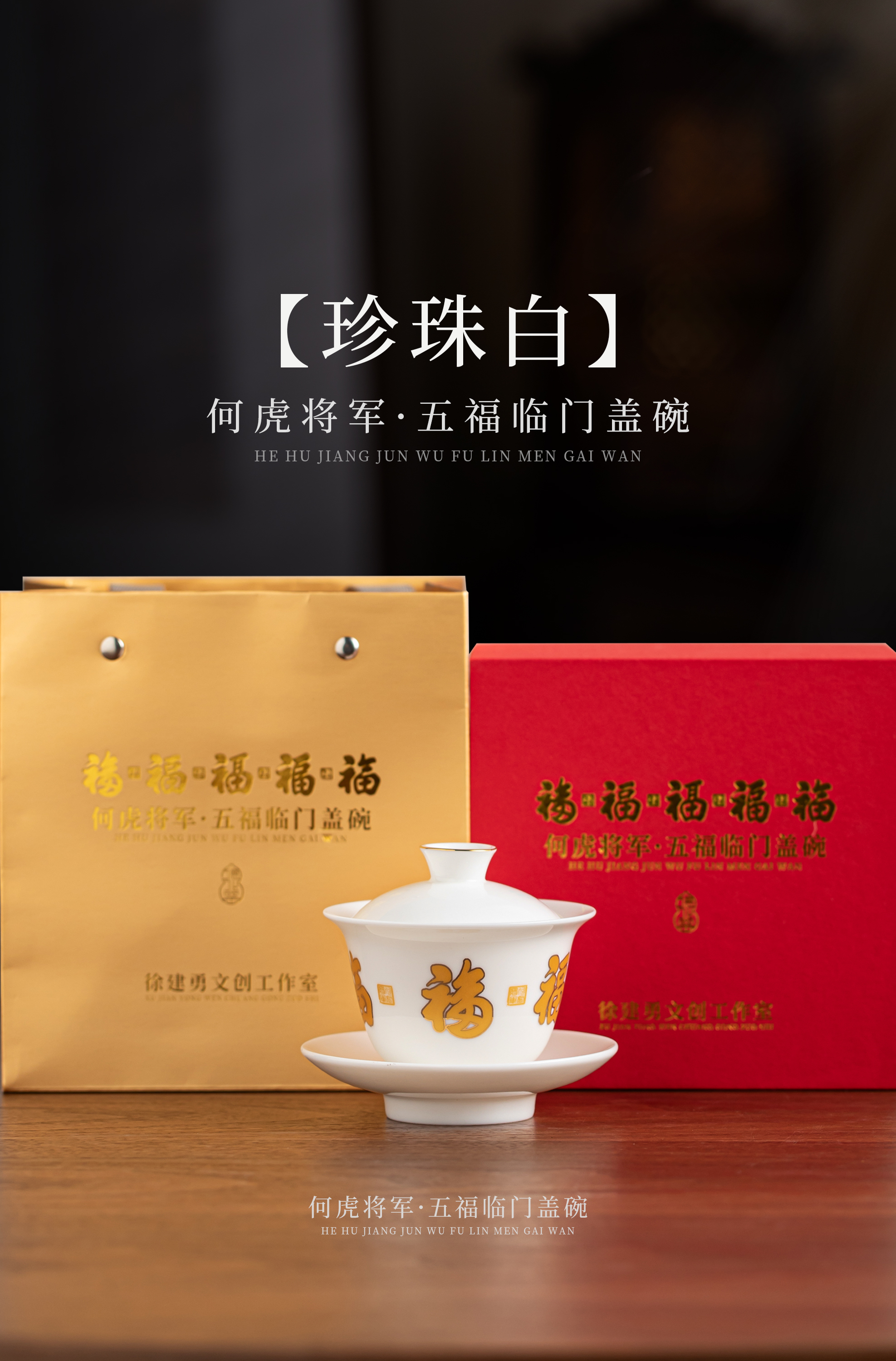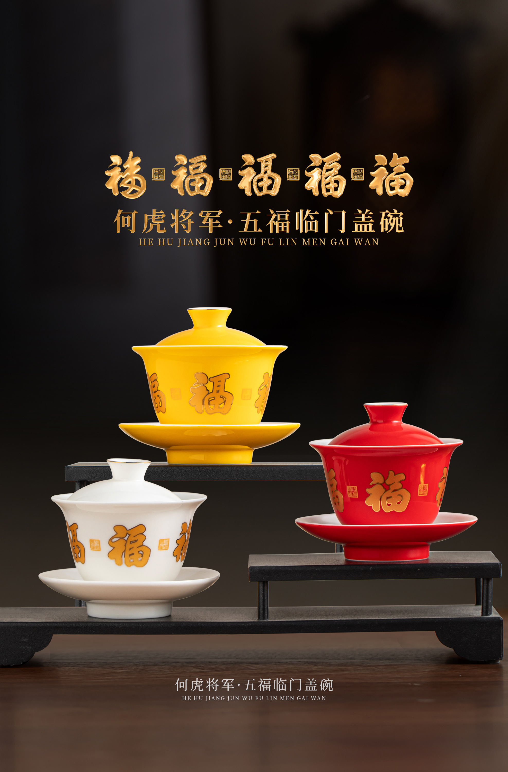 【五福临门盖碗】釉面莹润 细腻丝滑,精美包装 gao端佳礼