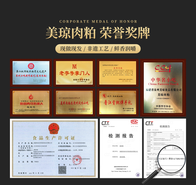 我选的这块猪油渣,是来自福建泉州一家跟猪油渣打了交道长达160多年的品牌——美琼。2016年,美琼猪油渣的制作工艺被列入晋江市第五批非物质文化遗产名录,先后荣获“晋江伴手礼”、“泉州伴手礼”、“福建名小吃”、“中华名小吃”等荣誉称号,并接受过晋江电视台、中新网等媒体的采访。他家的猪油渣坚守传统的手工制作,不添加任何防腐剂和化学添加物,确实特别好吃!