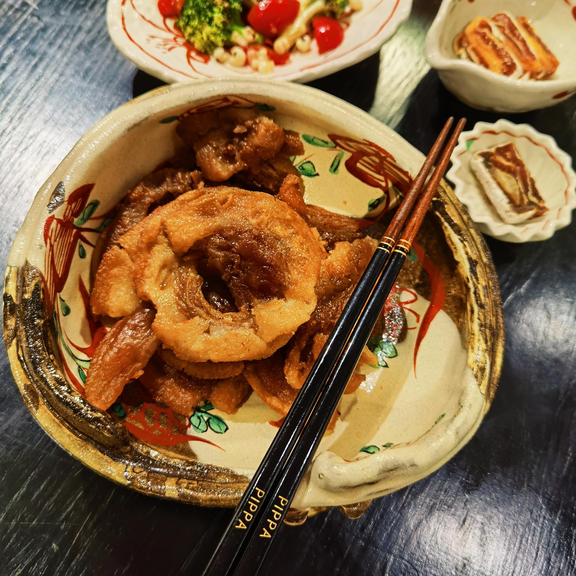 虽然名字叫猪油渣,带着油分,但吃过就知道其实并不油腻。一块好的猪油渣吃起来是瘦而不柴,有嚼劲,酥脆有味的。大家收到会是一大块饼状,吃的时候就掰几块下来。我是真的很怀念小时候吃过那种现炸的,就放进空气炸锅炸了一下,超级香!吃一口马上嘴里就充溢着肥肉的油香和瘦肉的焦香,太美味!
