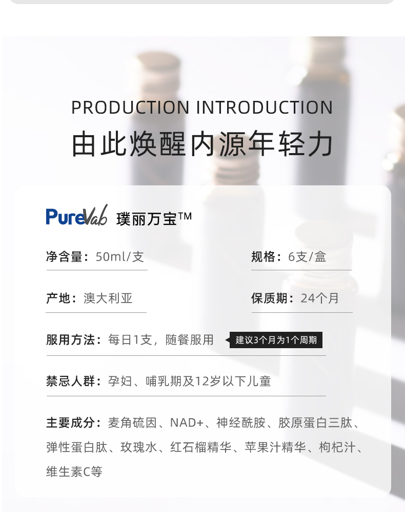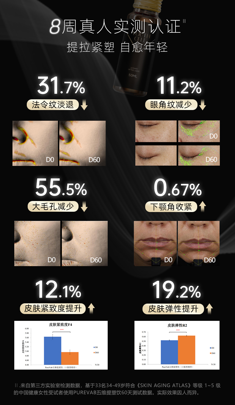 (爱与美专属) 澳大利亚PUREVAB ULTIMATE LIFTING LIQUID五维黑绷带50ML*6支/盒