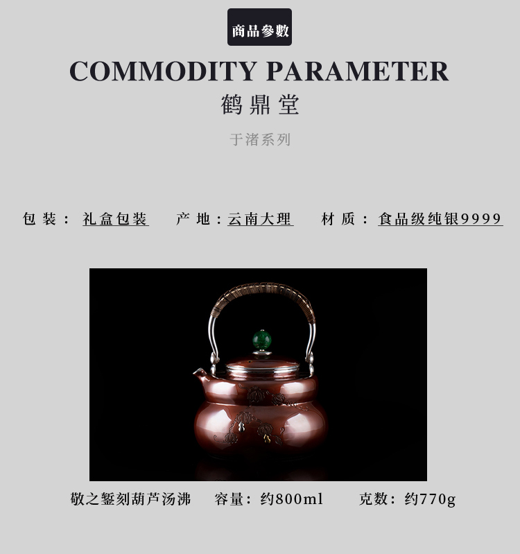 鹤鼎堂银壶于渚系列敬之錾刻葫芦汤沸(缺货)