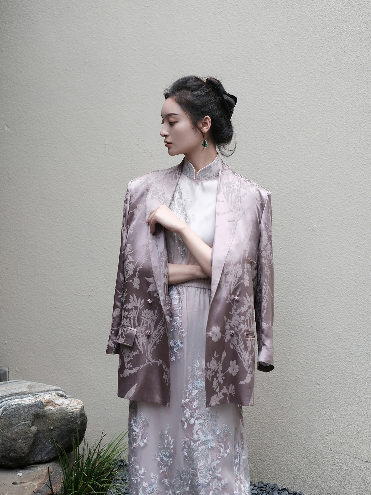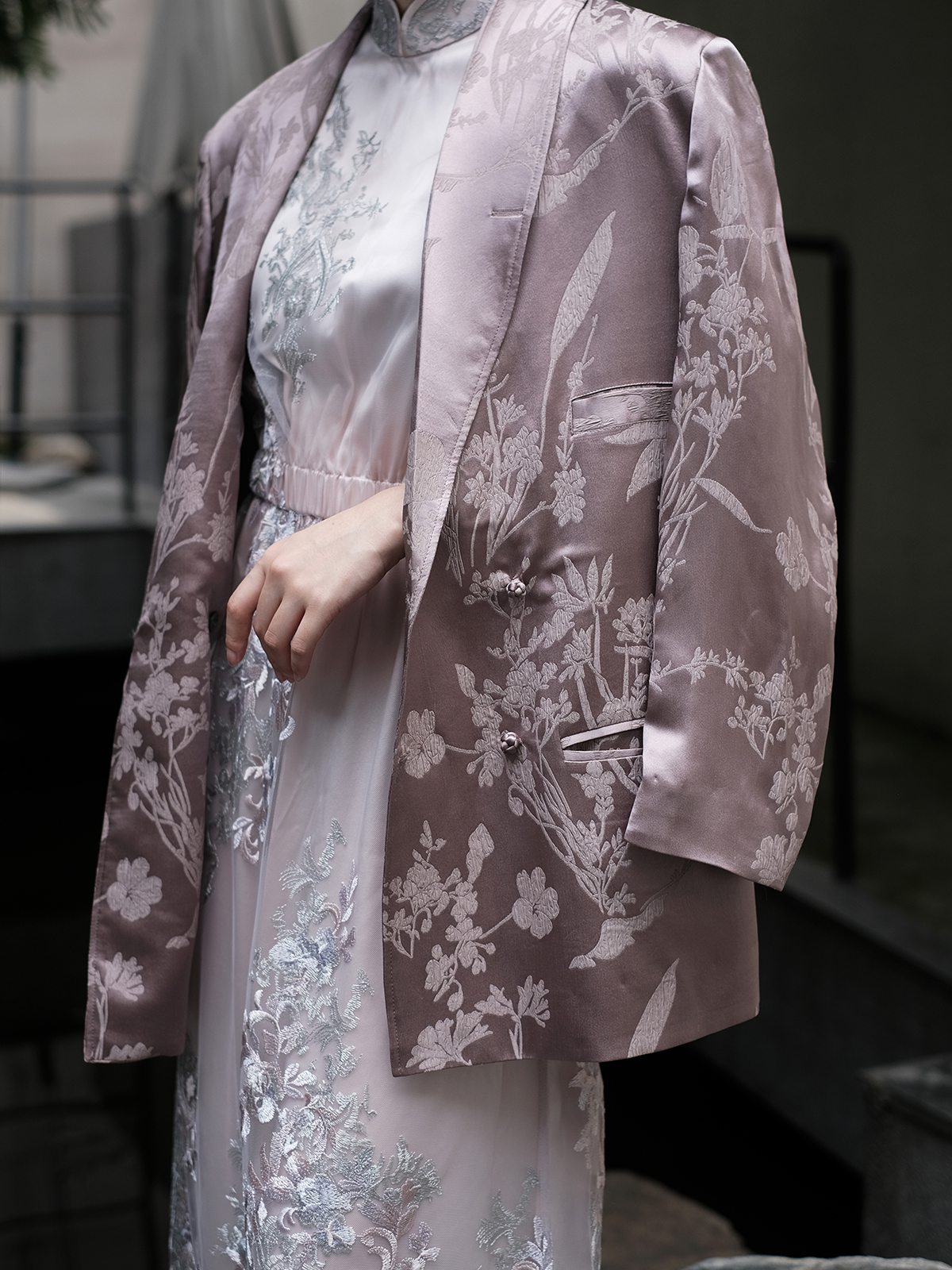 盛唐牡丹 |真丝提花蕙兰纹样西装外套
