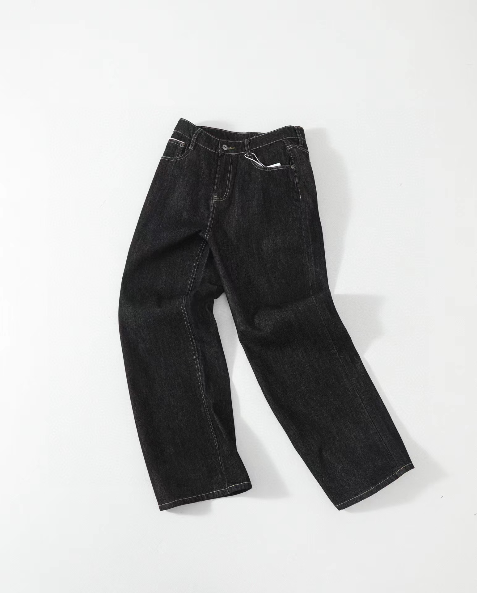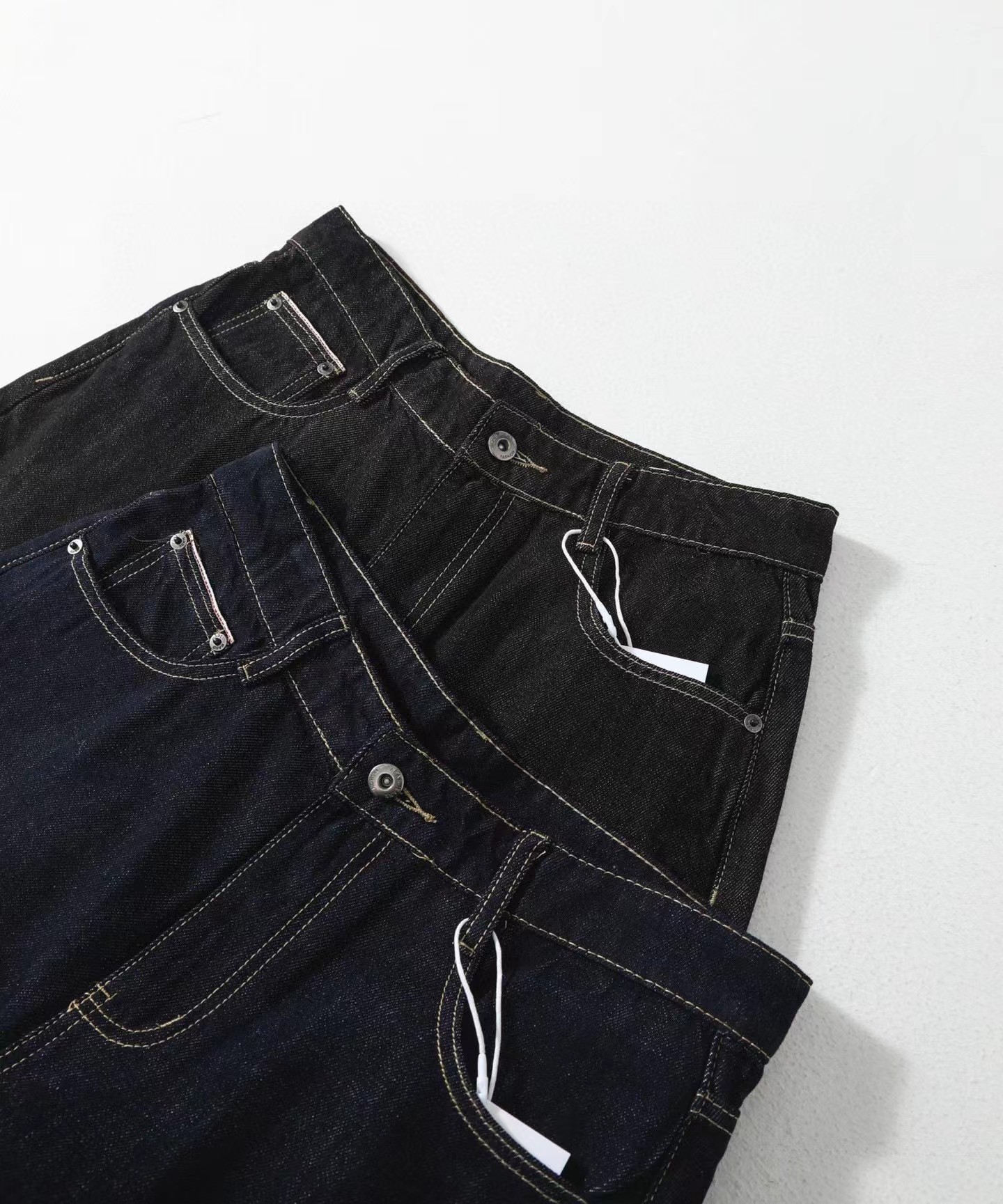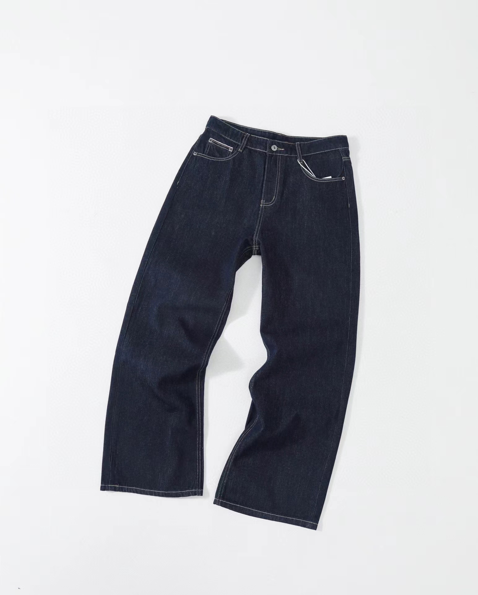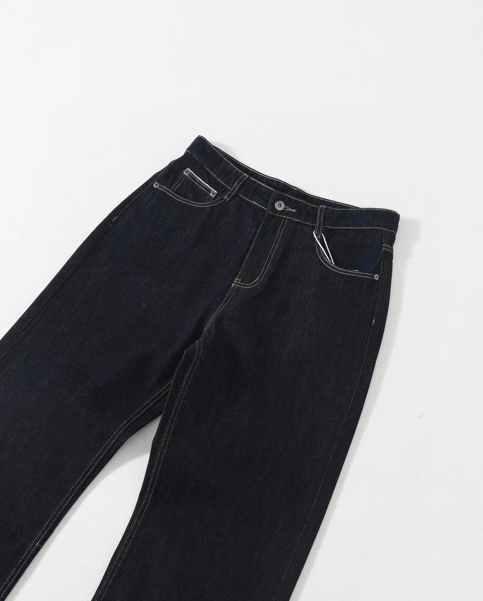 美式赤耳丹宁复古水洗直筒微阔重磅原牛牛仔裤 男女同款!真日本冈山进口13盎司重磅原牛,固色处理后基本不会掉色,斜纹古董织布机织出来更细腻高品质赤耳面料,上身真的挺阔有型,超显气质。此款经过脱浆水洗后,厚实挺阔但是不会特别硬,同时保证了裤子的舒适感和独特的肌理感,撞色走线清晰自然!水洗更赋予了整体的Vintage复古羔级感,随着日常穿着越洗越有味道,非常适合四季日常通勤穿搭。版型方面是2021M版型,直筒微阔的材料设计,形成自然的曲线和堆积感,既能修饰腿部线条,又不失宽松度,百搭各种身材。定制日本进口拉链,五金,潮咖男女少爷公主日常出街搭配b备好货,两色自留,强烈推荐~