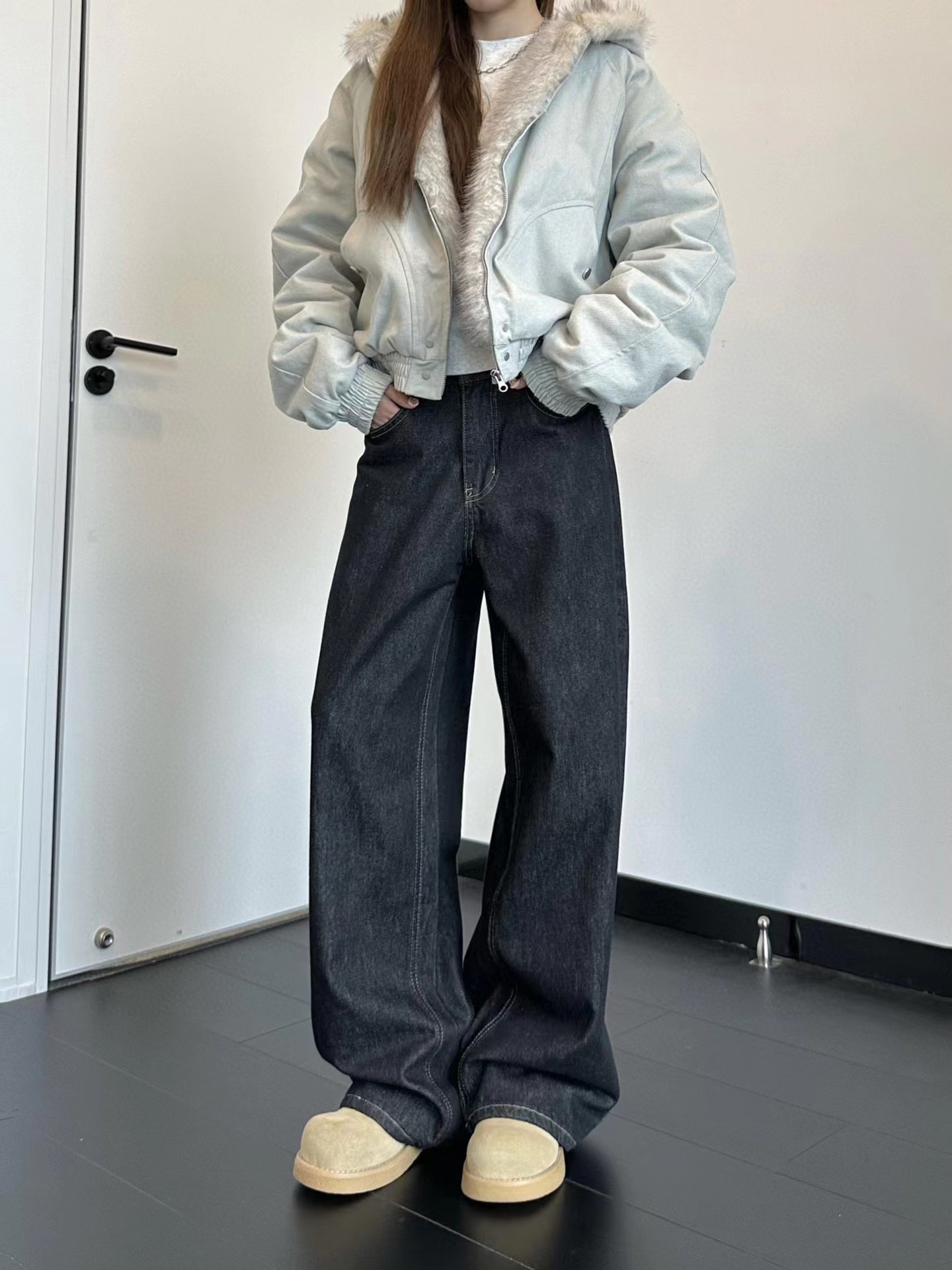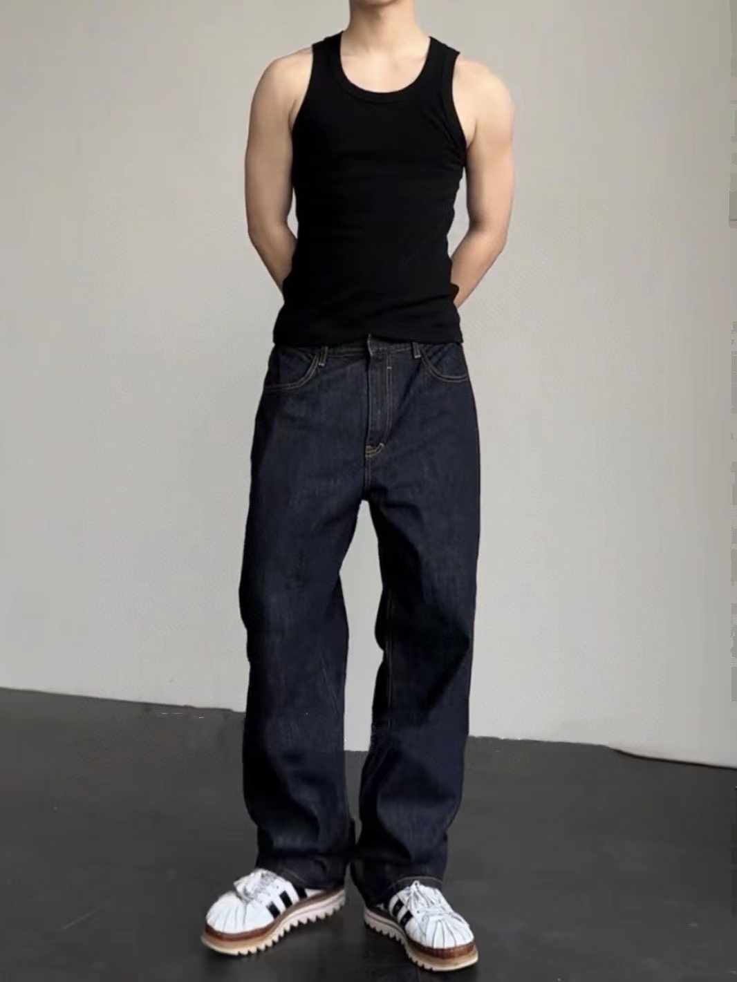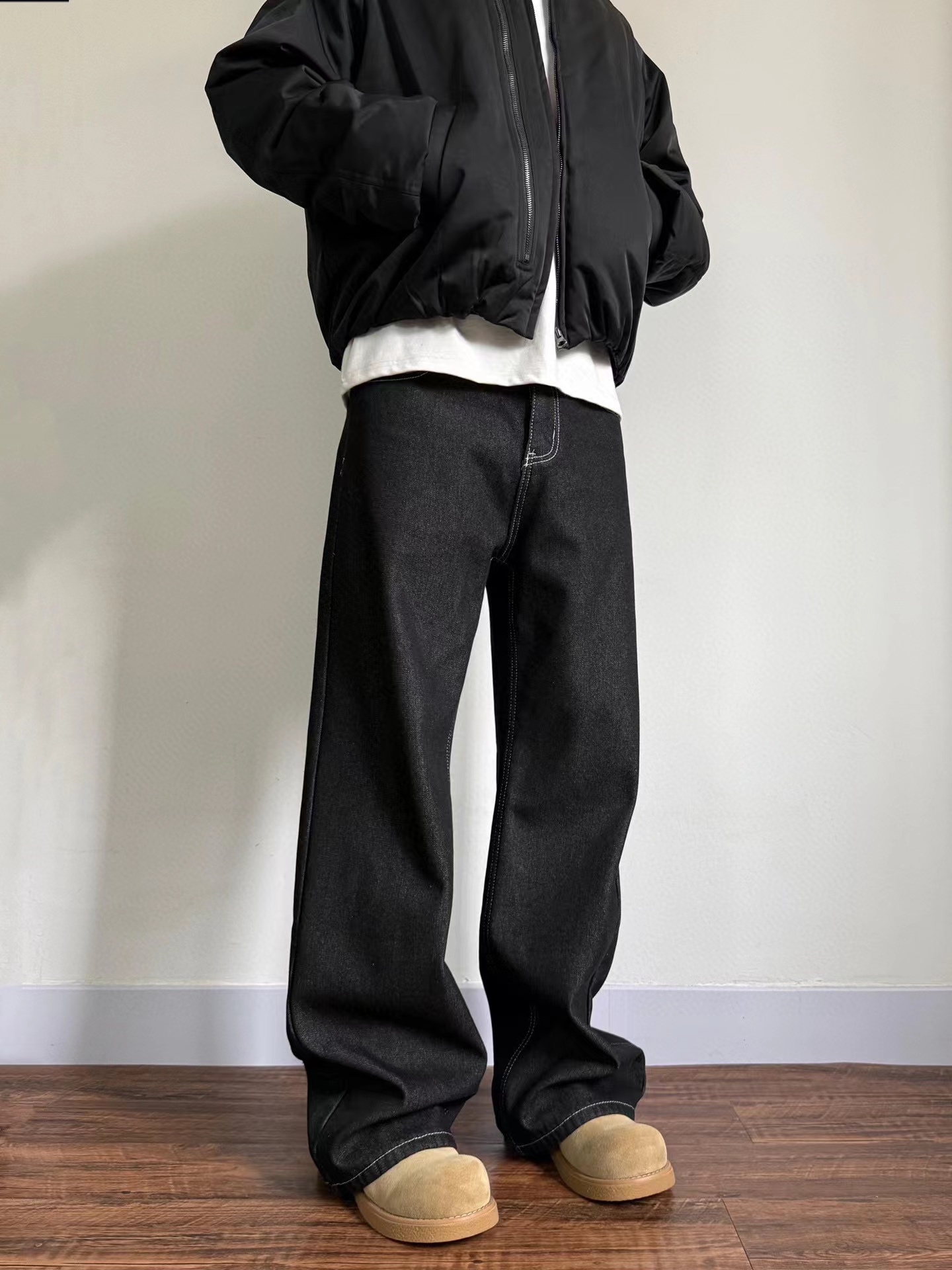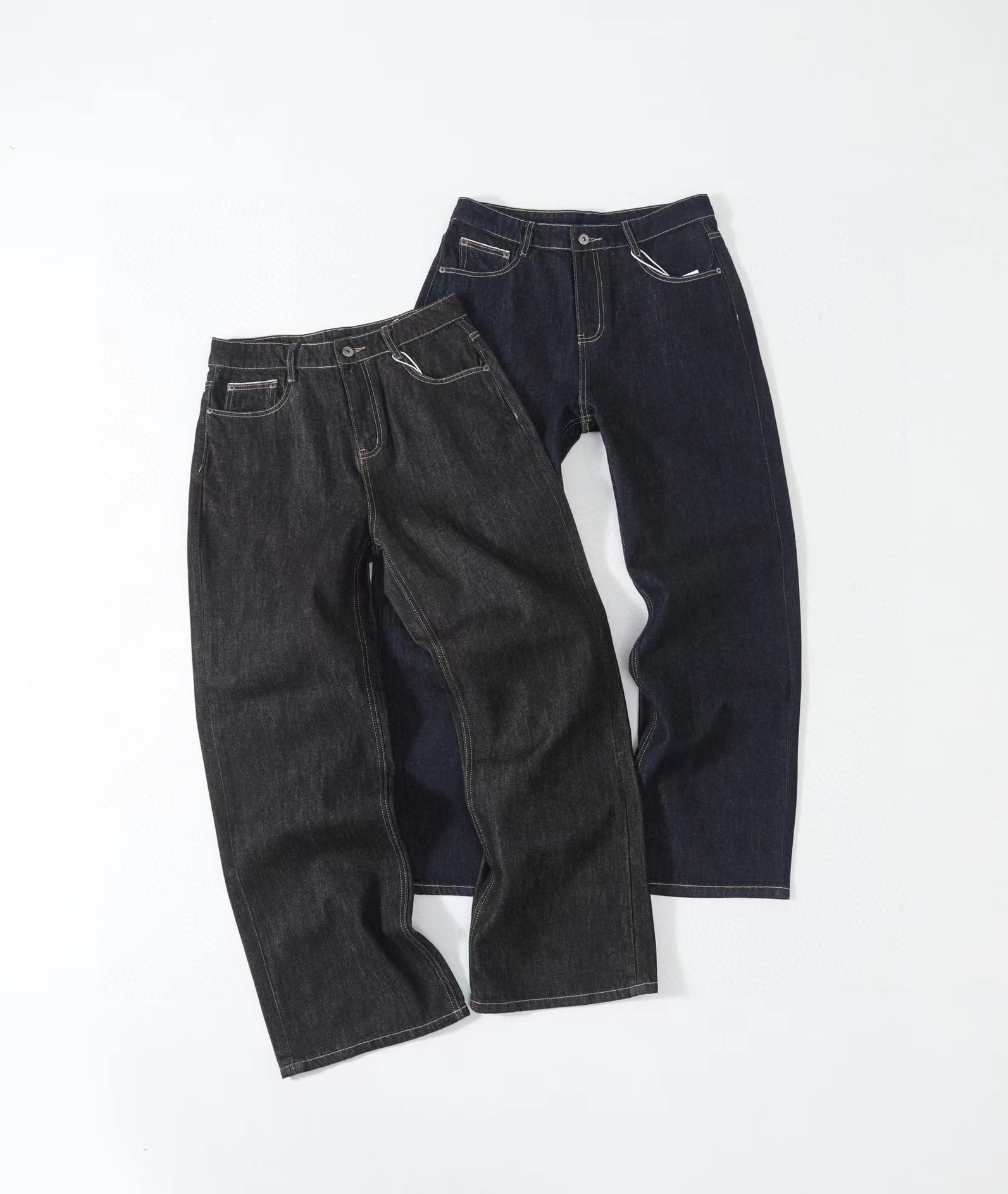 美式赤耳丹宁复古水洗直筒微阔重磅原牛牛仔裤 男女同款!真日本冈山进口13盎司重磅原牛,固色处理后基本不会掉色,斜纹古董织布机织出来更细腻高品质赤耳面料,上身真的挺阔有型,超显气质。此款经过脱浆水洗后,厚实挺阔但是不会特别硬,同时保证了裤子的舒适感和独特的肌理感,撞色走线清晰自然!水洗更赋予了整体的Vintage复古羔级感,随着日常穿着越洗越有味道,非常适合四季日常通勤穿搭。版型方面是2021M版型,直筒微阔的材料设计,形成自然的曲线和堆积感,既能修饰腿部线条,又不失宽松度,百搭各种身材。定制日本进口拉链,五金,潮咖男女少爷公主日常出街搭配b备好货,两色自留,强烈推荐~