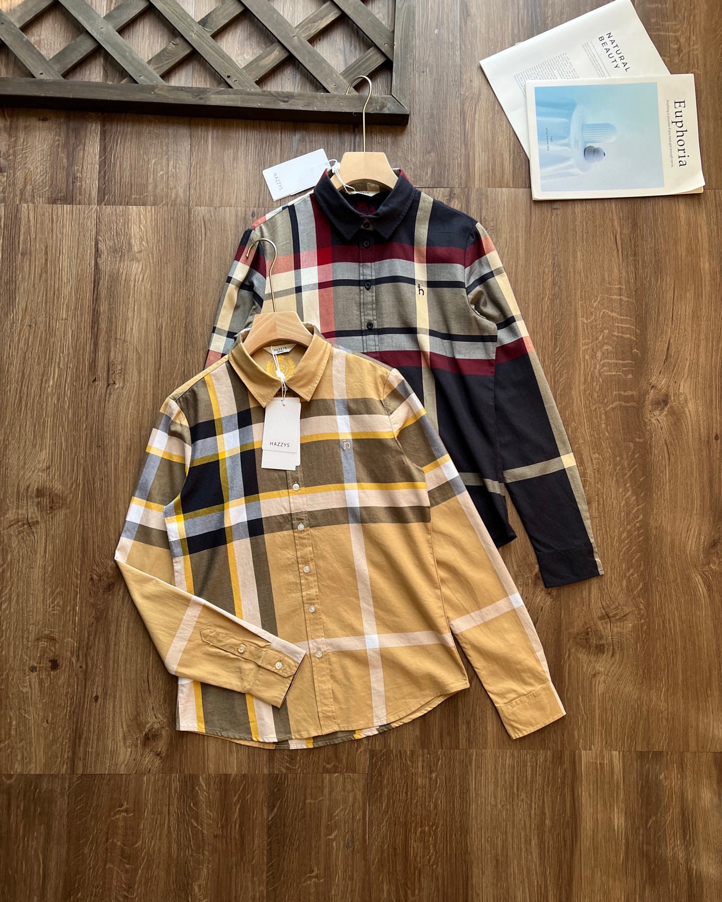 Hazzys哈吉斯长袖衬衫上衣女春秋新品舒适时尚设计感格纹衬衣!!